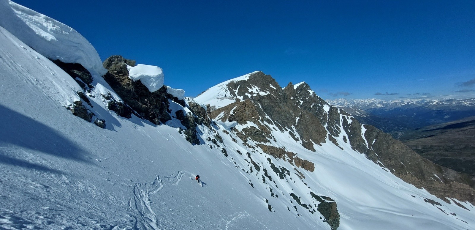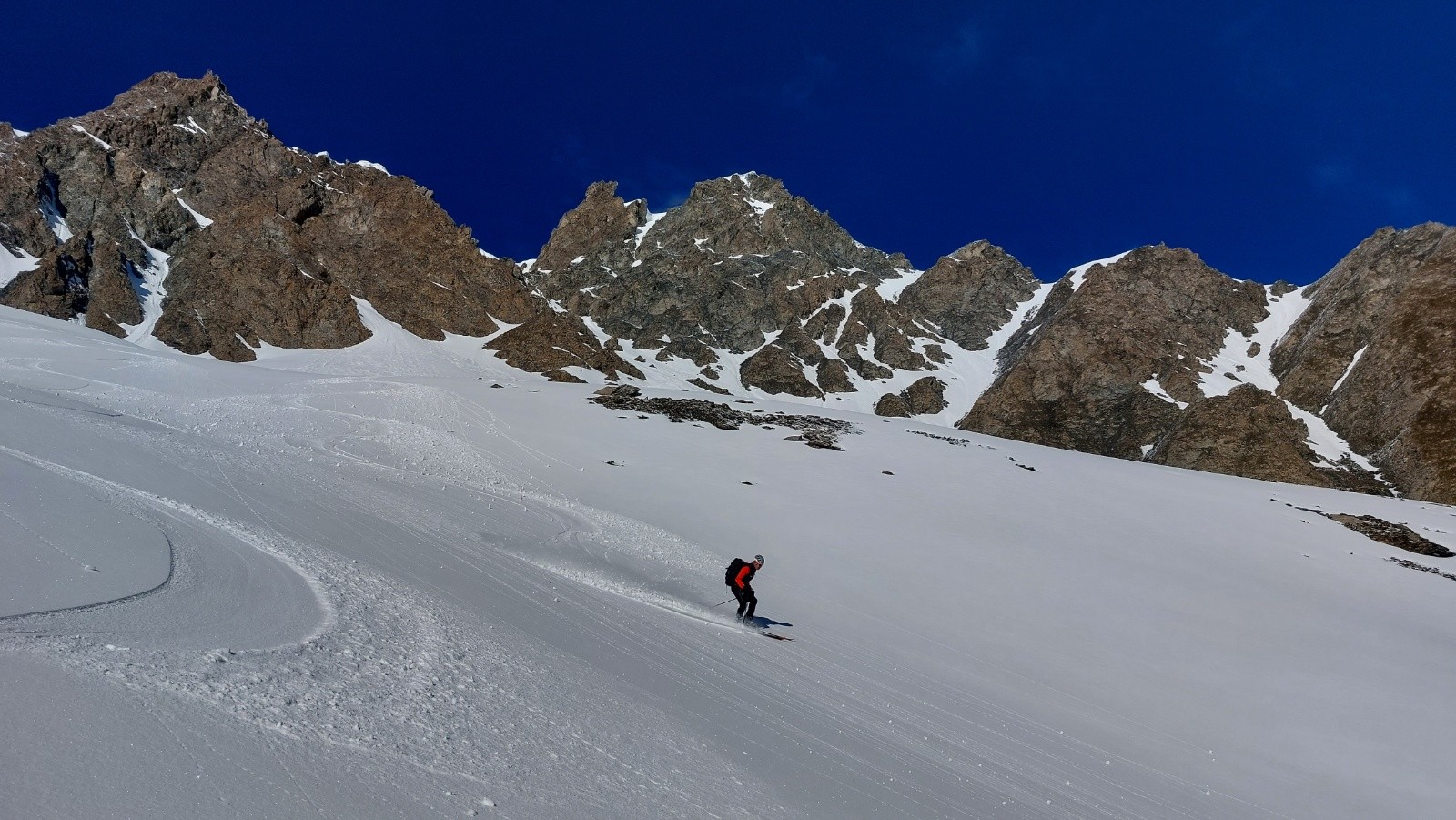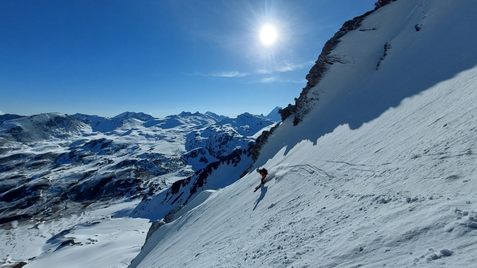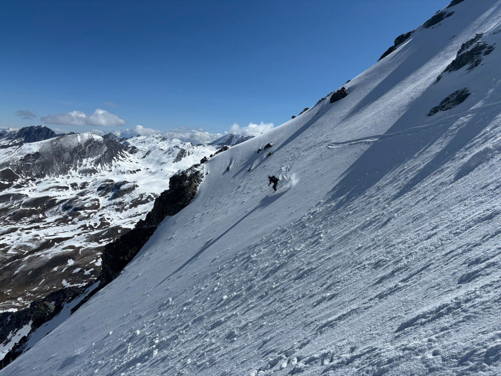 Conditions pour le ski : Bon regel, neige printanière recouverte de 2 à 5cm de neige fraîche des orages de la veille. Un régal
