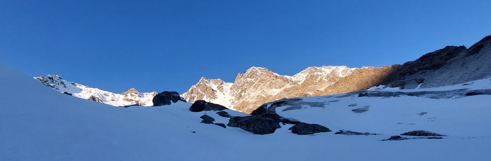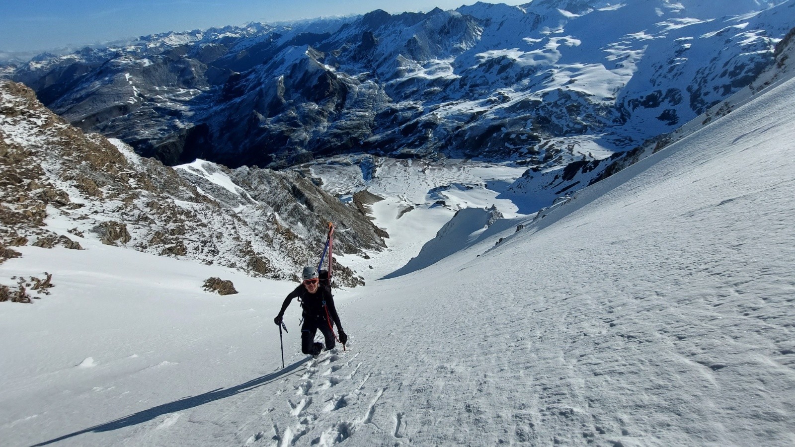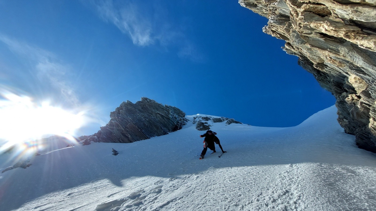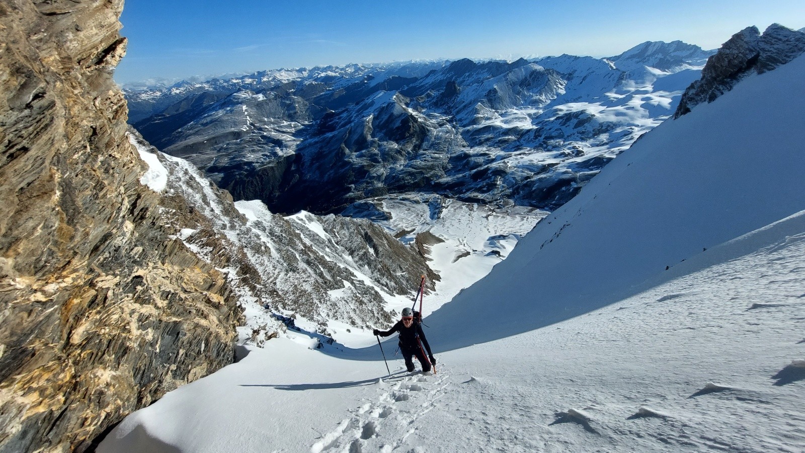 Conditions pour le ski : Bon regel, neige printanière recouverte de 2 à 5cm de neige fraîche des orages de la veille. Un régal