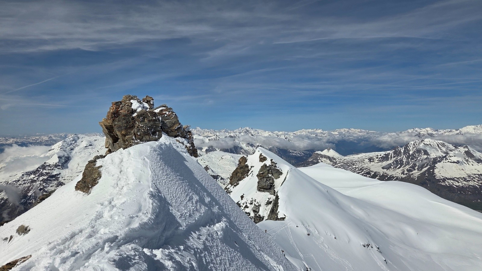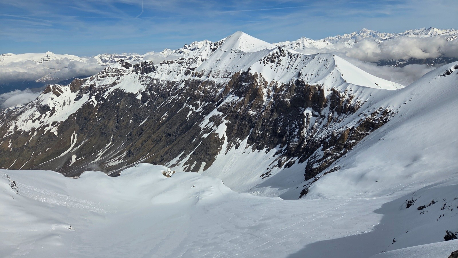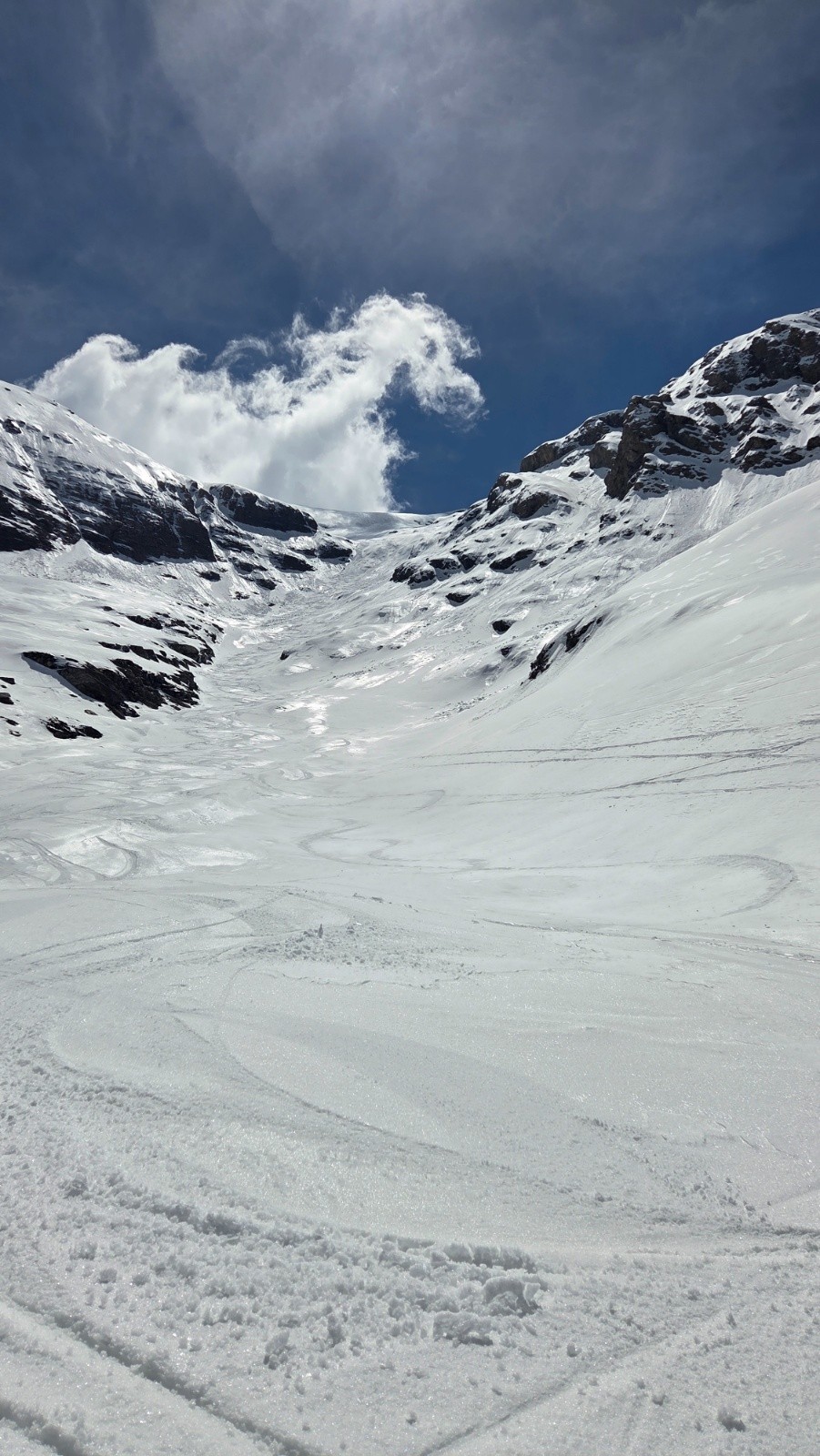 Conditions pour le ski : très bon regel. Des passages nécessitant les couteaux à la montée. Crampons dans le goulet avant le glacier. Ensuite ça déroule. Descente avec un petit peu de poudre et un peu de fond dur jusqu'au m goulet qui passe assez bien. Dessous à partir 3000 m juste décailler vers 12h.Excellent.