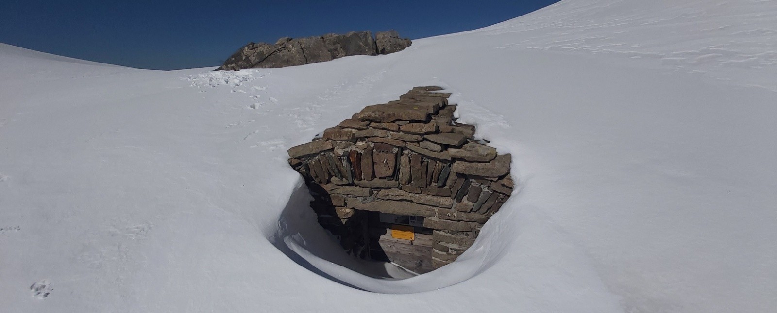 Altitude de chaussage : col de la Pisse, avec les couteaux. Déchaussage : un peu au dessus de la cabane de berger, sous le col de la Pisse.