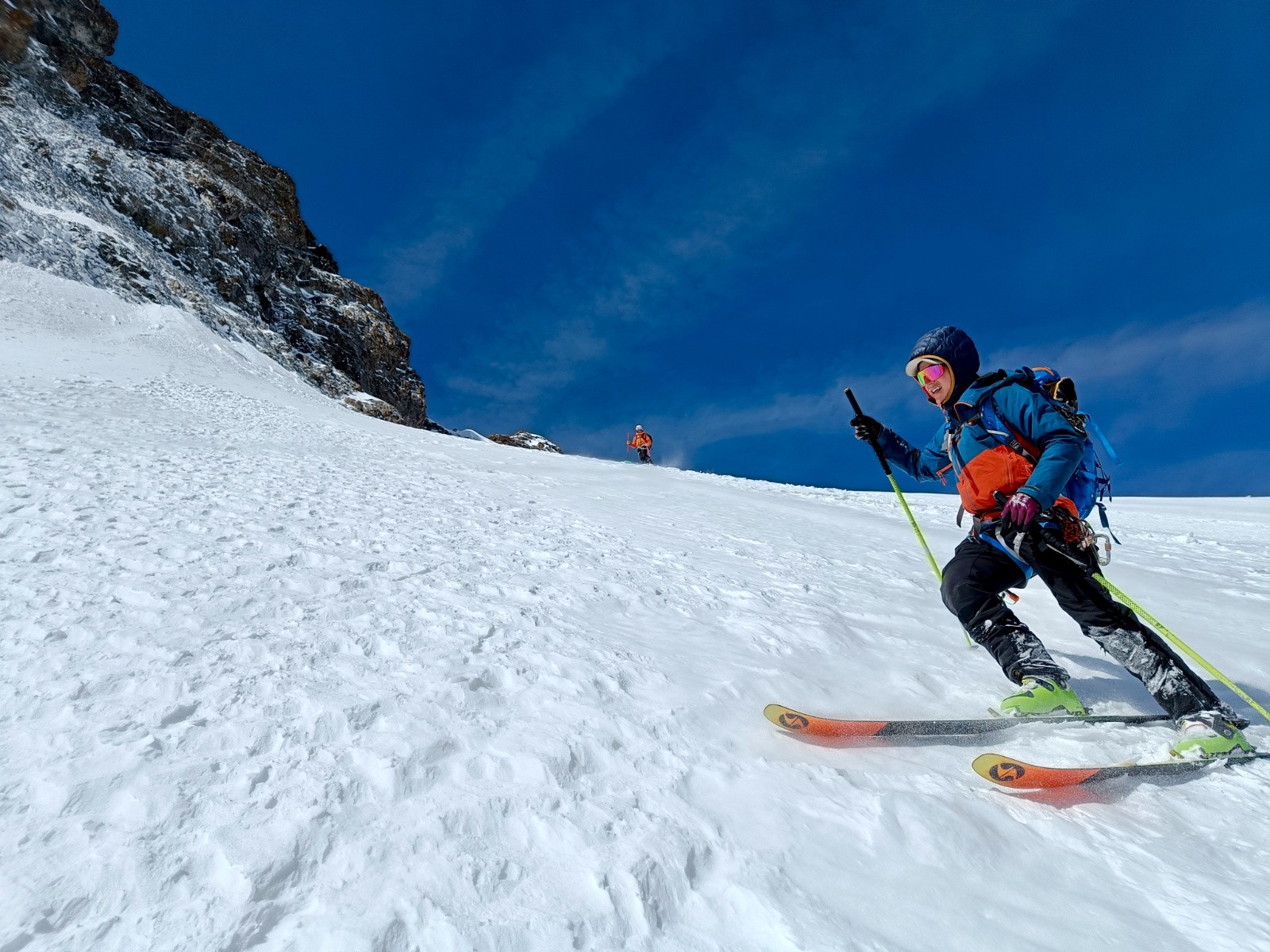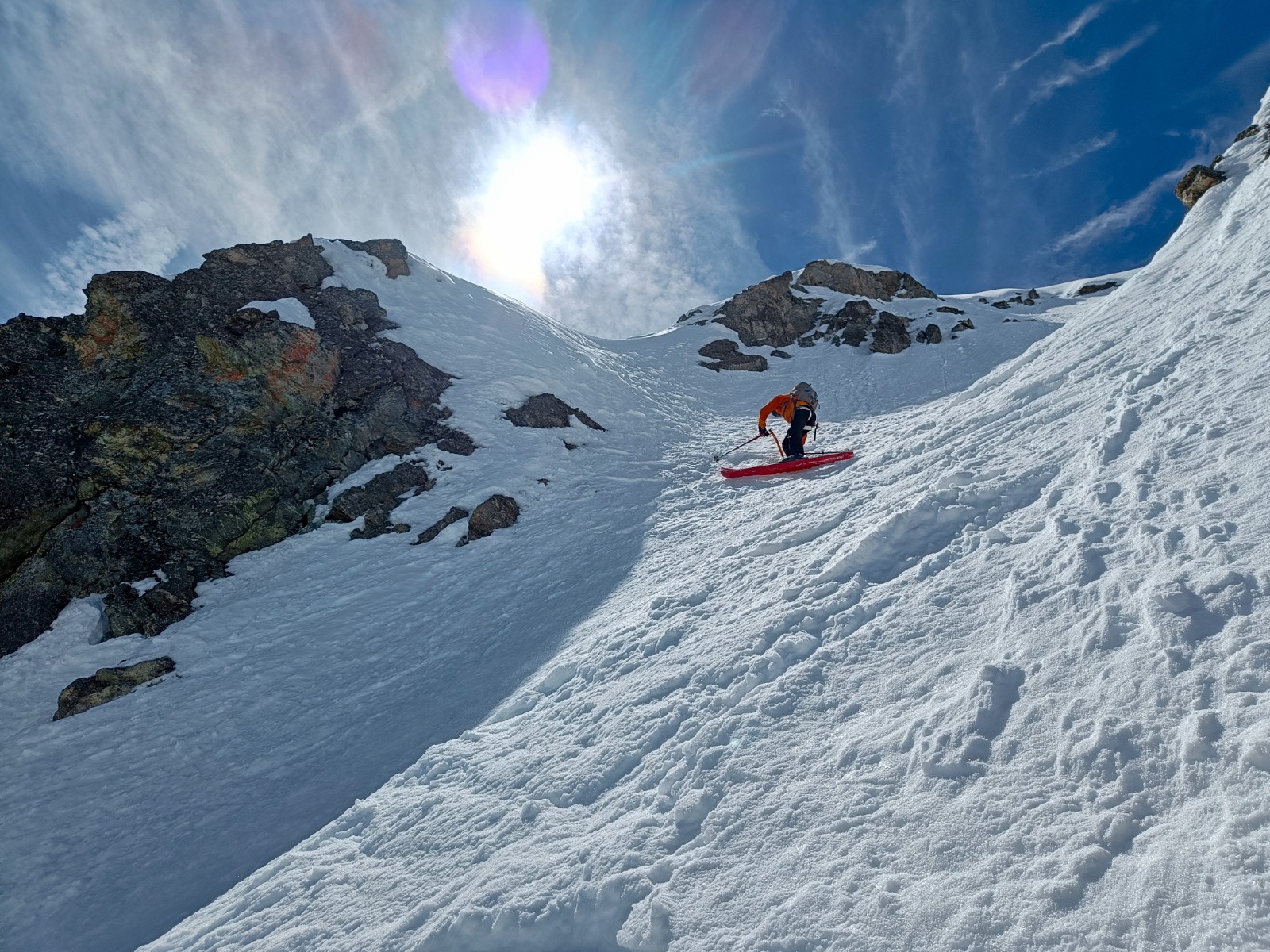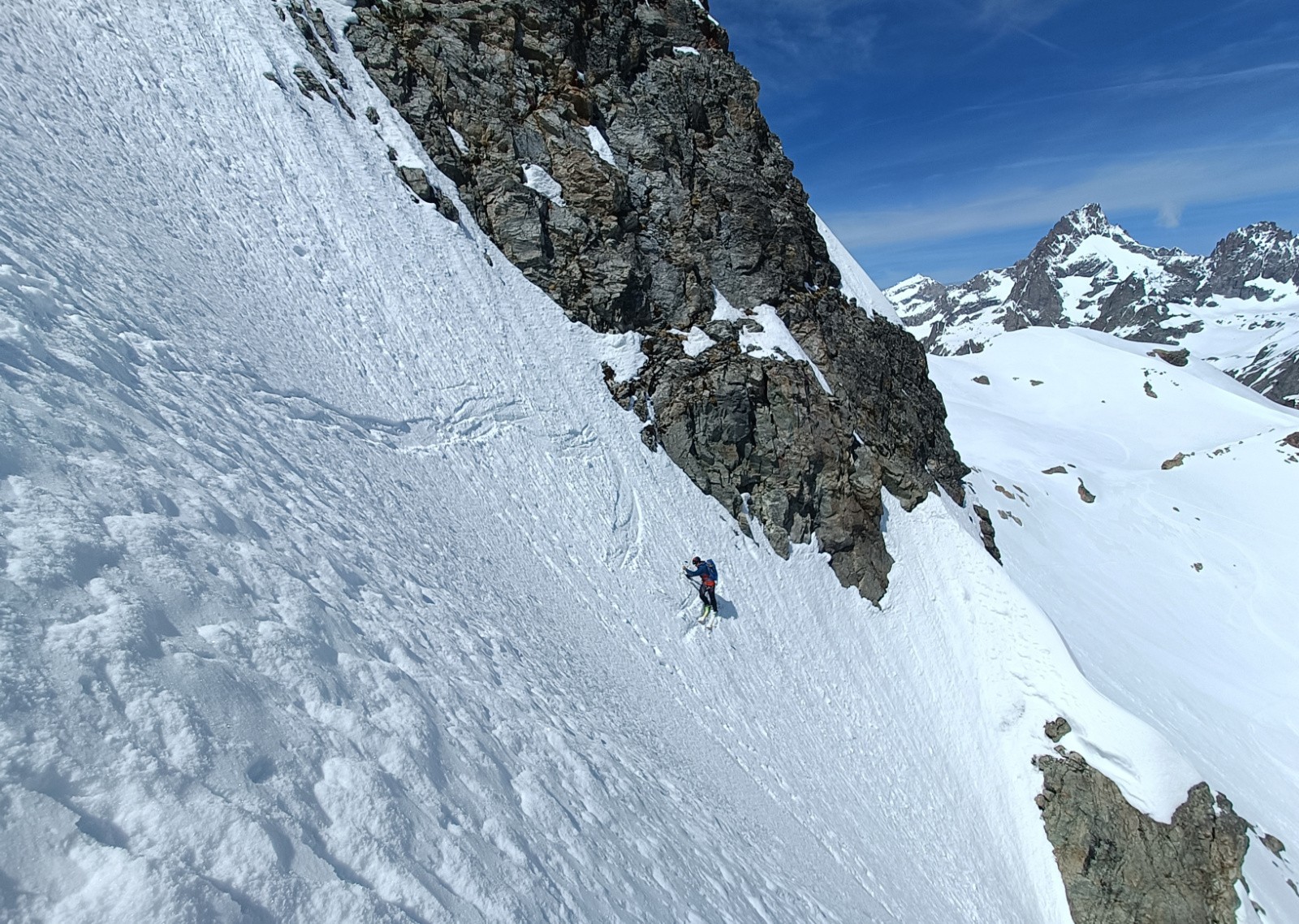 Nous avions ressenti cette descente comme un 5.3. Cependant, les conditions de neige étaient médiocres, donc en réalité c'est peu être plutôt 5.2. Il est très probable que ce bout de neige plutôt évident ai déjà été skié, mais entre nous, elle sera nommé La Paella, en lien avec les origines espagnoles de Johan (ne cherchez pas trop a comprendre).
