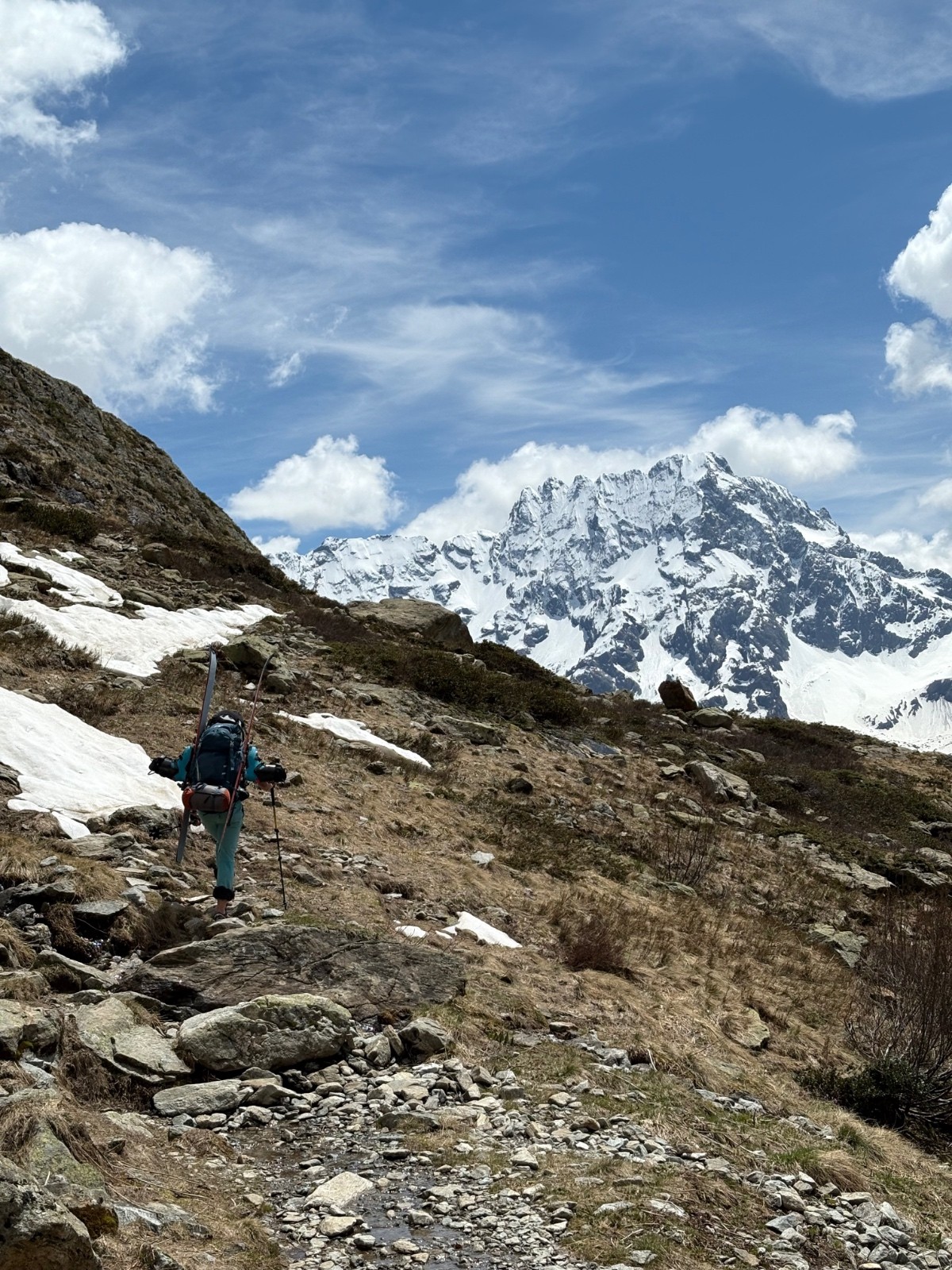 Après un café bien mérité (et des pâtes degueu) on entame la redescente au parking, qui elle, sera bien moins fun. Les sacs sont si lourds, la journée commence à être longue pour les papattes. Arrivées au parking à 13h00. Vivement qu’on recommence.