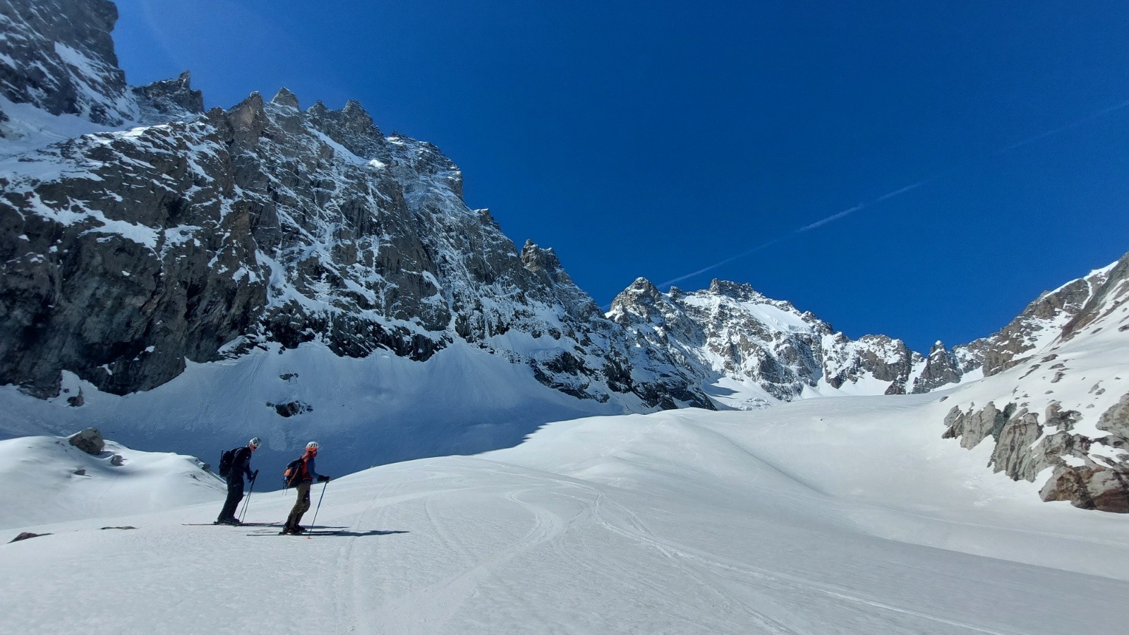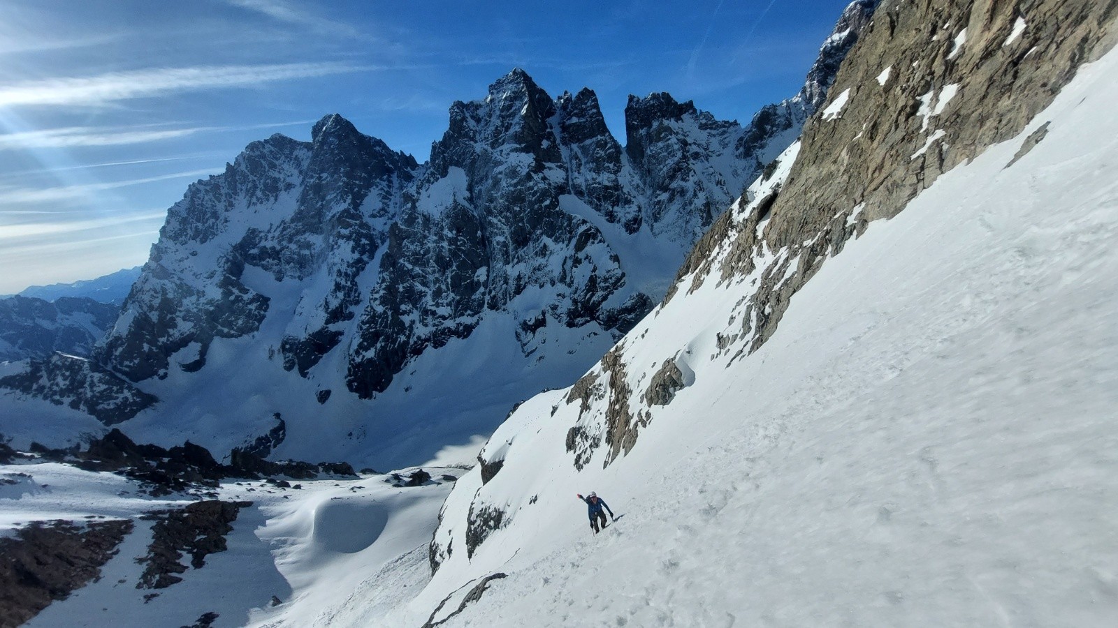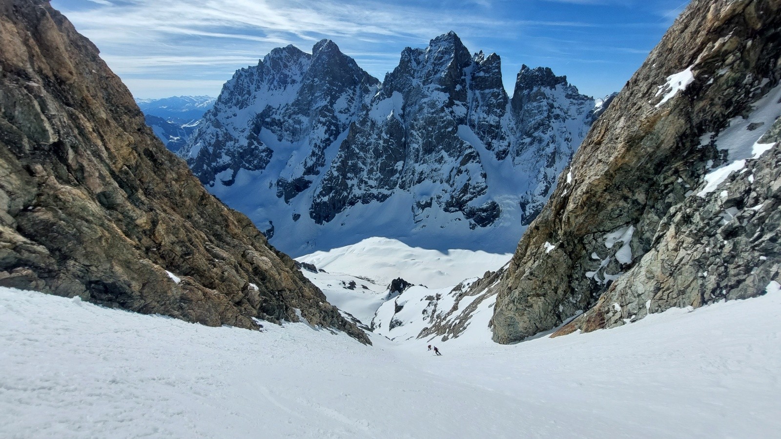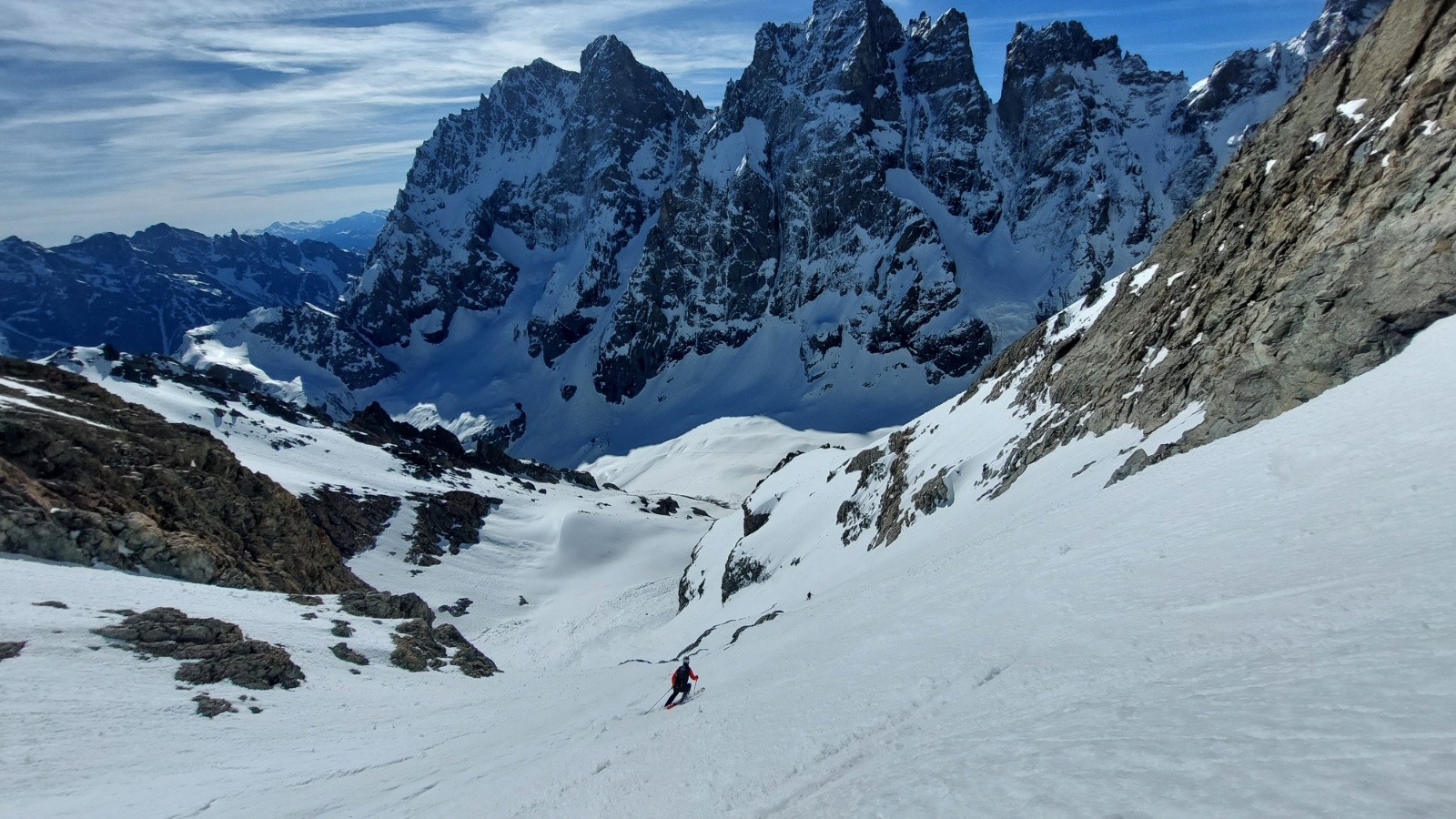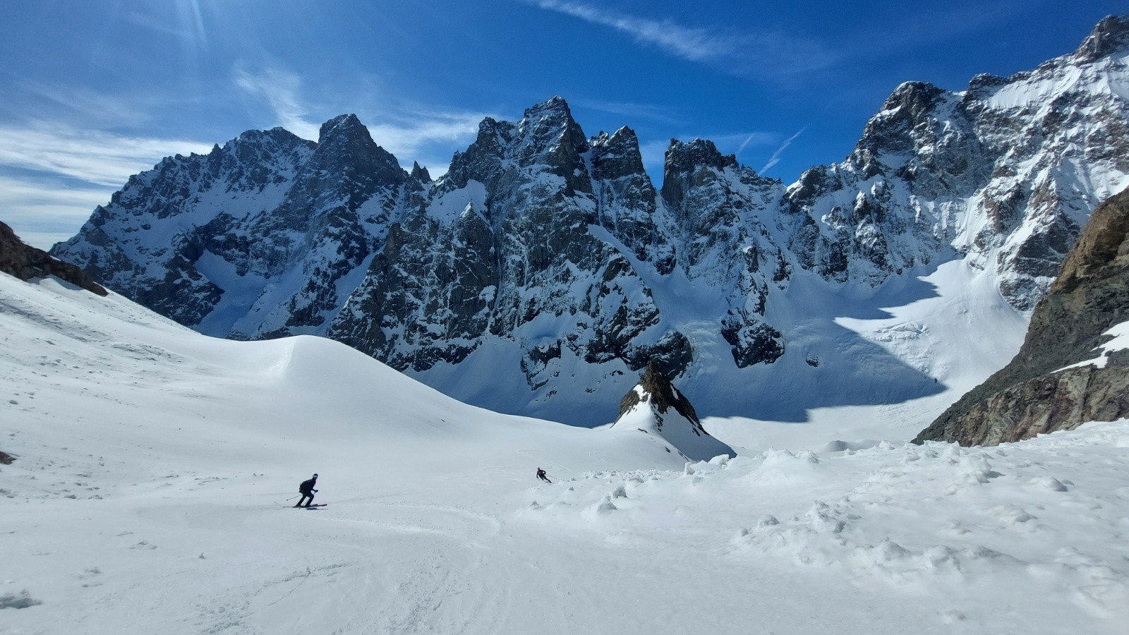Météo grandiose, petit matin étoilé faisant vite oublié le portage et la faiblesse de l enneigement sous 2200m. Au dessus c était parfait seul au monde à part un cordée dans le couloir N du Pelvoux. Couloir SE et partie supérieure du glacier en super Conditions. En dessous ça ski bien malgré le relief sous 2200m.