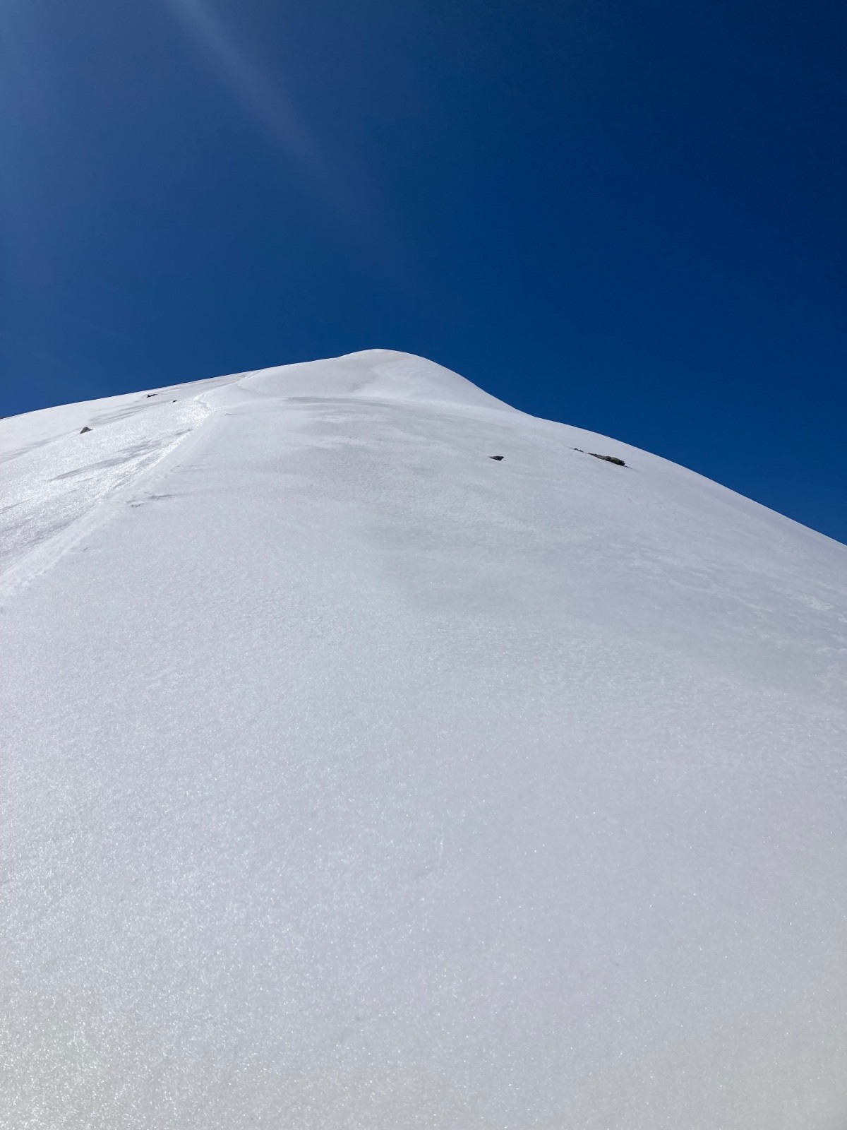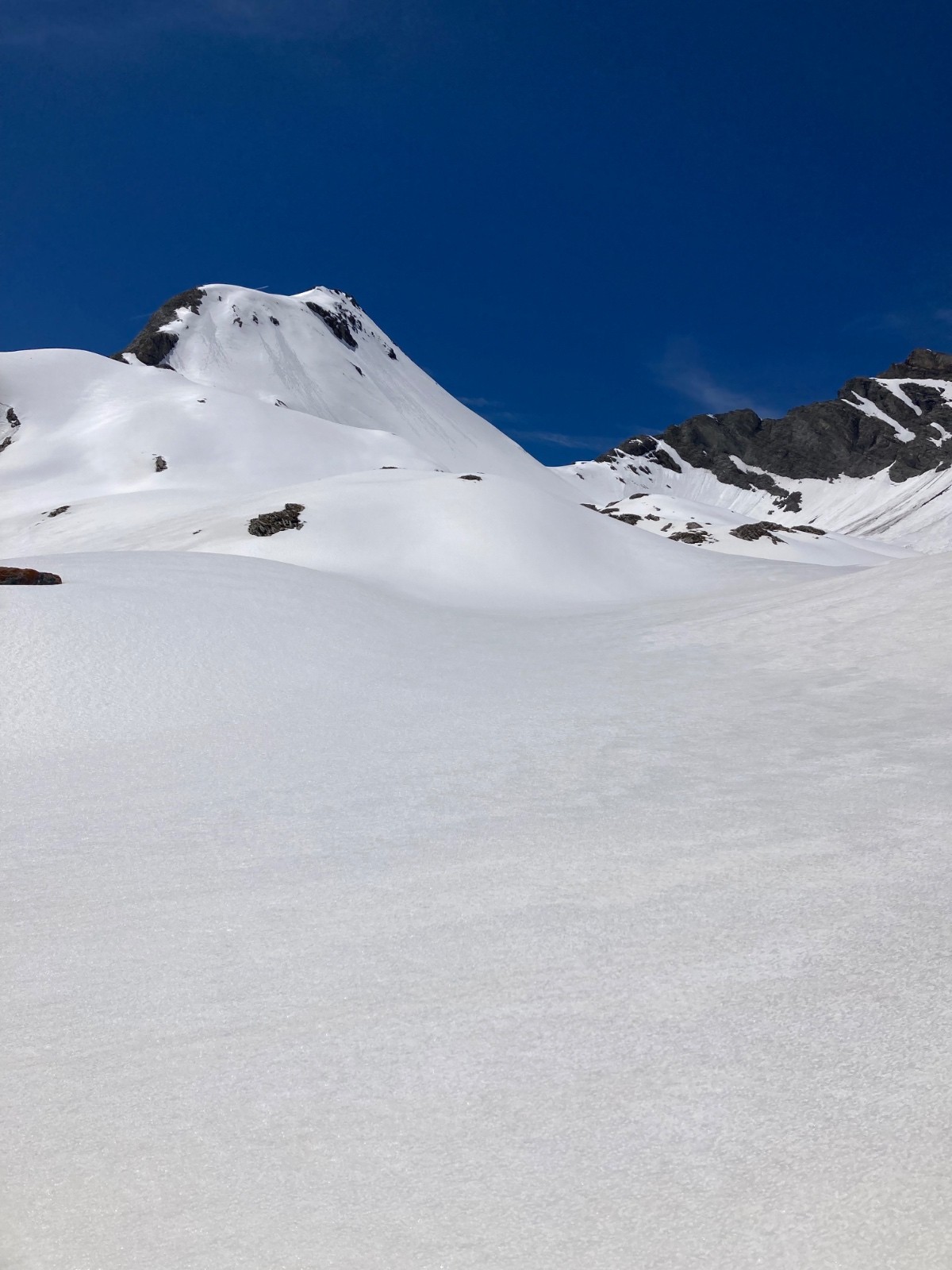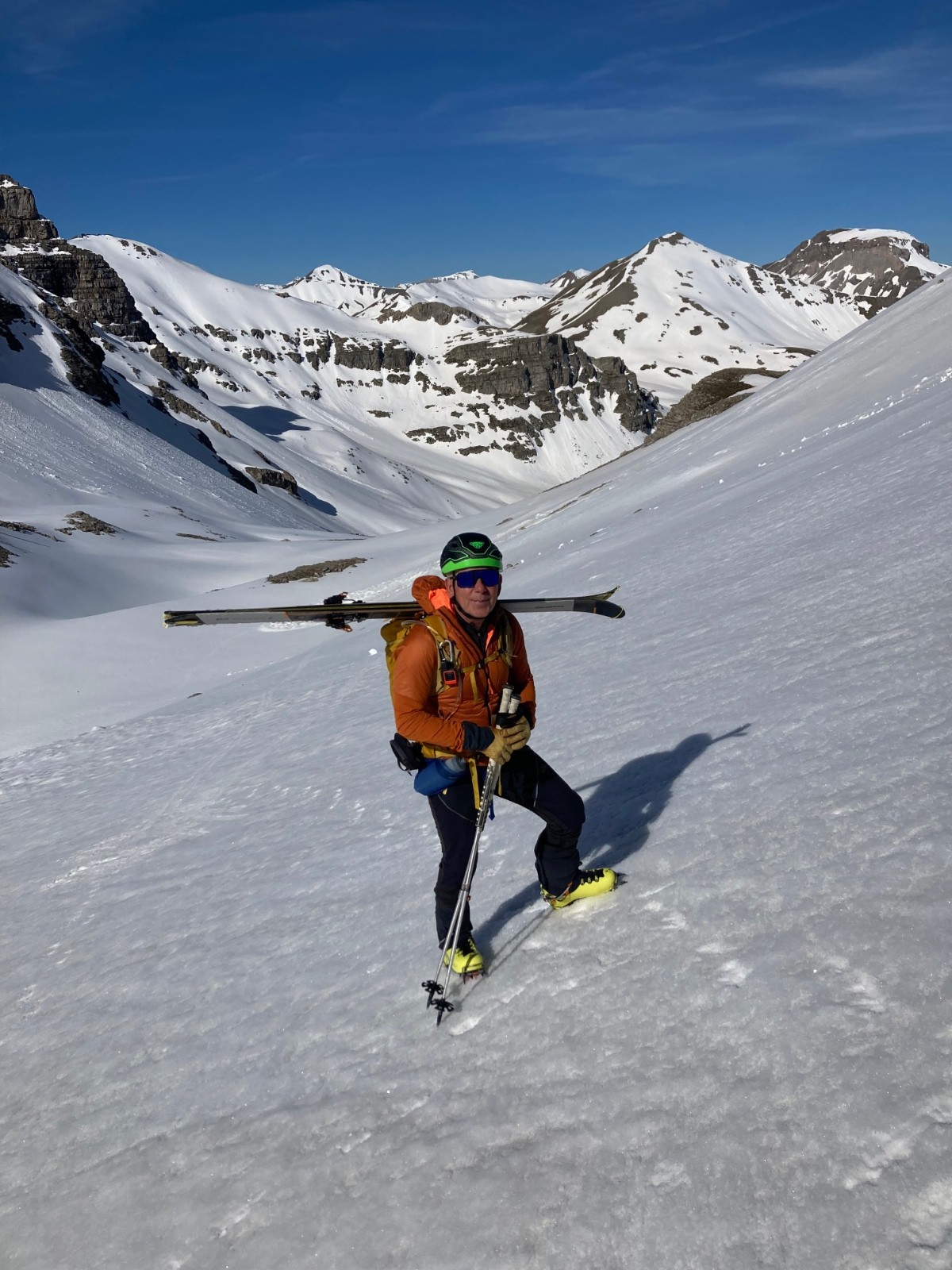 Le dernière descente de pelousette , sur l’épaule NW excellente puis par une pente w qui mène directement sous le col de pelouse puis aux voitures skis au pieds.