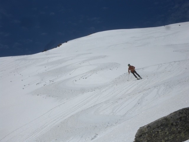 Toutes les orientations étaient bonnes et malgré l’heure tardive de certaines descente, un petit vent frais a bien maintenu la qualité de la neige.