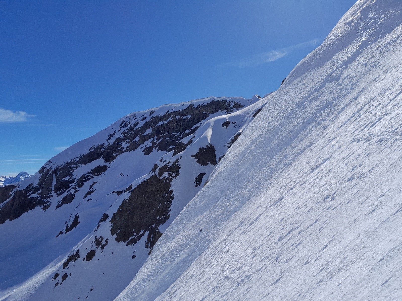 J'avais bien envie d'y gouter, quelques virages un peu pentus dans une sortie printanière éthique et variée correspond parfaitement à l'image que je me fais actuellement du ski de rando. Alors quand on peut le faire...