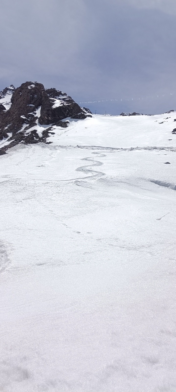 Conditions pour le ski : Un peu de tout aujourd'hui : en haut poudre tassée, puis neige froide mais croutée plus ou moins portante et enfin transfo plus ou moins lourde... Les conditions dépendent beaucoup de l'heure de la descente... Je suis parti un peu trop tard