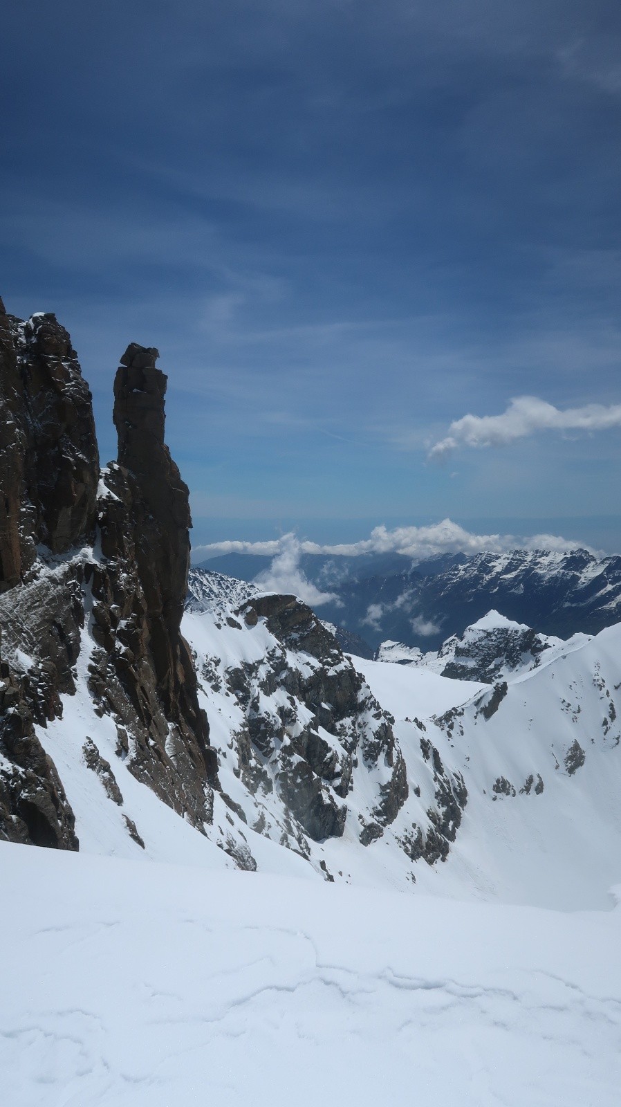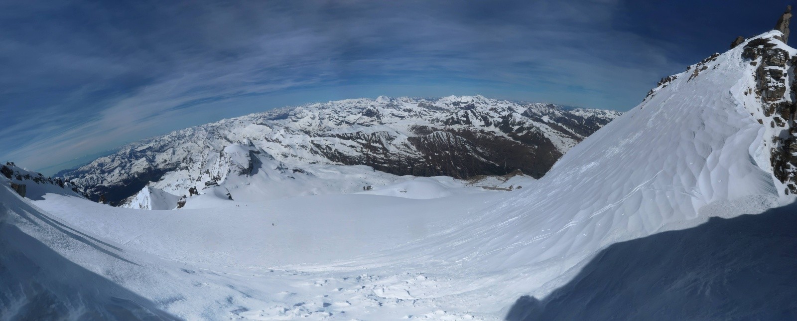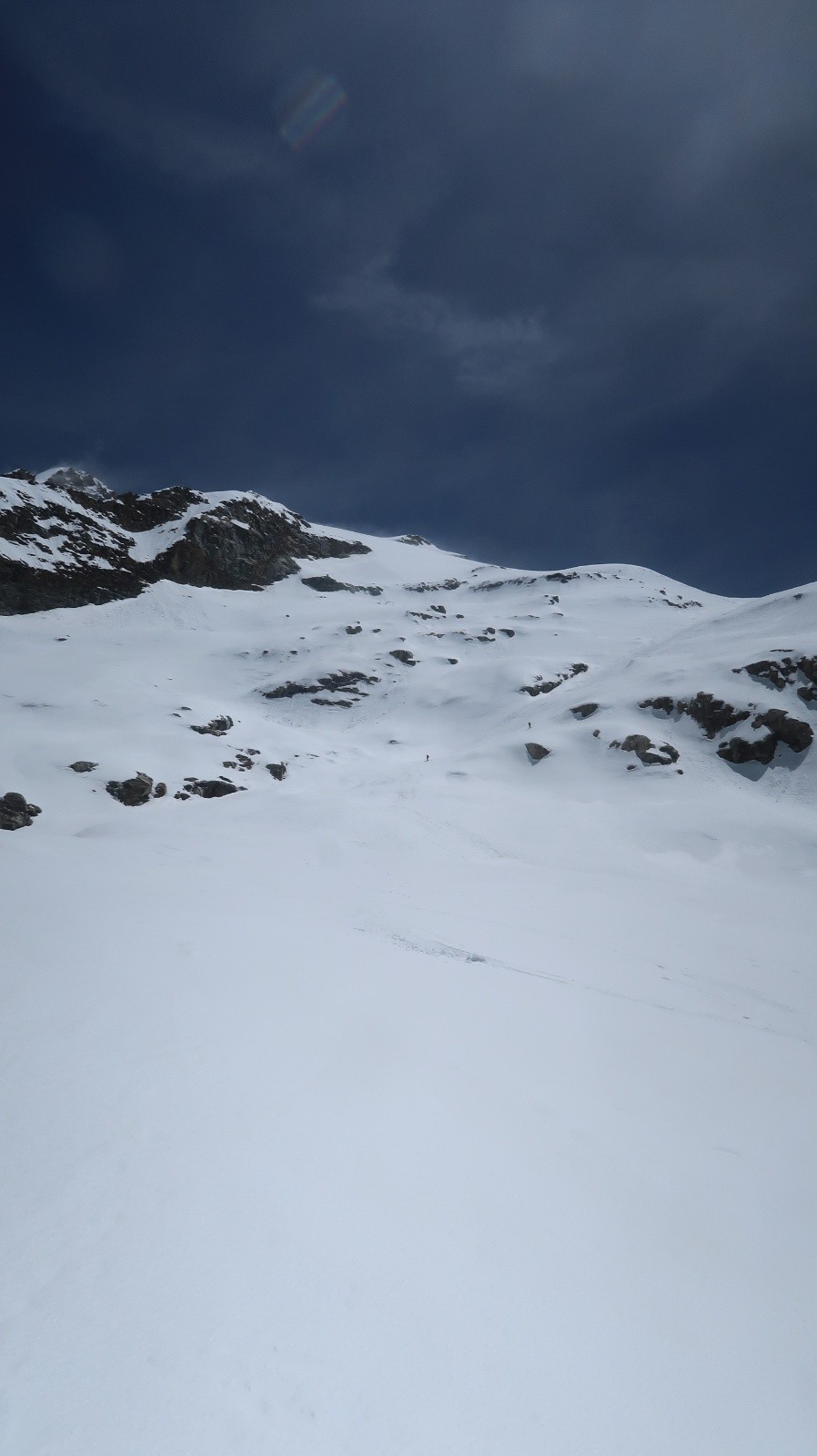 Conditions pour le ski : neige assez dure avec bon grip au-dessus de 3000m, qui n'aura pas décaillée avec tout ce vent, vers 2900 2800 passage très collant et inskiable, en-dessous moquette / soupe agréable à skier, un poil revenue !