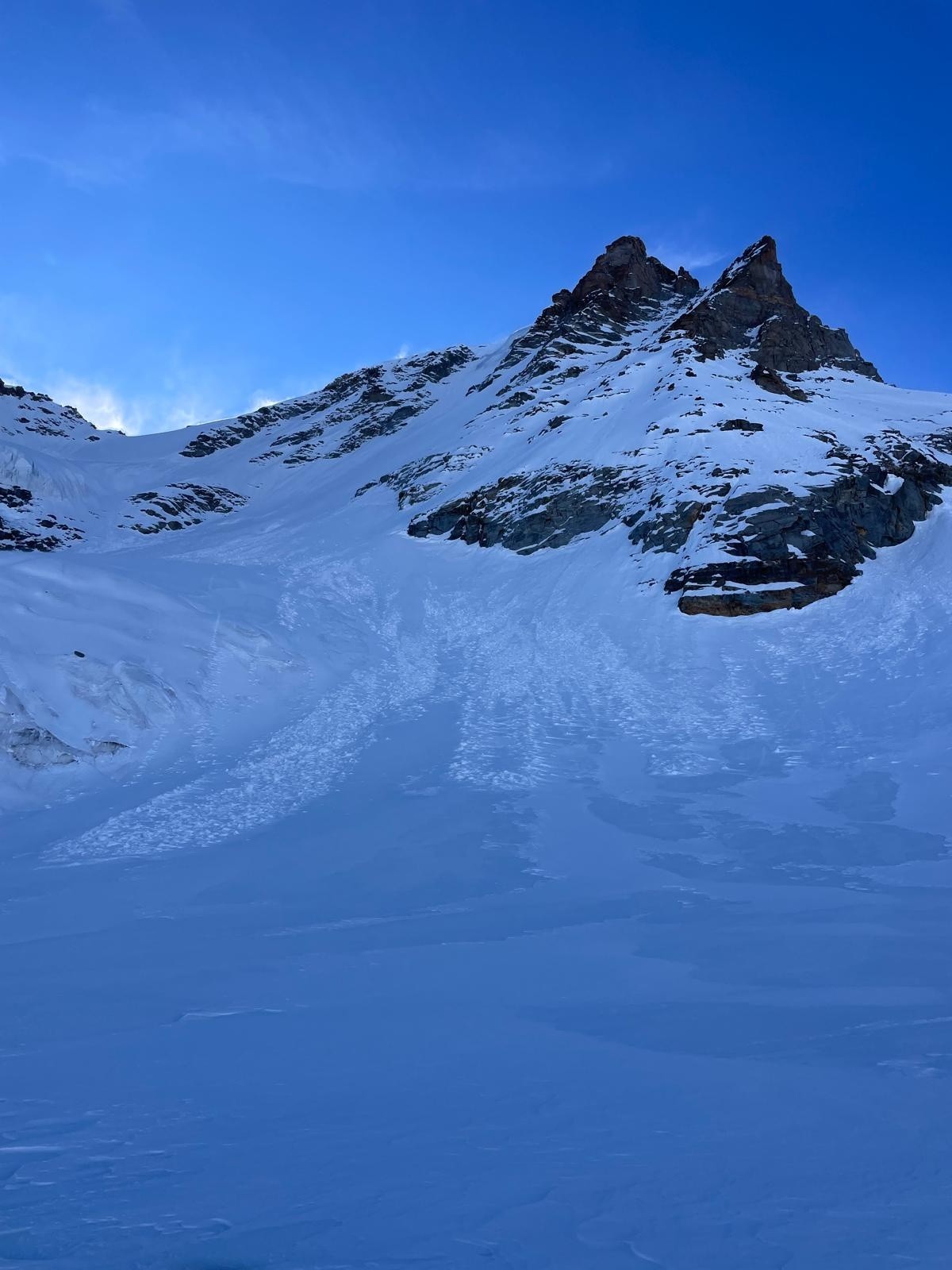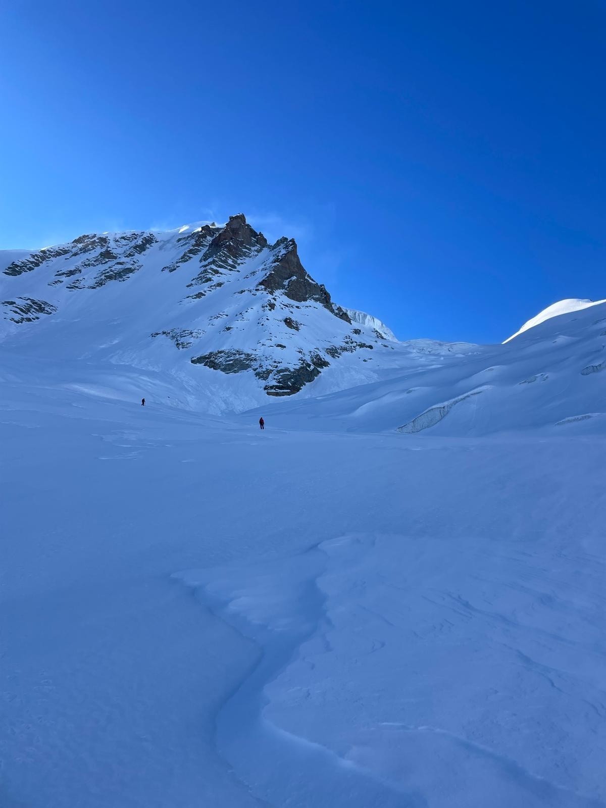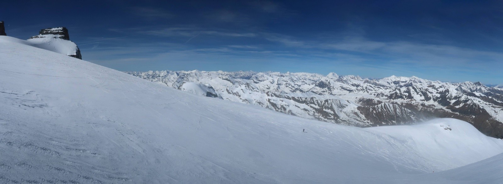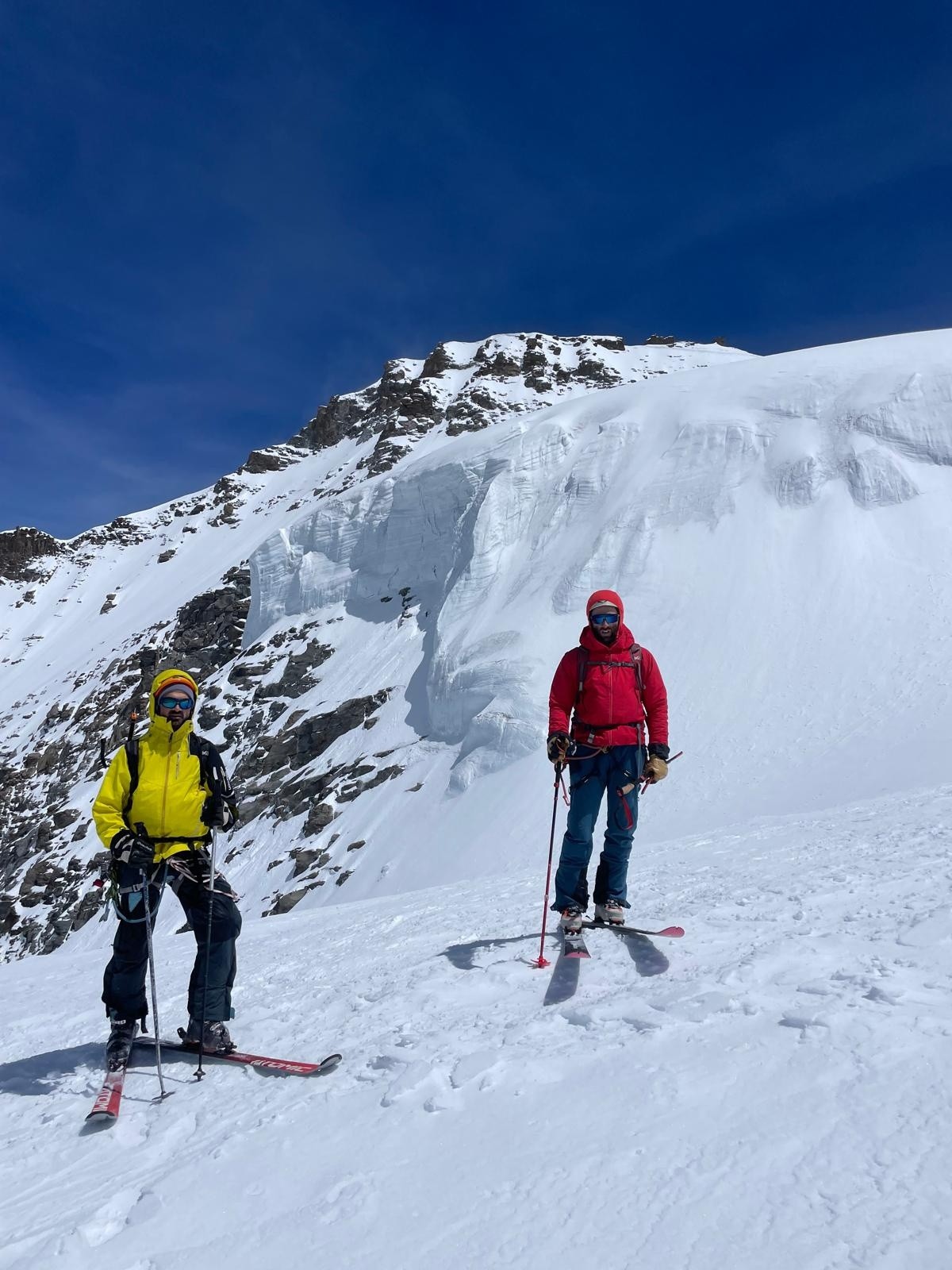 Conditions pour le ski : neige assez dure avec bon grip au-dessus de 3000m, qui n'aura pas décaillée avec tout ce vent, vers 2900 2800 passage très collant et inskiable, en-dessous moquette / soupe agréable à skier, un poil revenue !