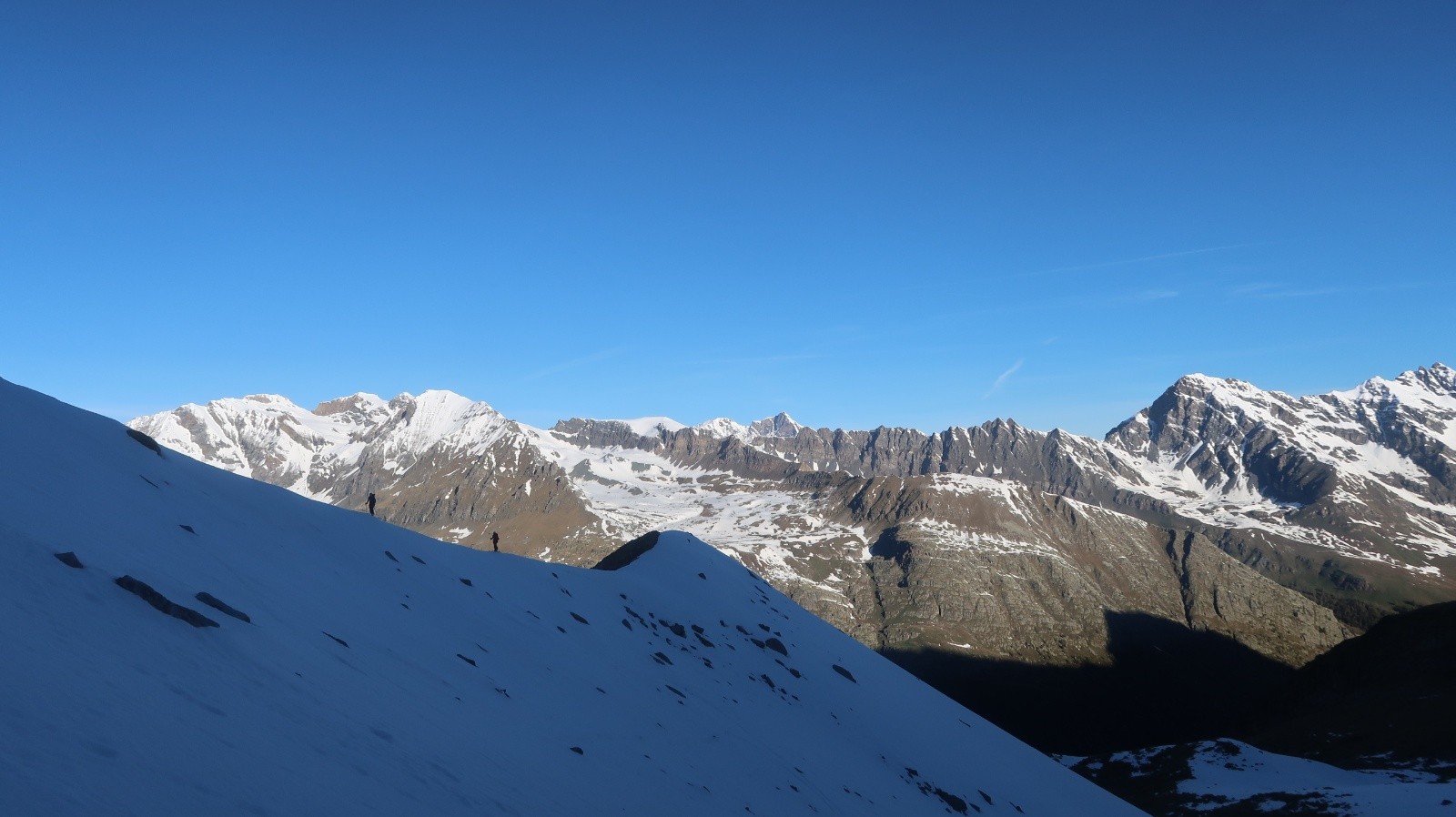 Conditions nivo et activité avalancheuse : avec la légère chute de la veille et le fort vent NNW, quelques légères plaques friables (max 10cm observé sur l'itinéraire), sinon RAS.