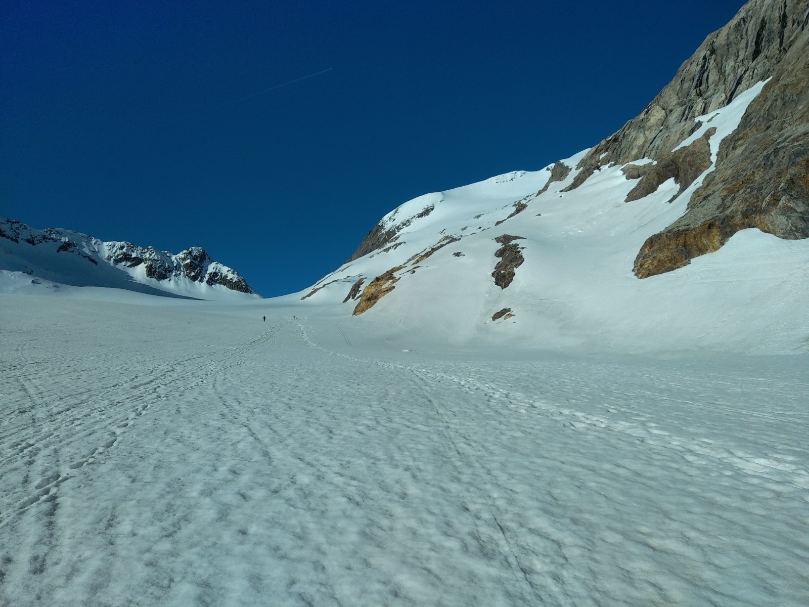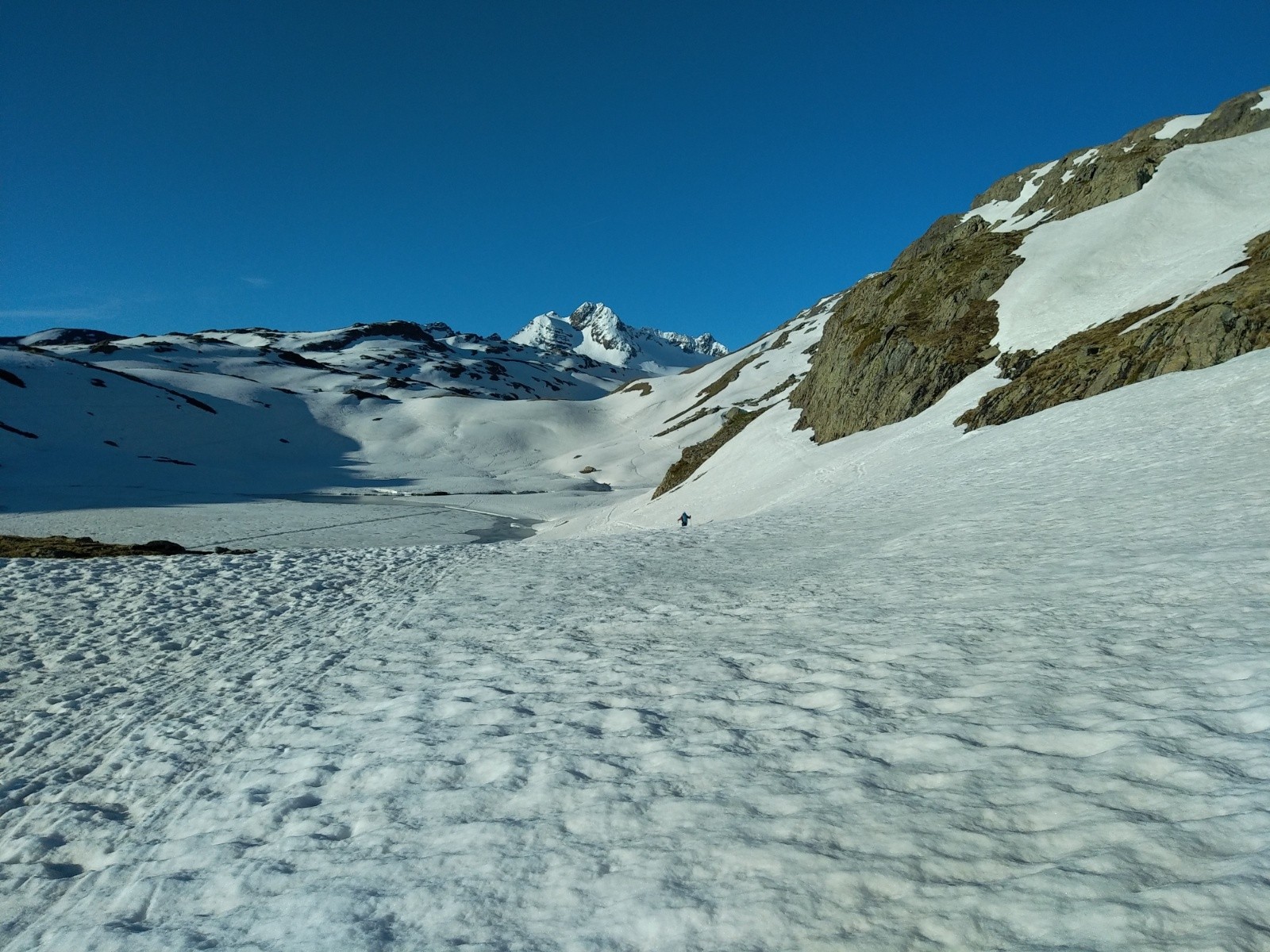 Mais regel médiocre, rapidement grosse soupe très tôt...je mets correct pour la partie haute, mais on est loin d'une belle moquette lisse...neige plutôt à relief en haut et trop soup plus bas...pour le retour, c'est long et difficile dans cette neige.