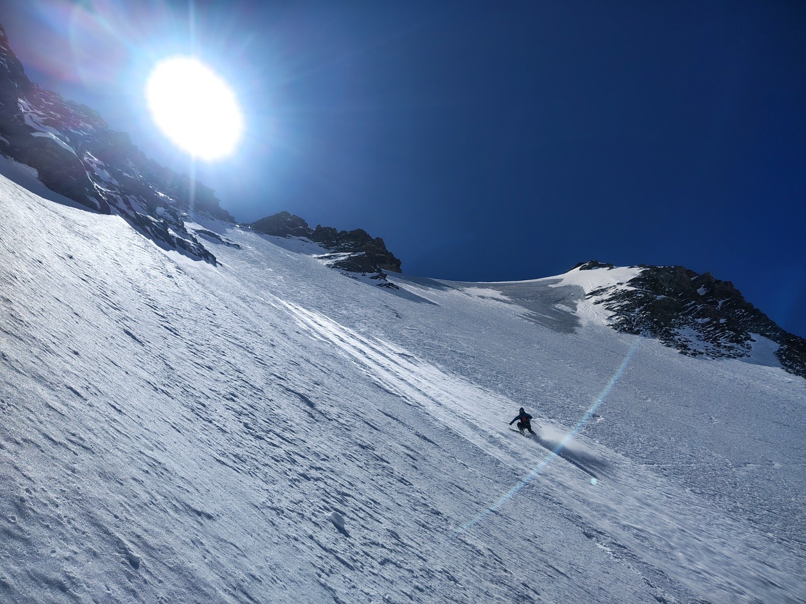 Conditions pour le ski : Très médiocre...comme attendu. Le vent a bien cartonné, croûté la face. Même avec le soleil ça reste neige dure.