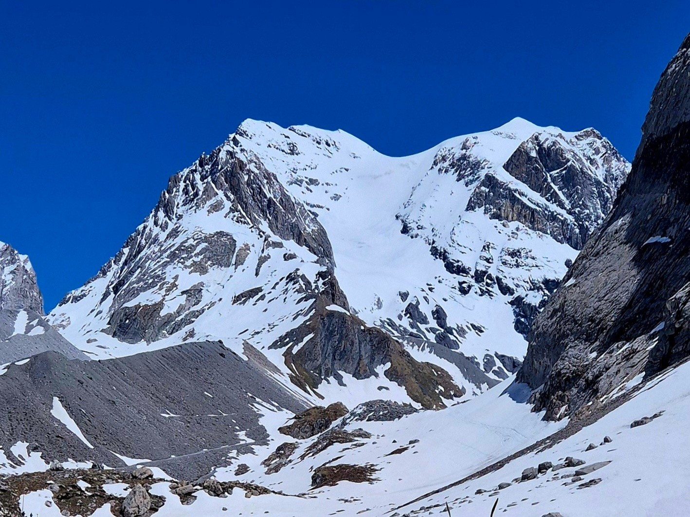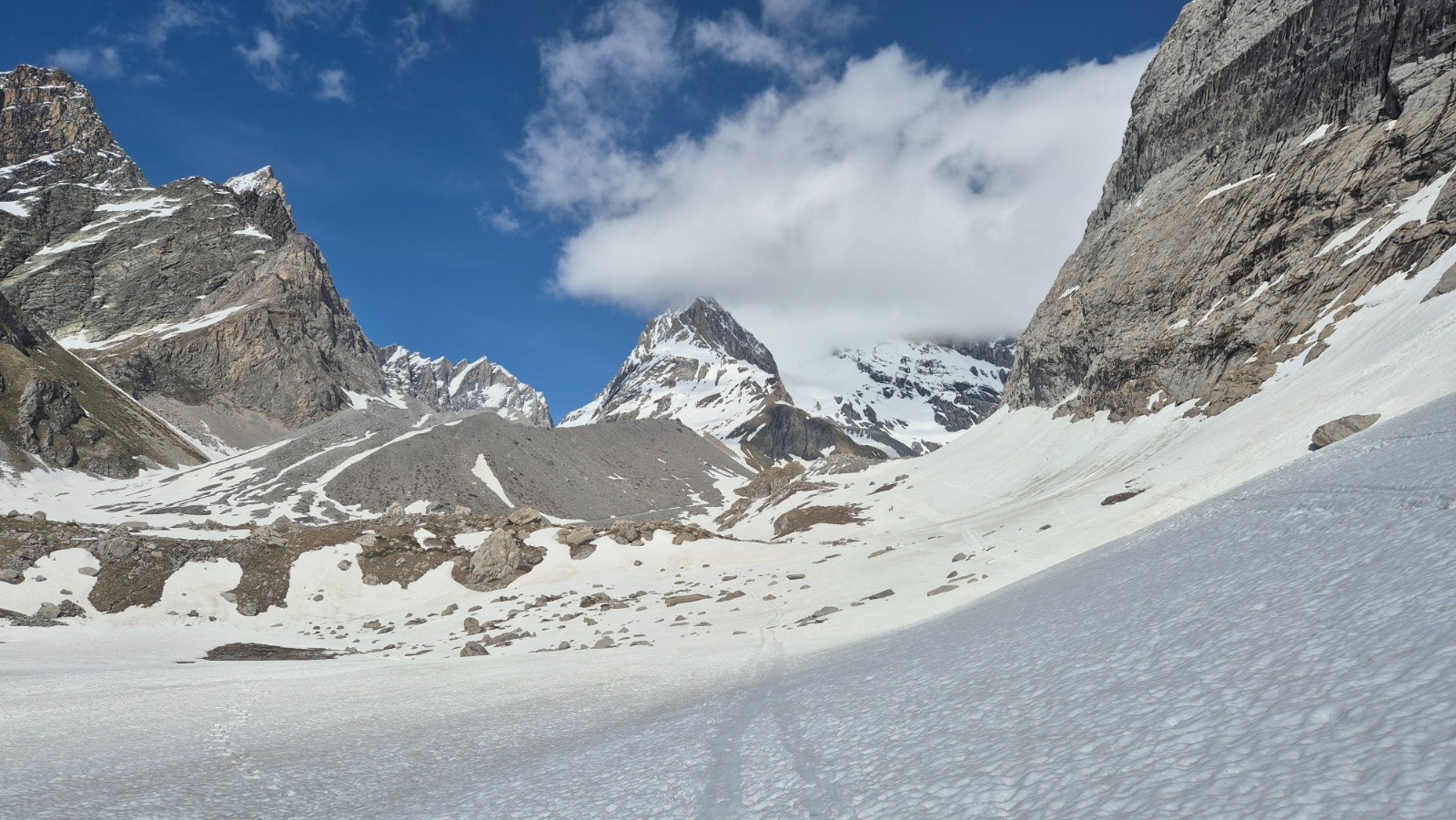 On picnic au col entre le sommet et la pointe Mattew en attendant que le soleil fasse un peu son travail dans le couloir. On passe à 13h. C etait bon dans les parties au soleil mais ca reste raide en neige bien dure ! Qd le premier virage est fait, après ca deroule . De plus en plus mou puis pourri en descendant. Lac des Vaches puis descente rapide jusqu aux voitures. Une belle course. Ca faisait longtemps que je n etait pas retourné à la Gde Casse. Ûn bien beau sommet! La prochaine fois, promis, j irai en FN....si les.conditions le.permettent.