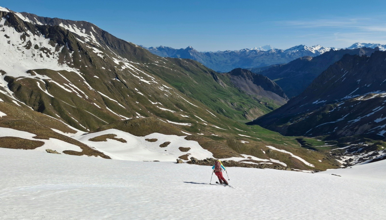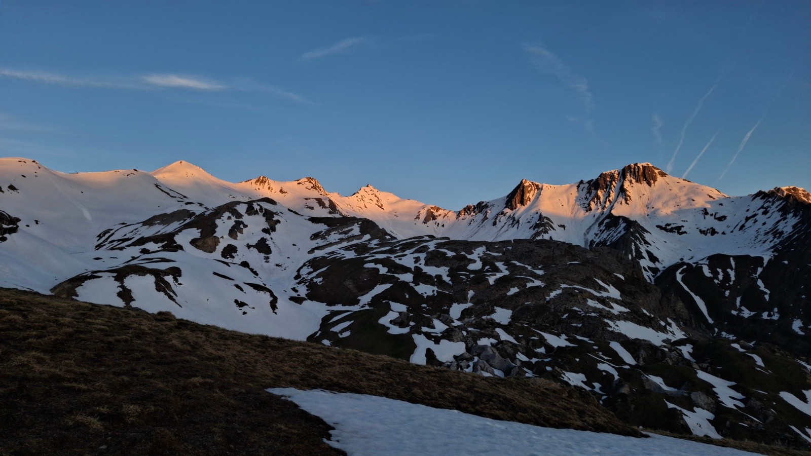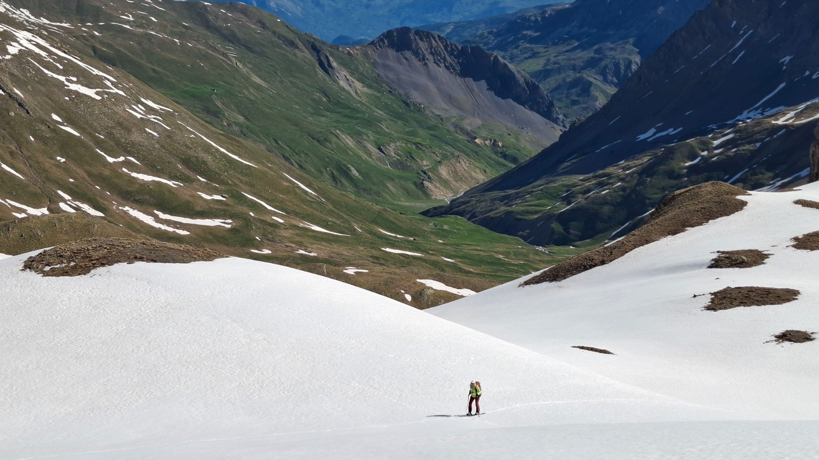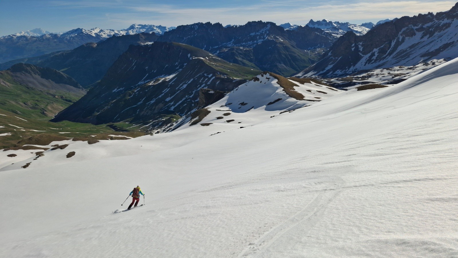 On retourne au galibier 2 semaines après avoir laissé le sommet du pic blanc pour une autre fois, et ce fut la bonne 😊, le col étant ouvert l’approche est simplifiée ✌️, quel changement au niveau enneigement ! Mais il y a encore de quoi faire 🫠. On commence donc par une descente, ce qui nous était jamais arrivé, ce qui implique de terminer par une montée...quoiqu’on aura réussi à rentrer au van sur des névés en insistant un peu 😄. Le regel étant moyen, la descente sur le vallon de l’ânesse passe mieux qu'on pensait. La montée est presque courte comparé au départ de Plan Lachat, et c'est tant mieux 😆. Le raidillon du sommet est déjà bien transfo, cool. On arrive les premiers, avec un couple et leur toutou, sympa. On retrouve aussi un solitaire croisé quand on montait, lui descendant déjà du pic blanc. Beaucoup de monde ensuite, même tard...On (je) décide de descendre dans le vallon de l’ânesse en bonus avant de retrouver celui de fontaine lombarde, au "prix" d'une remontée de 170m d+, rien quoi 🤫. Les 100 premiers m de d- plein Est sous le sommet sont déjà bien mou à 8h15, mais ensuite c'est top, bon choix donc 😉, on repeaute vers 2500m pour retrouver le vallon de fontaine lombarde, il fait chaud, mais la deuxième descente sur névé est encore bien bonne, pas mal de relief sur le dernier plat, mais ramolli donc correct. La dernière remontée se fait en mode "je savoure, c'est la dernière", mais comme on (je) veut qd même finir en descendant on pousse un peu le d+ 😆. Un névé pour le fun 😆 La saison se termine sur une bien belle impression 😍🥰. Les marmottes, les lagopèdes, les vélos, les motos et les skieurs étaient tous de sortie ! On passe en mode été, le temps de penser à l'hiver prochain 😄. Bonne fin de saison aux plus accros et bel été à tout le monde !