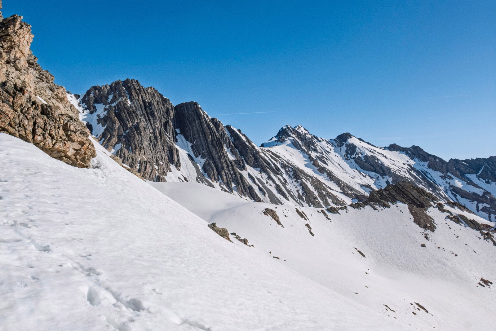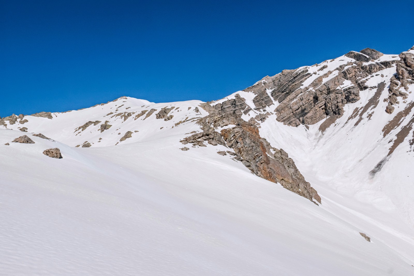 Un peu de neige qui glisse sous les skis dans le raide en Est/NE.