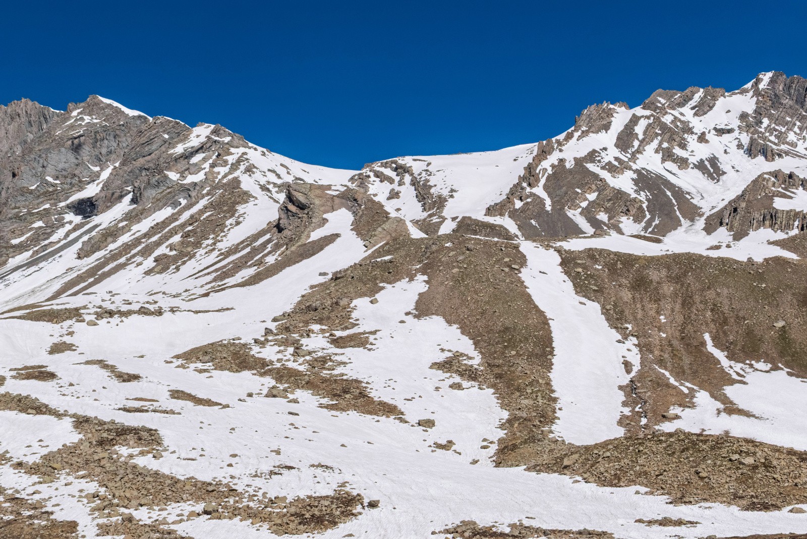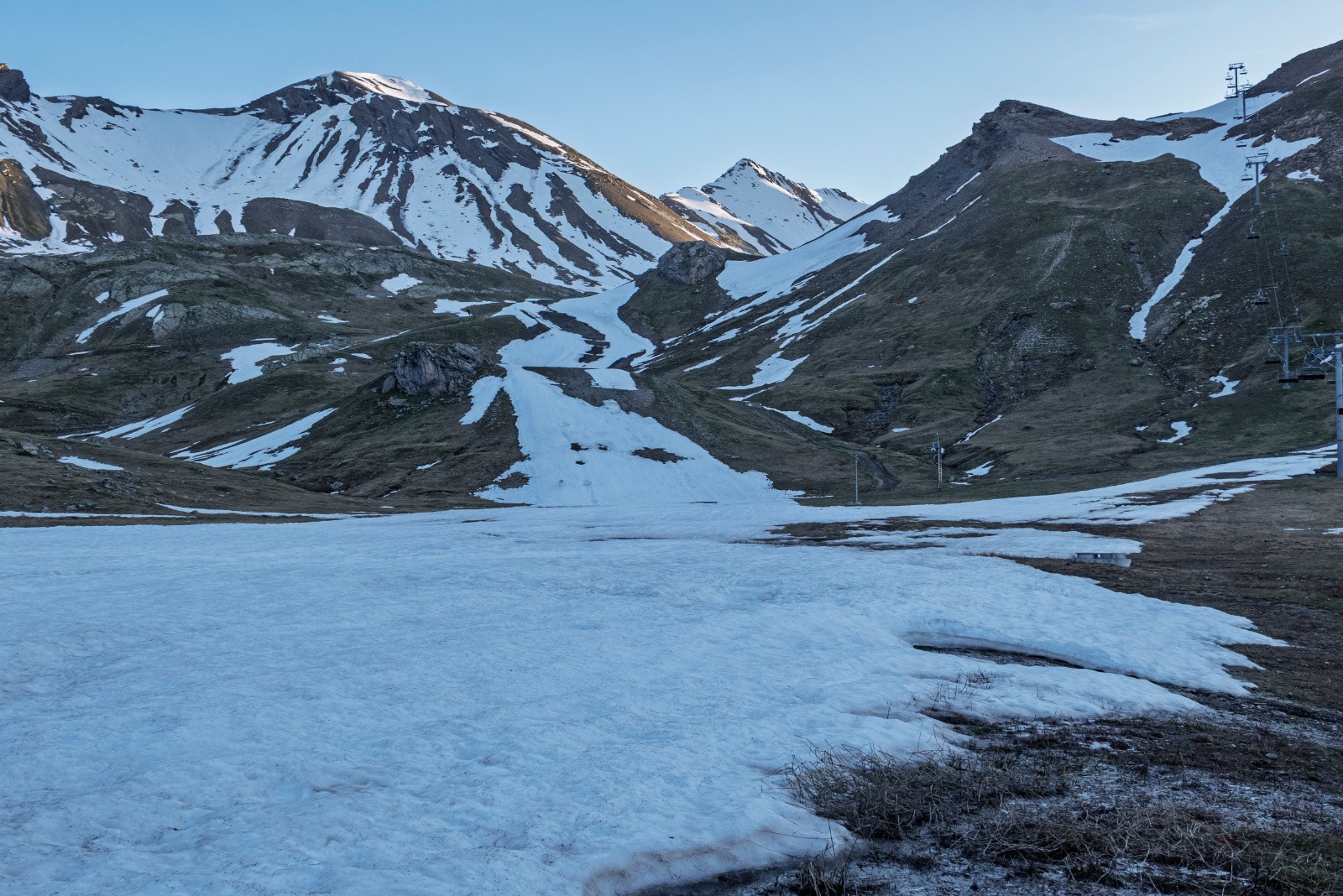 Regel étonnamment bon à partir de 2500m environ côté ouest, dû passer la corniche du col de Freissinières en crampons. Du coup ça m'a donné de faux espoirs, mais en arrivant au col il faut se rendre à l'évidence: c'est pas la même au soleil en est, et c'est déjà très mou à 08h30!