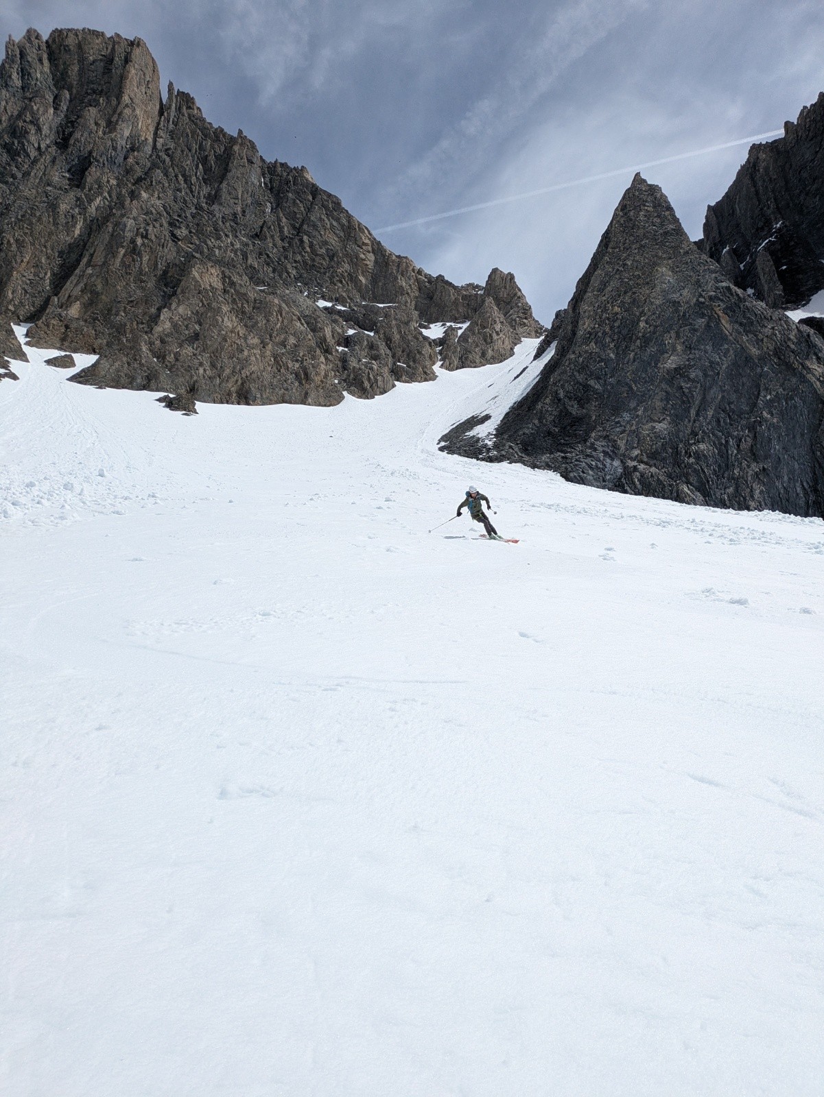 Conditions pour le ski : correct. Regel relatif, mais regel quand même. Neige dure à la montée. Idéal pour le couloir malgré quelques passages plus meubles.