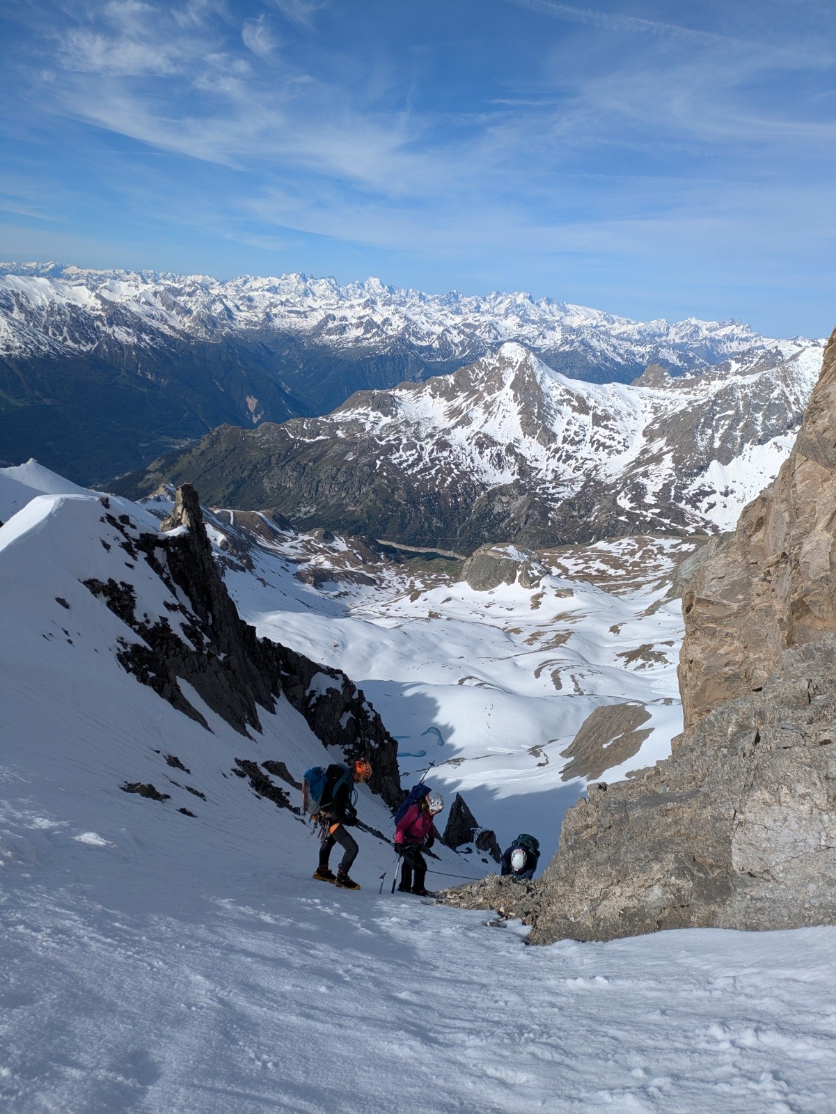 A vue : encordement sûrement aidant sur l'arête sommitale, que nous n'avons donc pas faite.