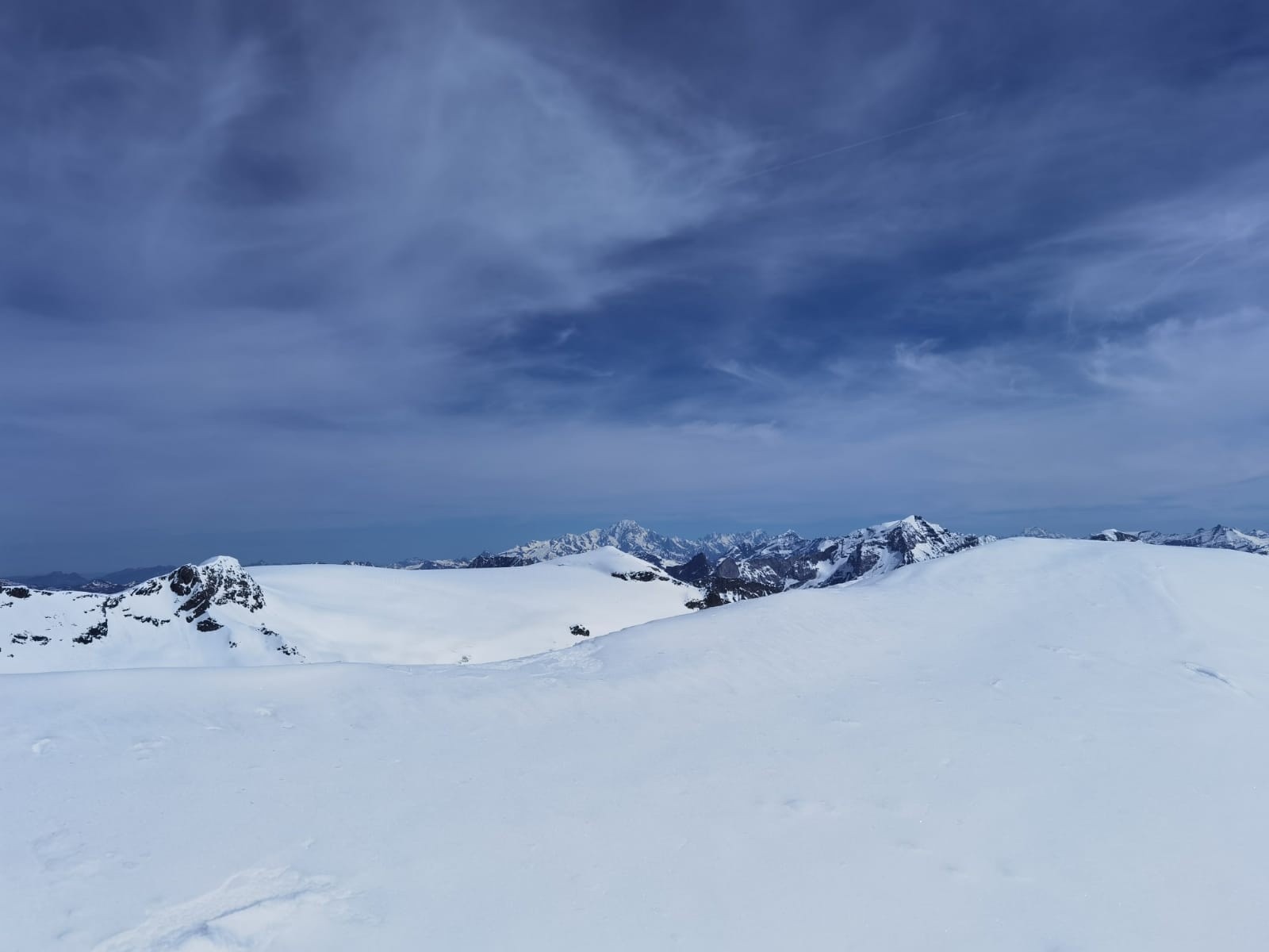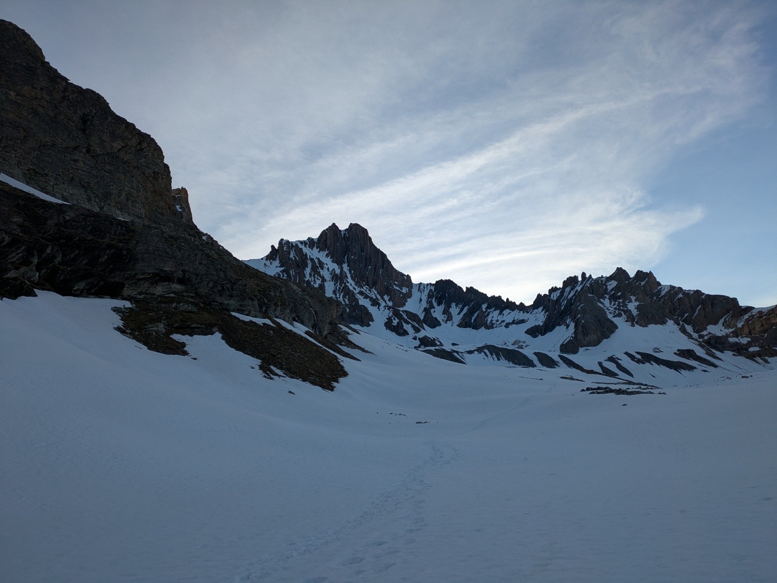 Depuis le début de l'arête. Pointe de la Fournache et jolies congères.