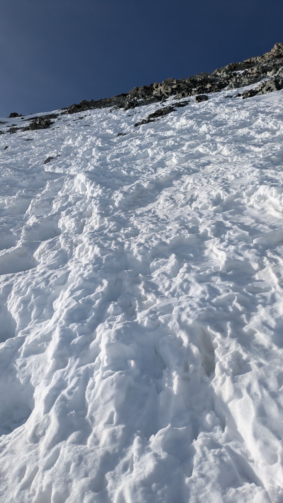 Conditions nivo et activité avalancheuse : un petit serac est tombé sur la trace vendredi aprem au milieu de la face. Heureusement personne dans le coin. Sinon ras.