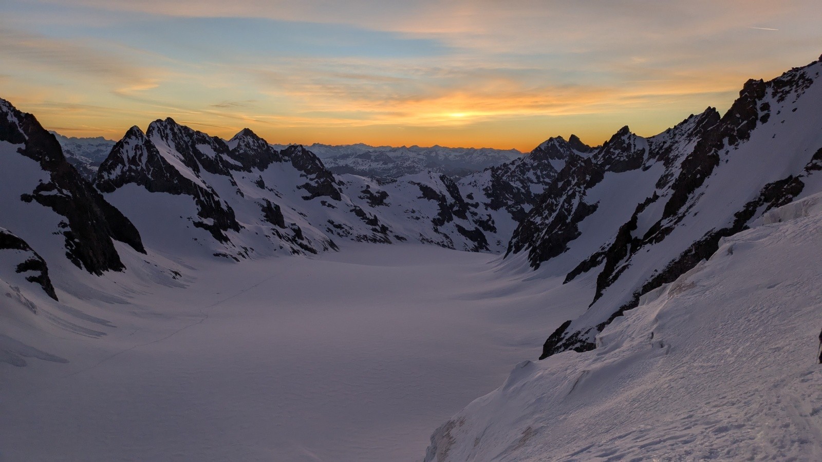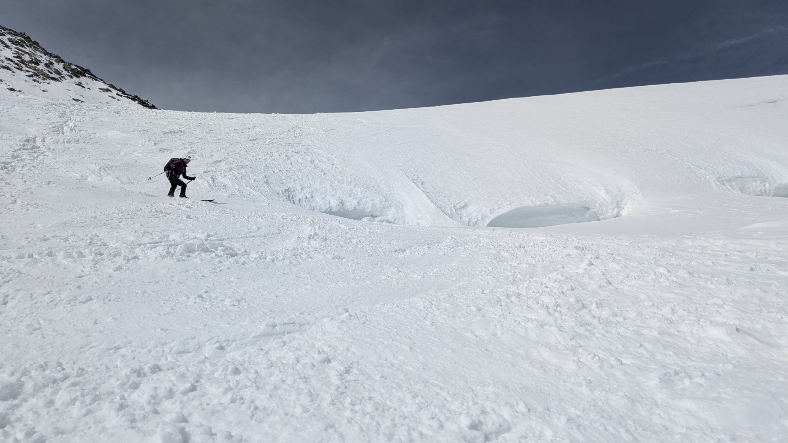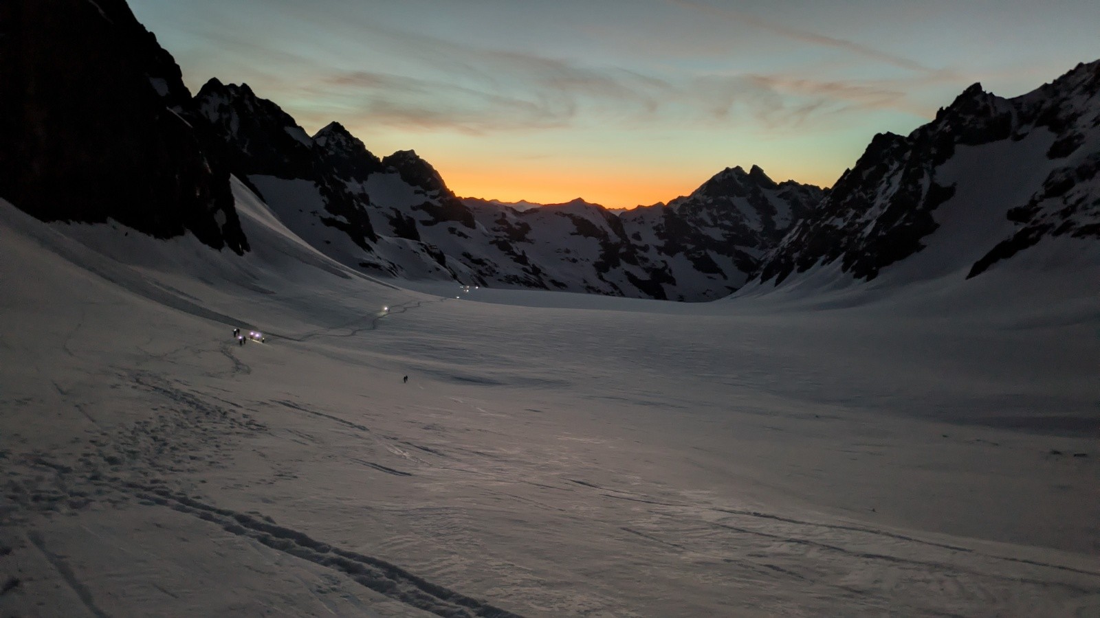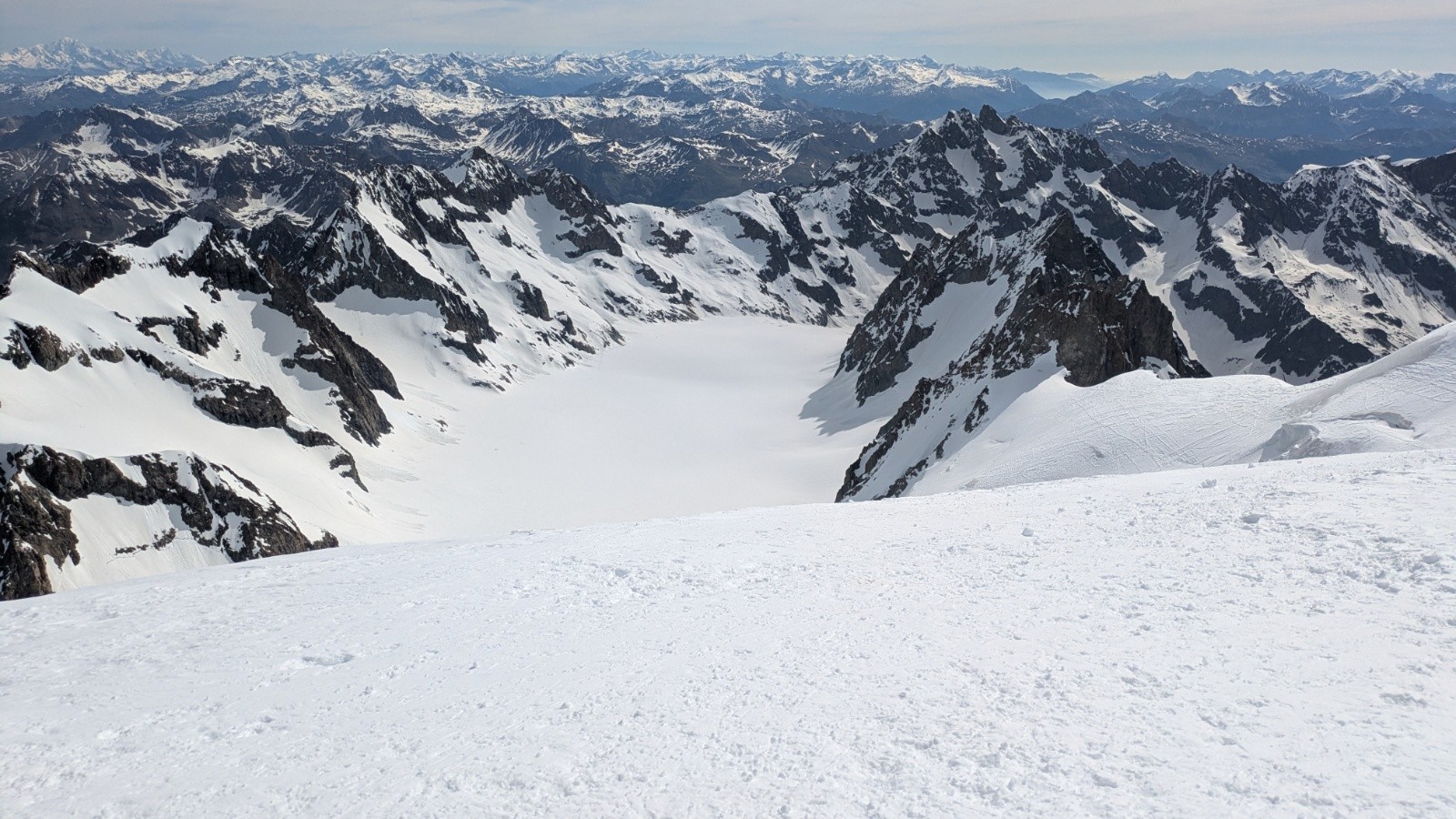 Conditions pour le ski : bonne! Transfo sur le dôme+/- abîmée par le vent et le passage des piétons. Sur le glacier blanc super moquette vers 11h. Je met l'ensemble en correct au vu du gros portage...