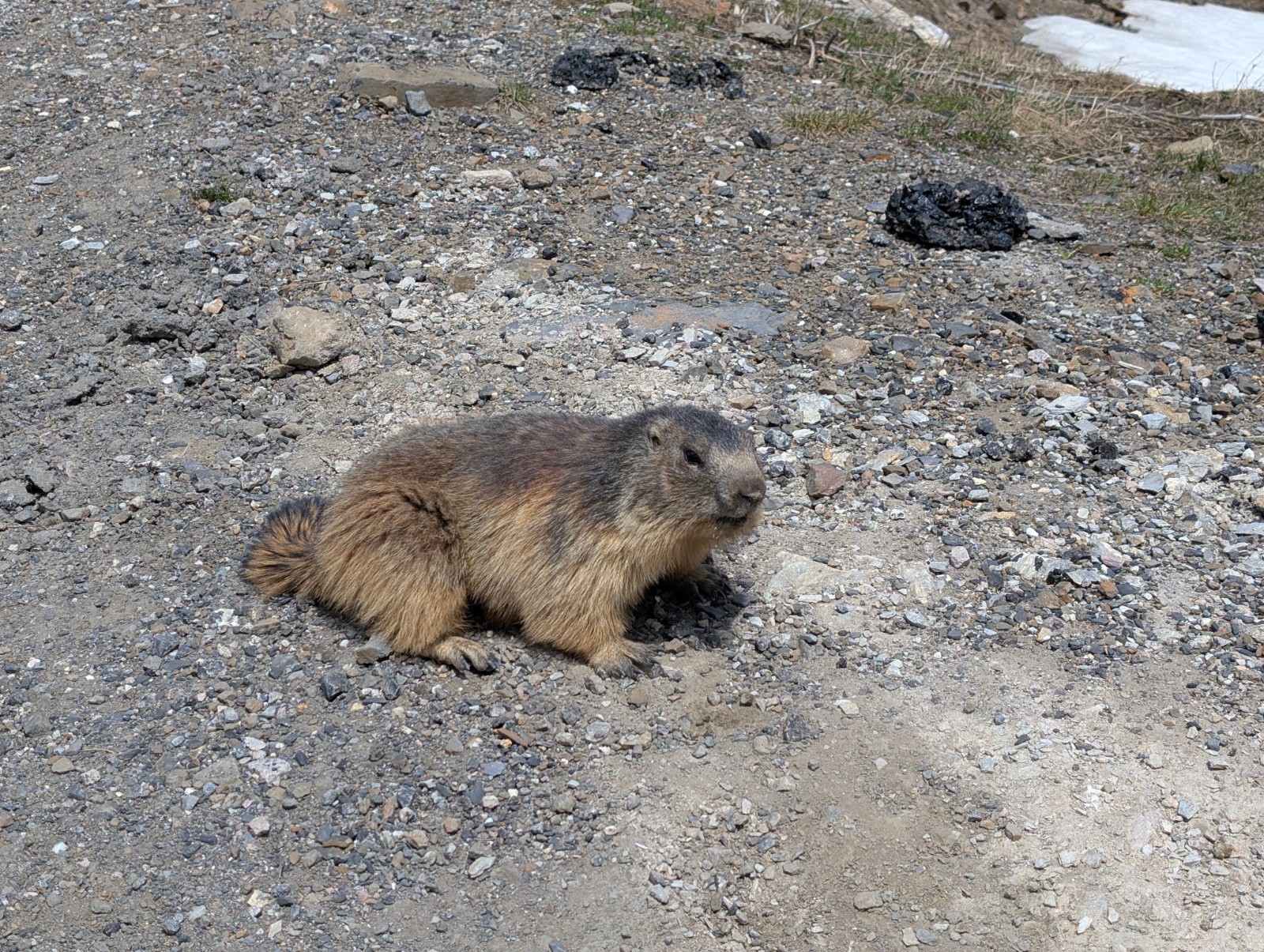 Pleins de marmottes dont la dernière aperçue sur le parking qui semble lécher le sol...