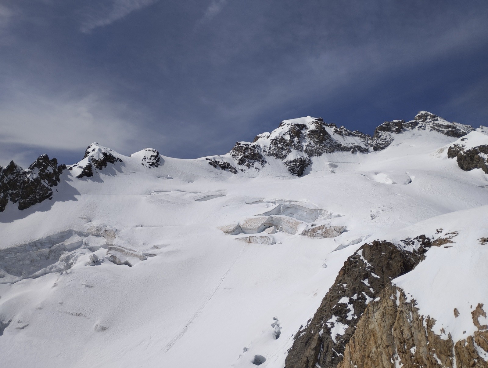 Ensuite neige pas évidente à négocier car croûte assez dure, on est resté sur la partie gauche au début, assez raide.