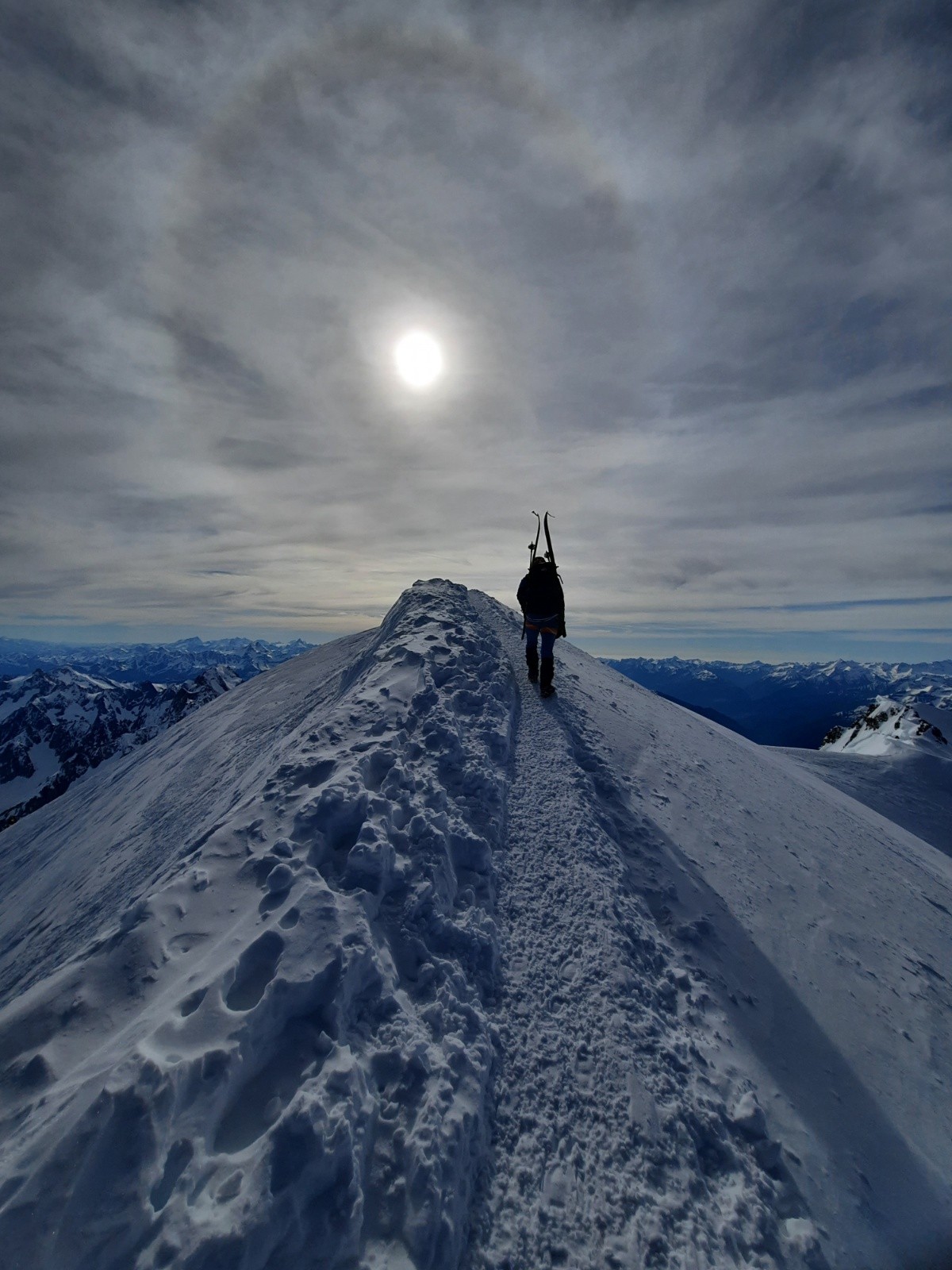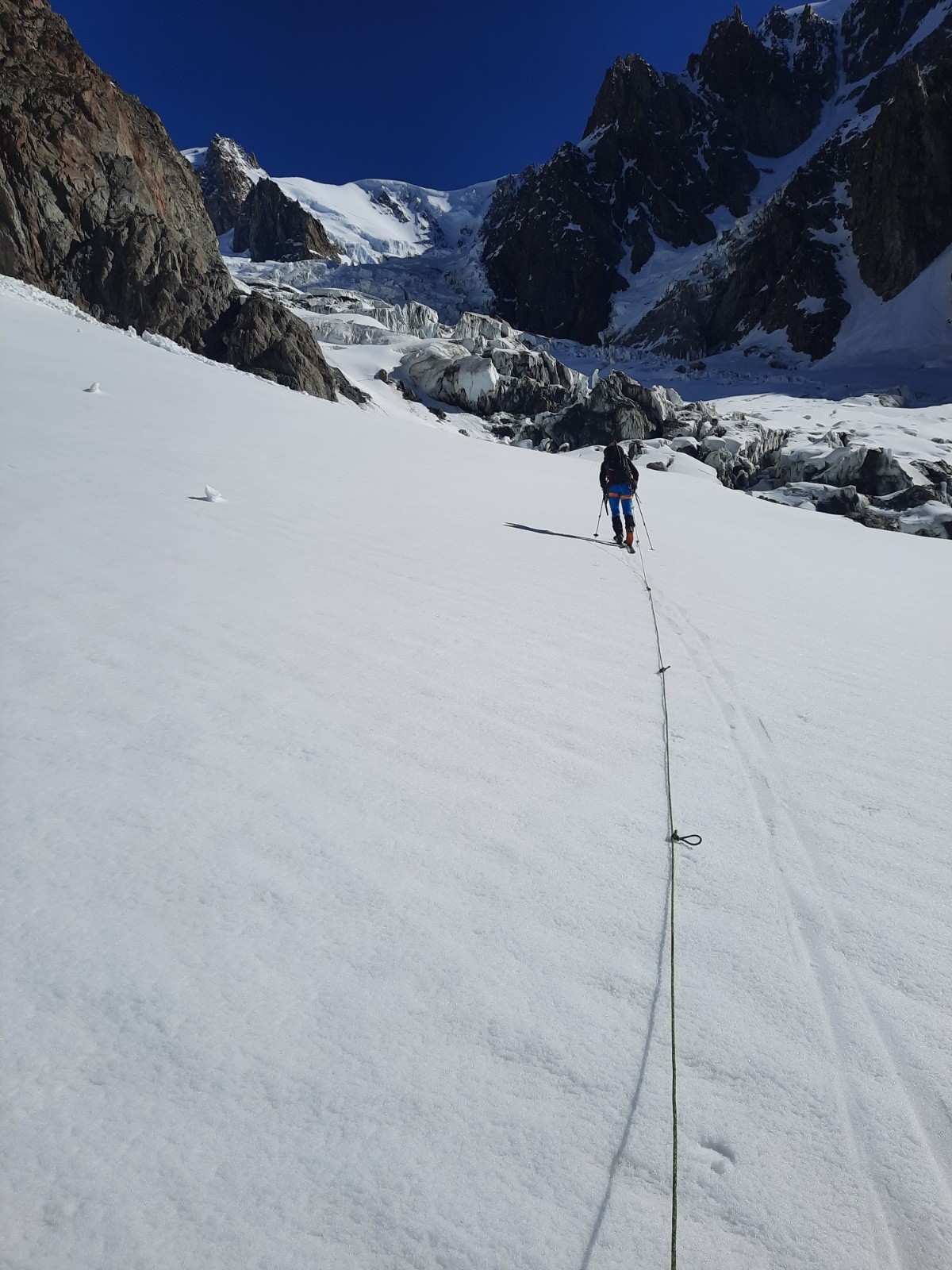 Traversée du glacier du dôme sous Gonella à 9h15. ( cheminement pas si simple).