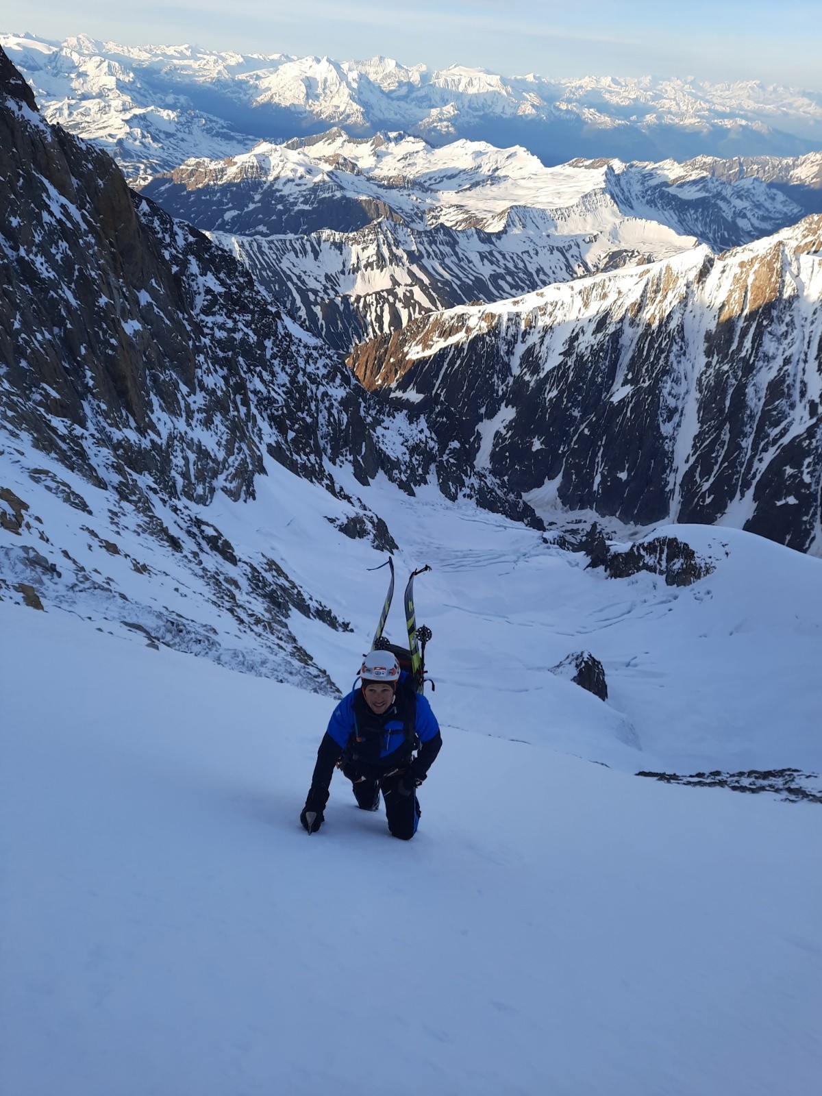 2ème jour départ 4h15. Neige bien portante jusqu'au pied de la face, ensuite croute infâme.