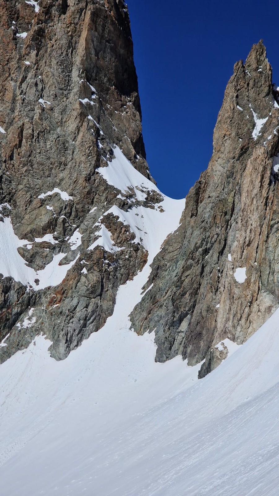 Encore du veloski bien rempli ! Lucas part de Grenoble, je préfère l'option bus jusqu'à Bourg d'Oisans, nettement plus confortable. Ensuite la longue montée jusqu'à Villard d'Arène, avec un passage très bucolique par la route désaffectée de l'autre côté du lac Chambon. On part à 16h30 du parking de Villard d'Arène, ce qui nous a permis de ne pas trop chauffer dans la montée. Le sentier d'été passe très bien, avec deux passages encore en neige un peu expo qui ont nécessité l'usage du piolet. Le lendemain, c'est Grande Ruine ! La montée déroule bien, le couloir du haut est nettement plus raide, mais ca passe assez bien. Le col de la Casse Déserte ne nous tentant pas trop pour le lendemain, on décide finalement de redescendre jusqu'au plan de Valfourche pour remonter au refuge du Pavé. On finira cette dernière journée par une brèche des Chamois fort sympathique, avant un retour à Grenoble et à la chaleur caniculaire.