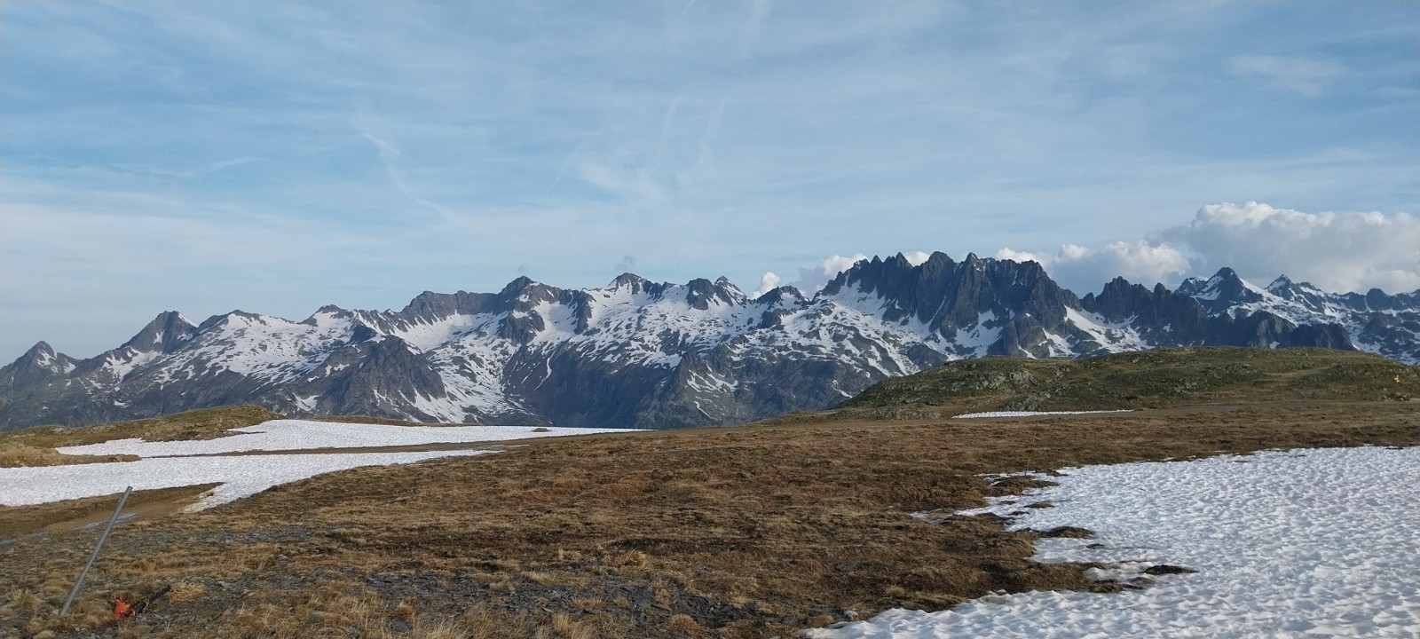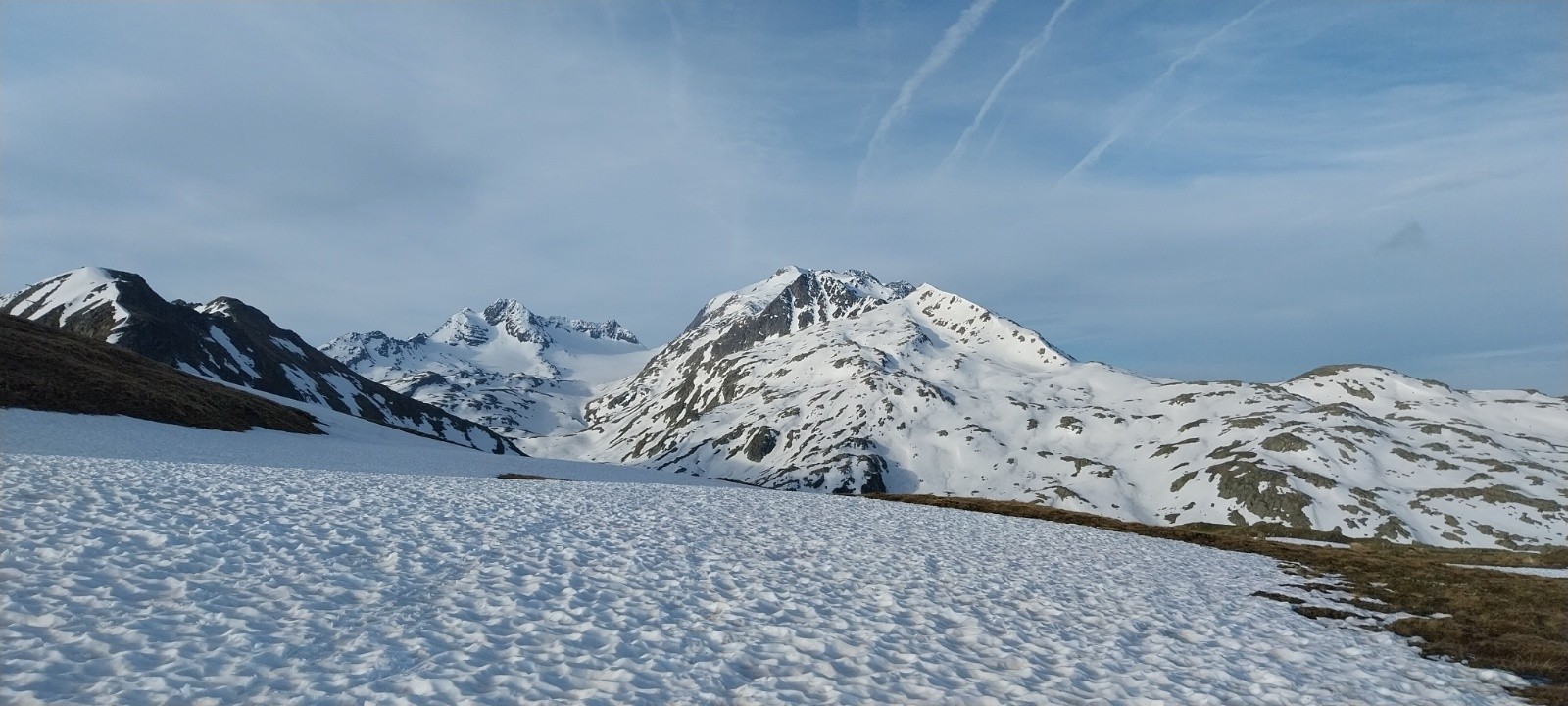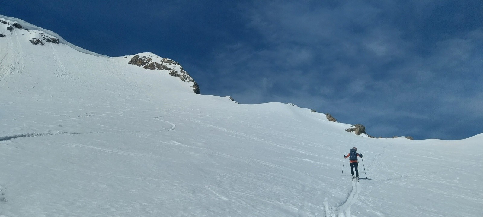 Comme on était en retard avec une arrivée au sommet vers 11h30 on n'a pas trop trainé en haut et on a vite pris le chemin du retour. Neige humide mais facile, agréable et pas trop physique à skier jusqu'à 2850m. C'était un peu inespéré mais on prend avec plaisir. Après cela s'en suit une grosse session "pousse bâton" qui m'a bien soulé. Quand on n'aime pas le plat il suffit de monter et descendre, quoi de mieux que l'aiguille de Laisse pour ça ? Sur accord plutôt unilatéral je laisse maman finir sur le plat pour recoller mes peaux😅. Je remonte sans aller trop vite, c'est assez physique, ça ripe un peu et le soleil cogne bien🥵. Après avoir croisé un chamois au loin je monte au plus direct sur la crête entre l'Aiguille Noire et celle de la Laisse. Je me dis que ce sera plus joli de finir sur les crêtes. Une fois sur la crête c'est effectivement très joli mais ça sera à pied, la neige n'est pas présente partout. Pas de regret, c'était bien sympa 😁!