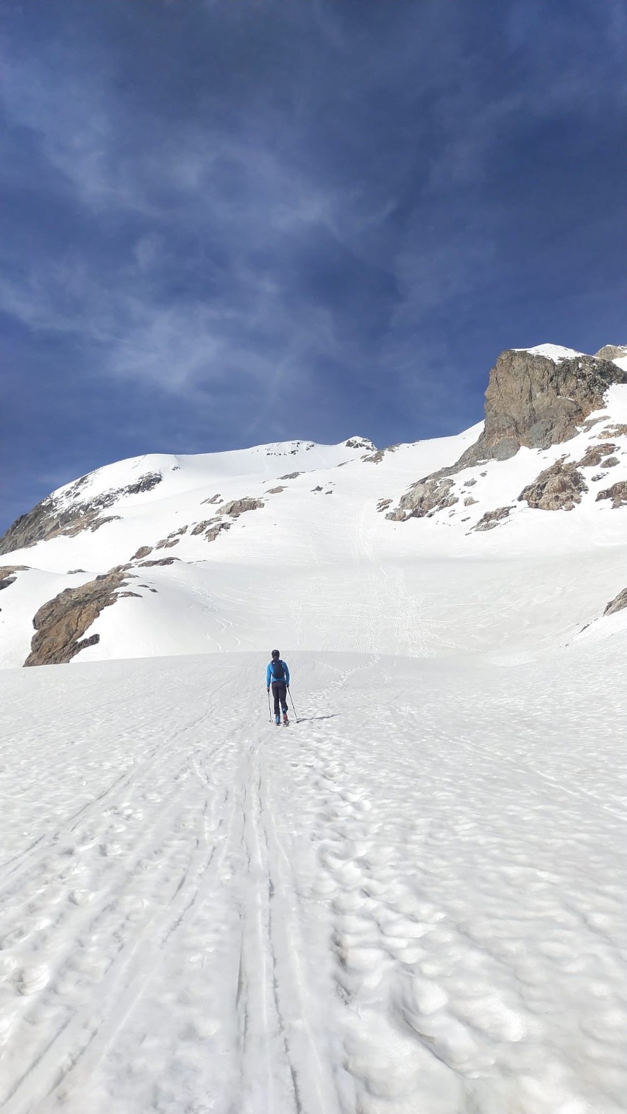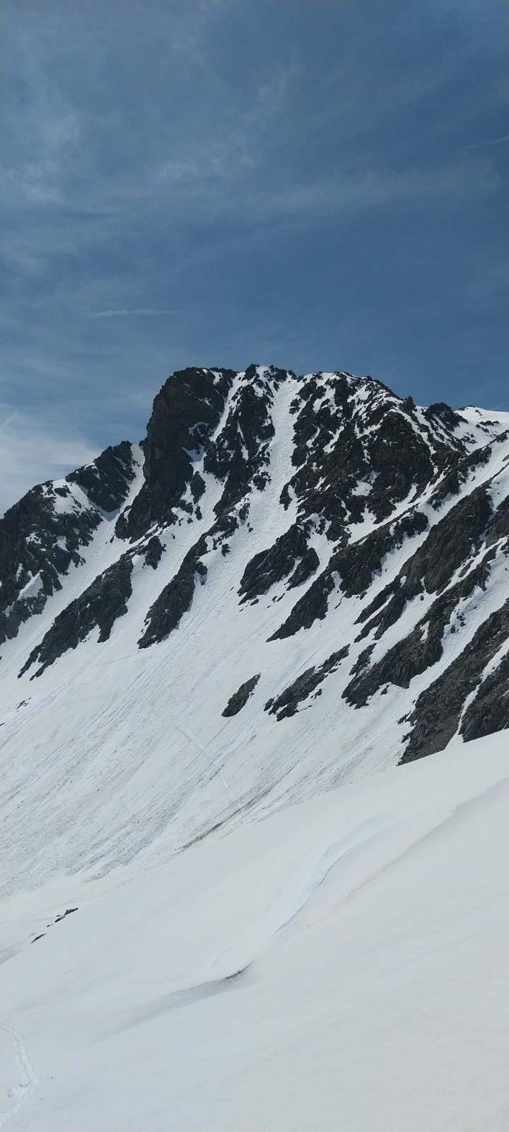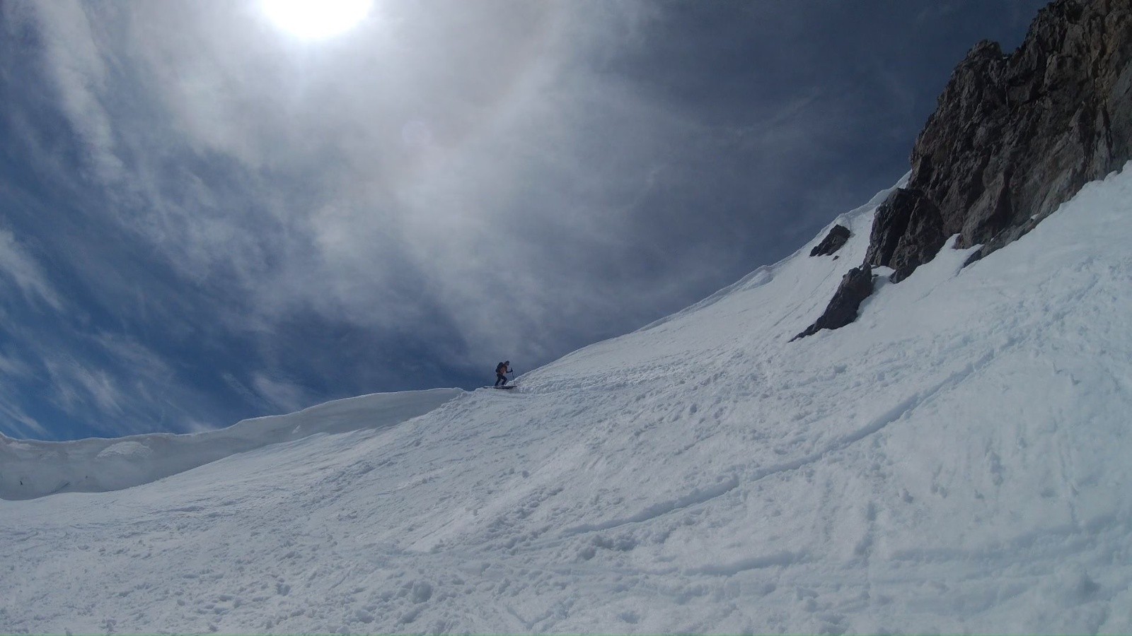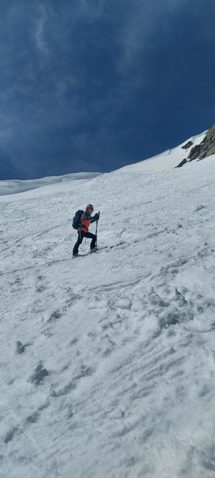 Conditions pour le ski : Aucun regel, neige lourde sur tout le parcours mais étonnement agréable à skier sur le haut, on s'en contente bien jusqu'à 2850m, après ça commence à coller et plus on descend pire c'est sauf sur la toute fin en neige de névé mais il n'y a pas grand chose. Ne pas compter dessus...