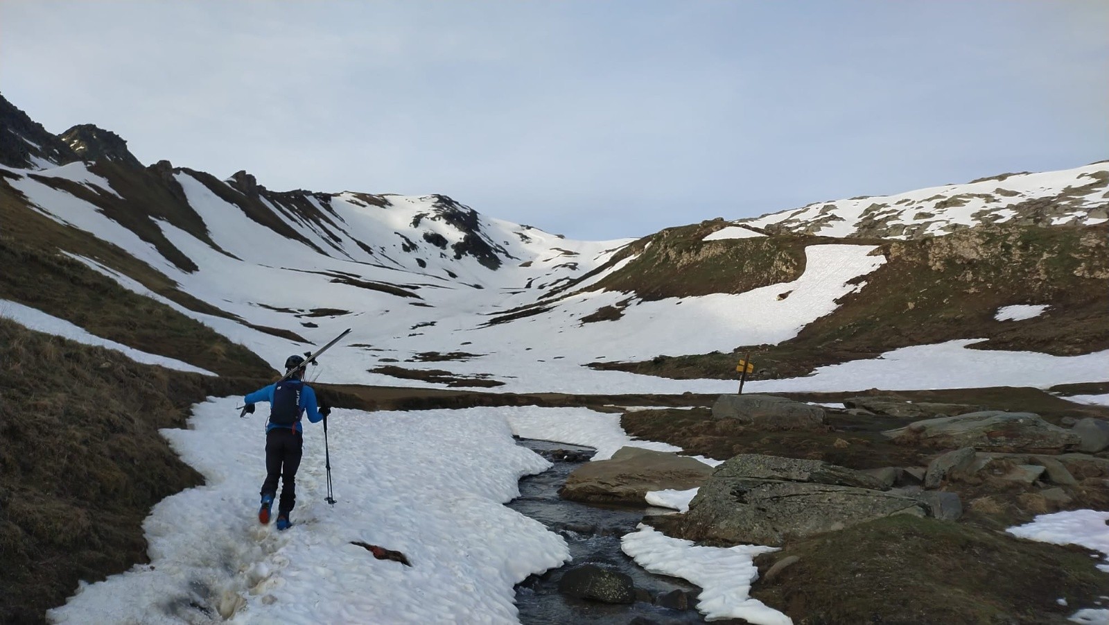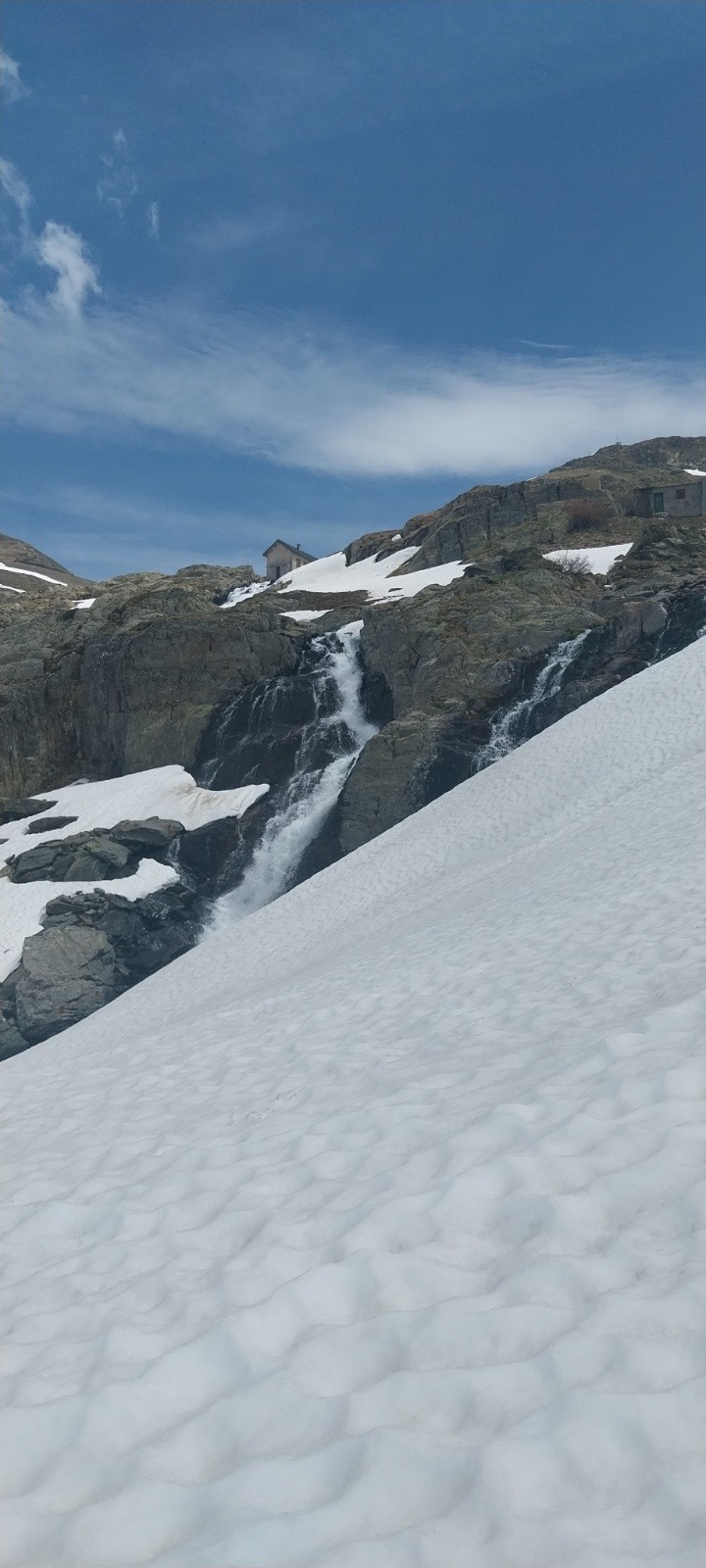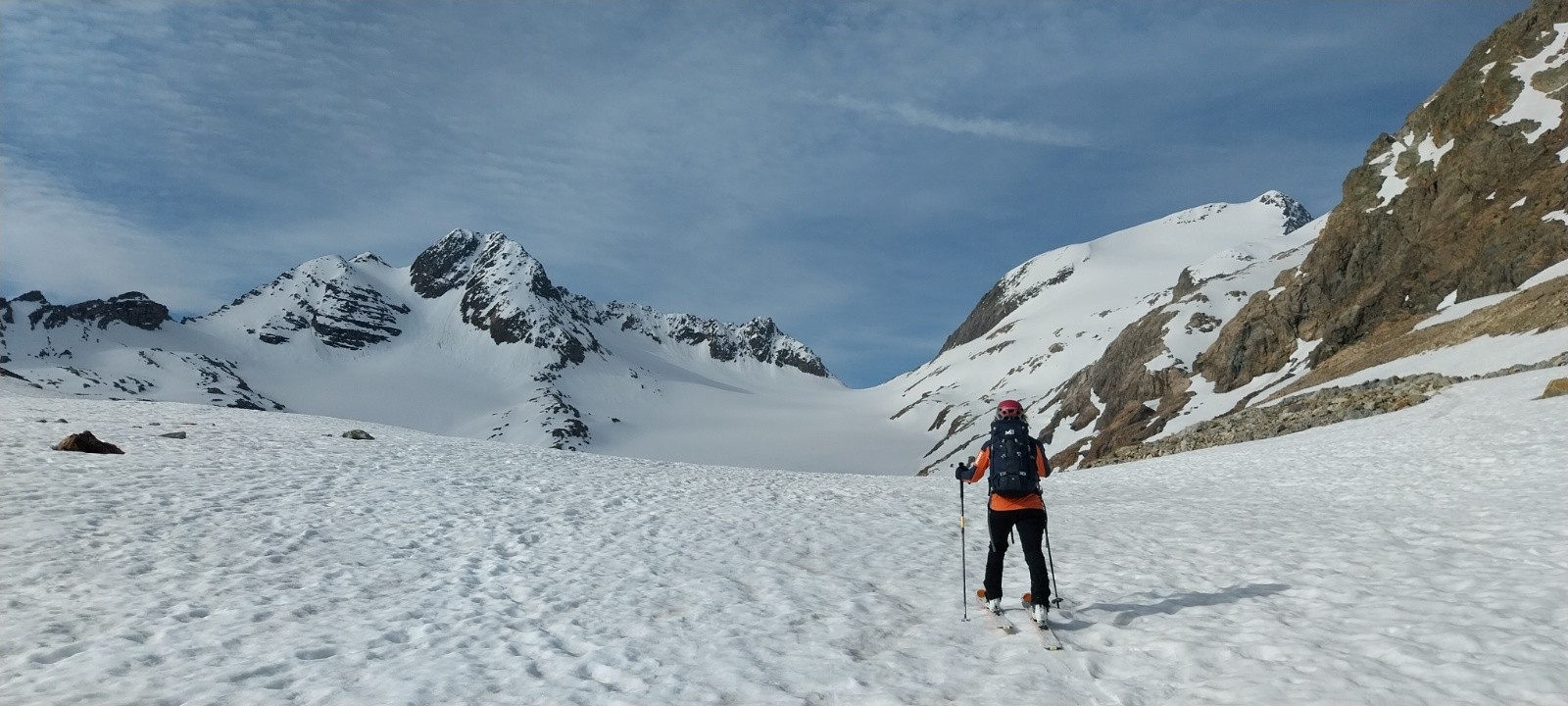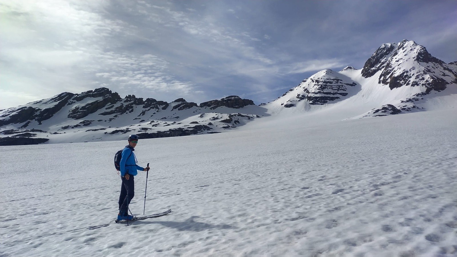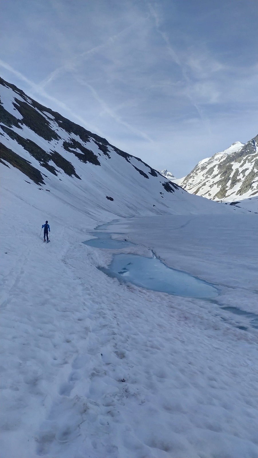 Conditions pour le ski : Aucun regel, neige lourde sur tout le parcours mais étonnement agréable à skier sur le haut, on s'en contente bien jusqu'à 2850m, après ça commence à coller et plus on descend pire c'est sauf sur la toute fin en neige de névé mais il n'y a pas grand chose. Ne pas compter dessus...