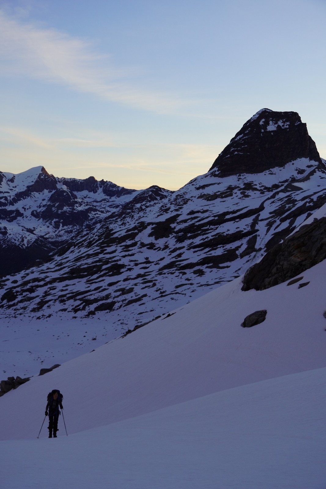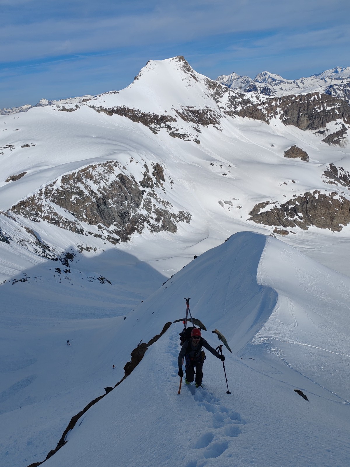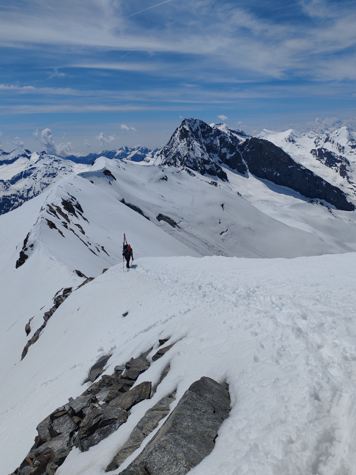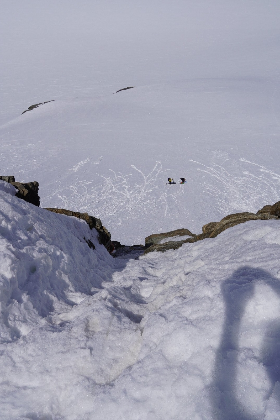 Horaires : Depart au refuge des Evettes a 4h15, sommet du Petit Ciamarella a 8h20. La descente était pas facile, du coup on commence a monter l'Albaron a 9h30. Sommet de l'Albaron a 12h. Le rappel du sommet est facile a trouver s'il y a des traces, si non c'est pas evident (c'est directement au sommet, mais le premier anneau est ca. 5m en bas). Du coup, il faut deescalader un peu, on s'est assuré avec des skis. On avait une corde de 30m, et un rappel suffit (apres avoir deescaladé 5m). Apres, descent rapid, comme la neige est pas ideal. On fini le ski a 14h, apres 1h de retourner au voiture.