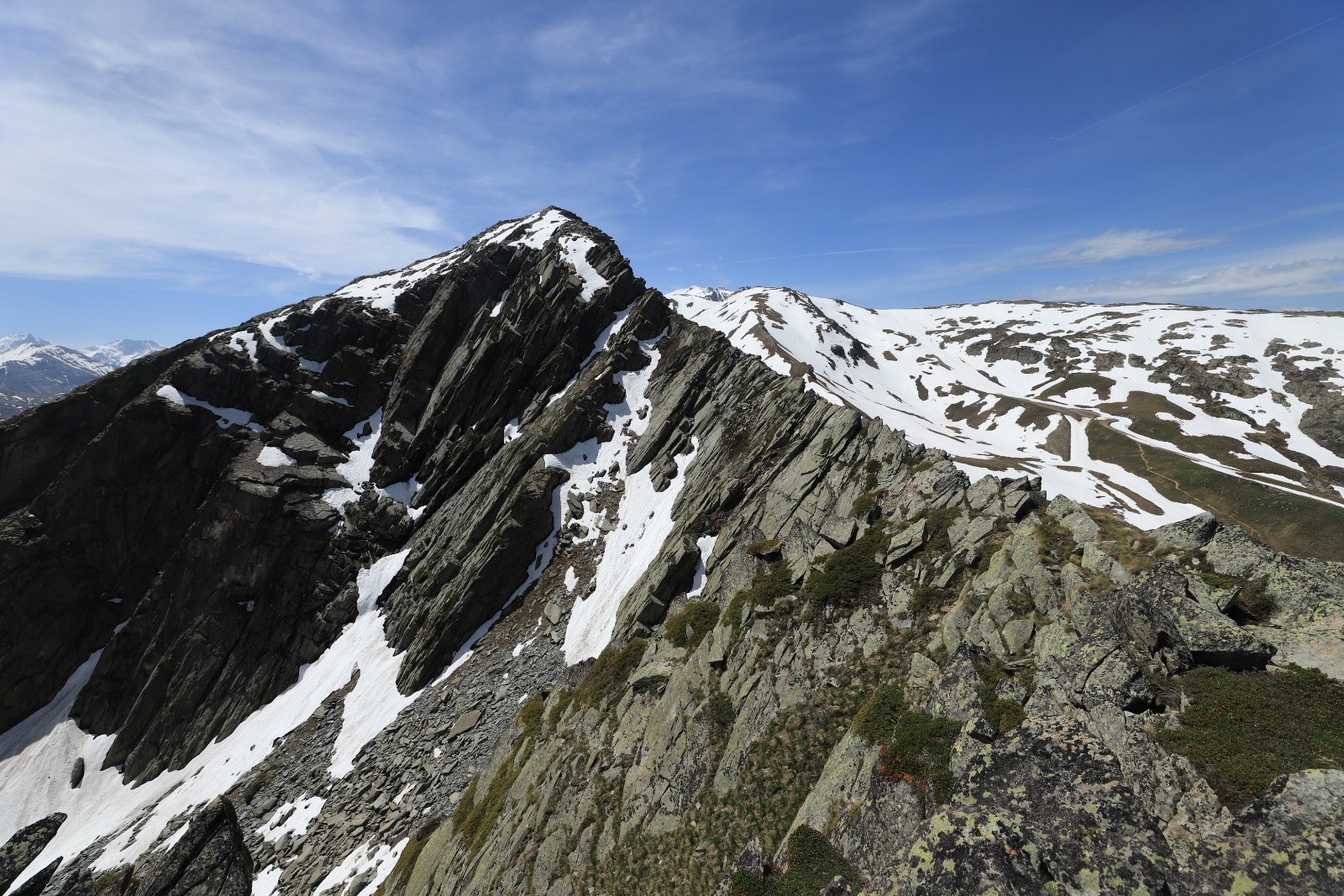 Finalement il s'agit plus d'une petite course d'arête, j'aurais mieux fait de prendre les baskets et de laisser les skis qui m'handicapent plus qu'autre chose dans les passages de grimpe sous les gros blocs ça heurte partout 😅