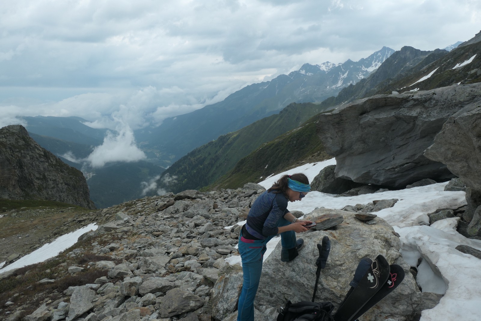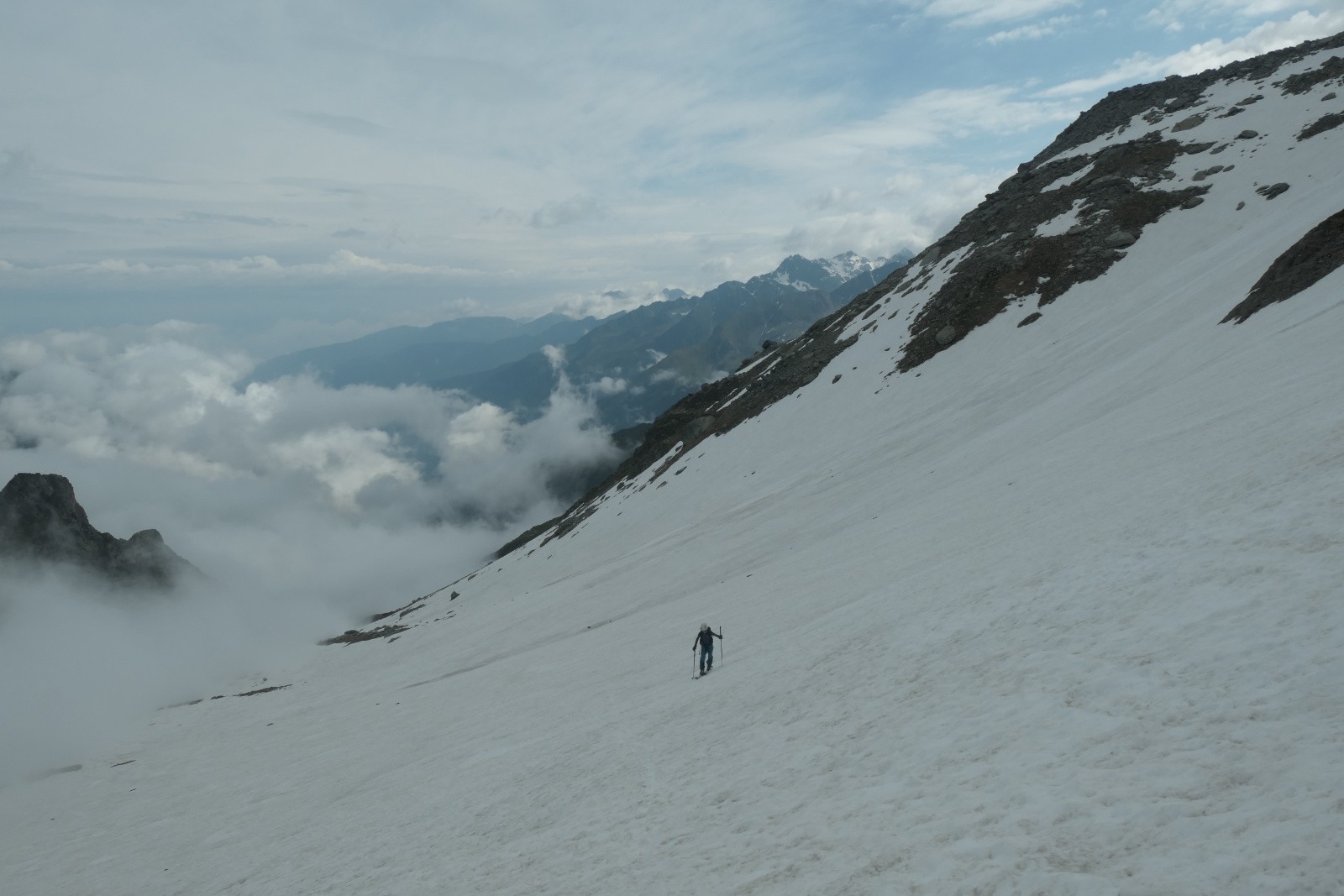 Conditions pour le ski : neige tassée tout le long de l'itinéraire. Enneigement encore rentable pour le ski. Manteau neigeux encore relativement lisse. Peu de regel
