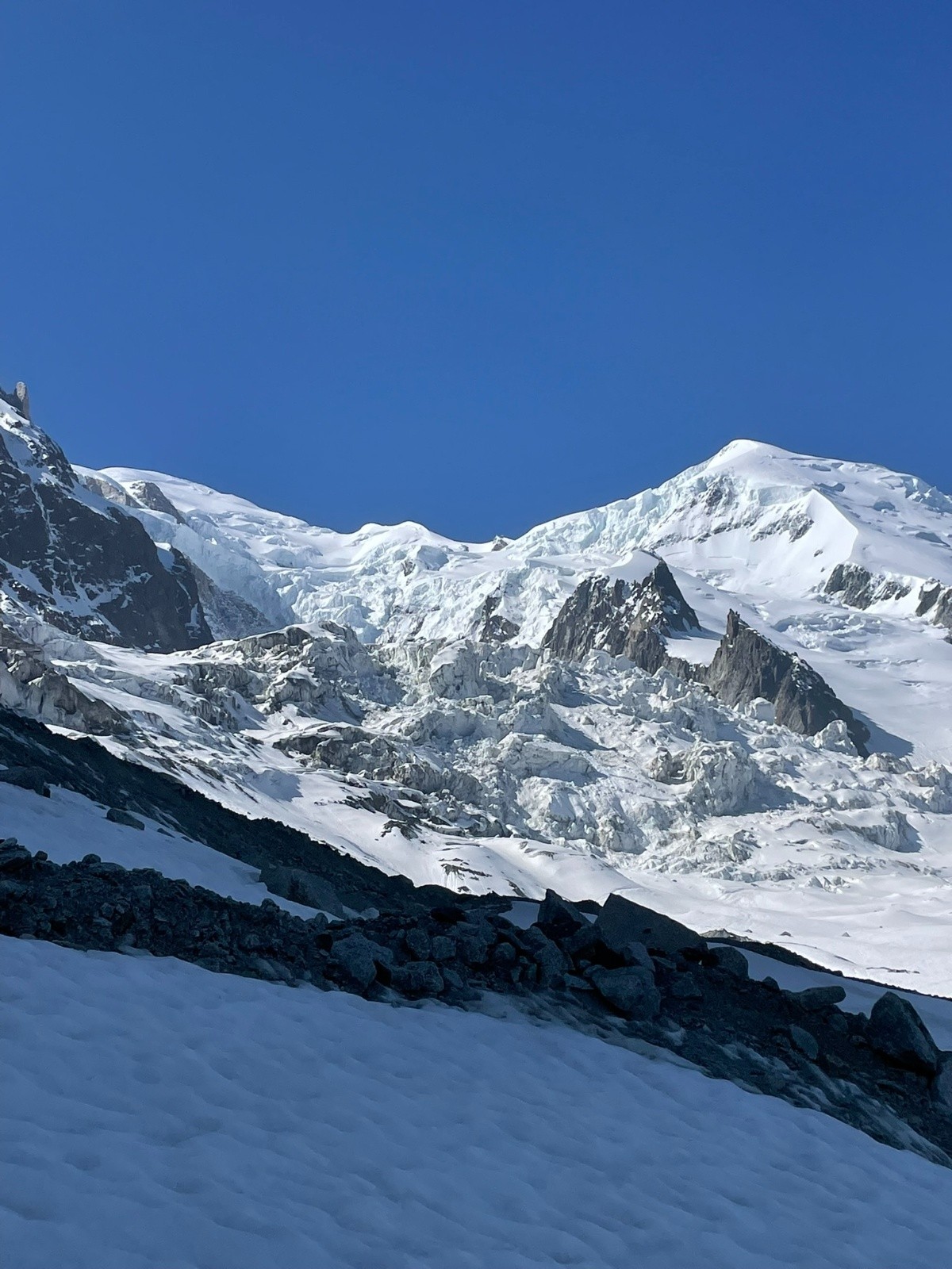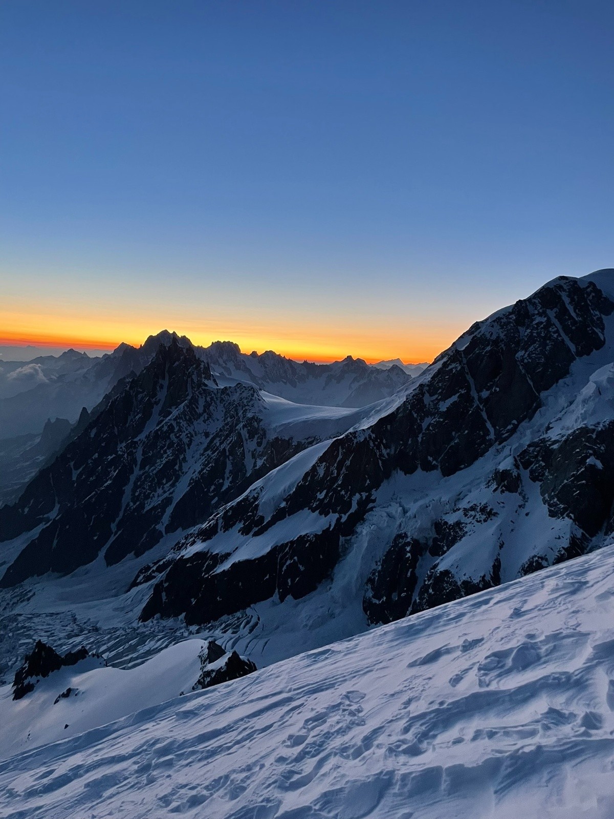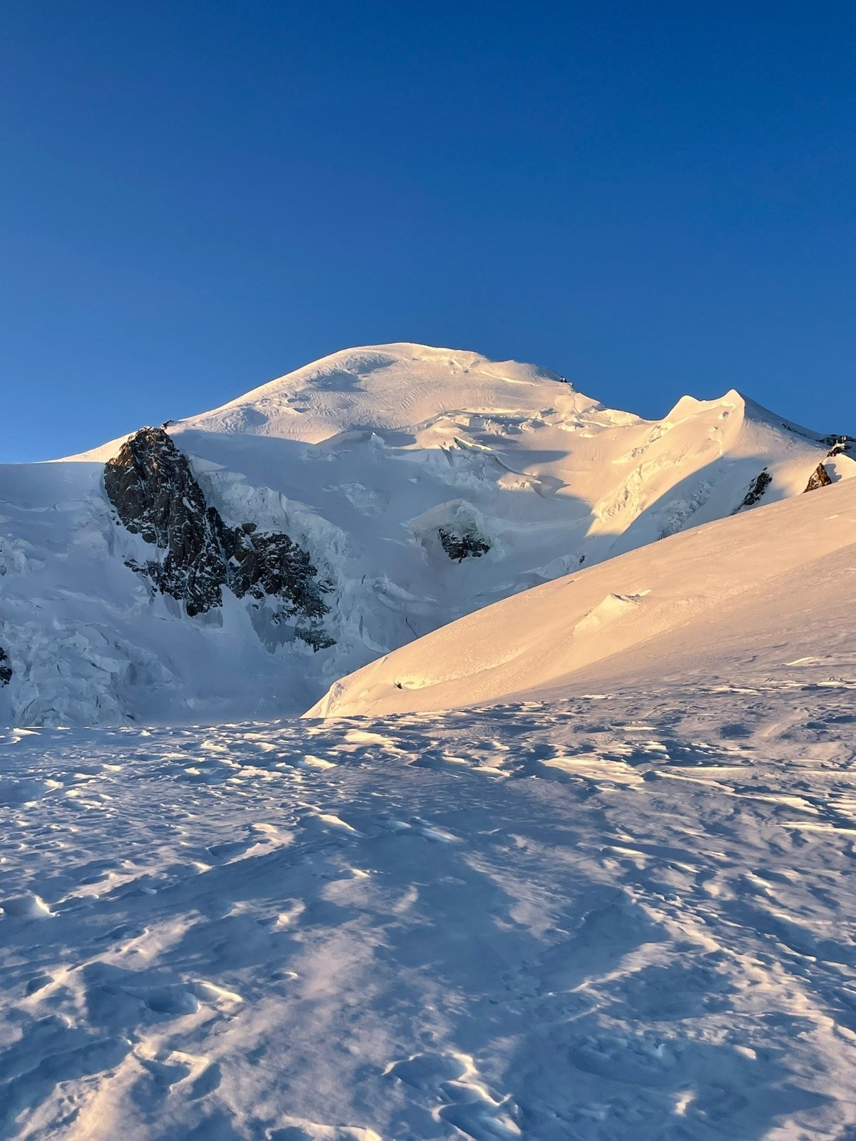 Voilà 2 saisons qu'on essaie d'ajouter le Mont Blanc à notre tableau de chasse. Pas facile de combiner dispo, bonne fenêtre météo sans trop de vent, bonnes conditions de neige et surtout places au refuge. On a sans doute trop l'habitude des résa de dernières minutes dans les ref. des Ecrins.. Ici c'est le pays du MB : télécabines, hélico à gogo, tourismes internationaux, refuge complet bien avant d’avoir les prévi météo, etc. On a manqué 4 opportunités en mai. Cette fenêtre était notre dernière opportunité pour cette saison et c’était la bonne 😊. Et puisqu’il y a l’art et la manière de faire un sommet et qu’on aime bien le style alpin et sauvage, on partira du pk du tunnel à pied, comme les anciens.