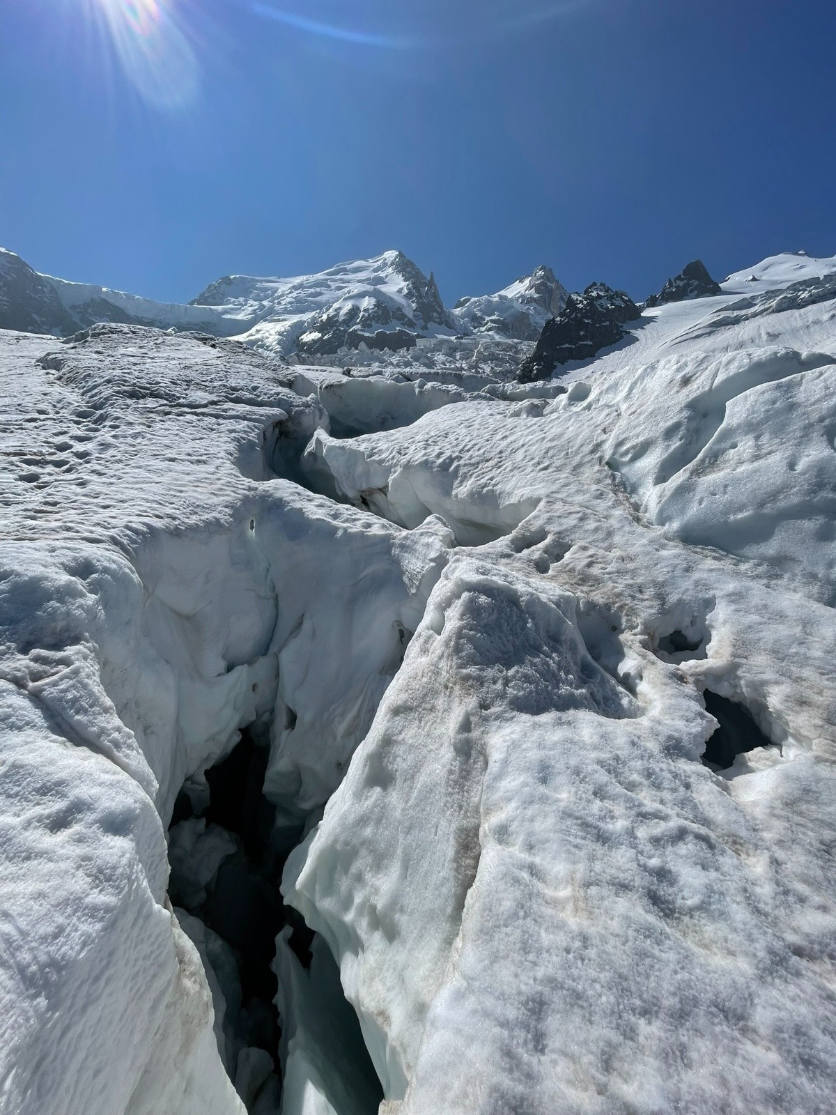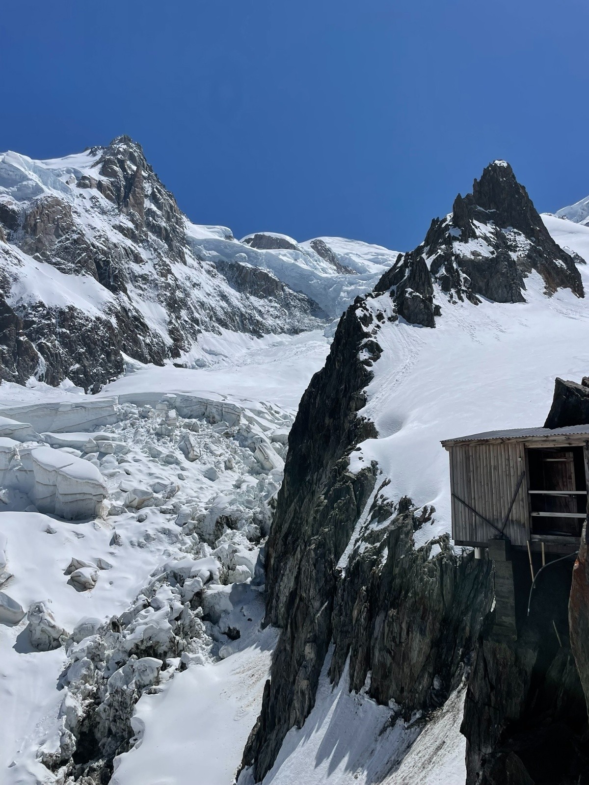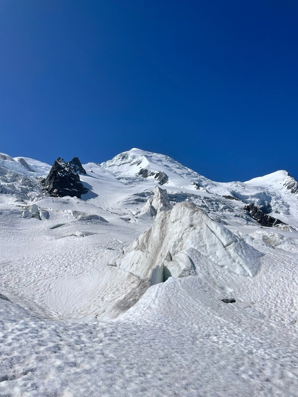 Voilà 2 saisons qu'on essaie d'ajouter le Mont Blanc à notre tableau de chasse. Pas facile de combiner dispo, bonne fenêtre météo sans trop de vent, bonnes conditions de neige et surtout places au refuge. On a sans doute trop l'habitude des résa de dernières minutes dans les ref. des Ecrins.. Ici c'est le pays du MB : télécabines, hélico à gogo, tourismes internationaux, refuge complet bien avant d’avoir les prévi météo, etc. On a manqué 4 opportunités en mai. Cette fenêtre était notre dernière opportunité pour cette saison et c’était la bonne 😊. Et puisqu’il y a l’art et la manière de faire un sommet et qu’on aime bien le style alpin et sauvage, on partira du pk du tunnel à pied, comme les anciens.