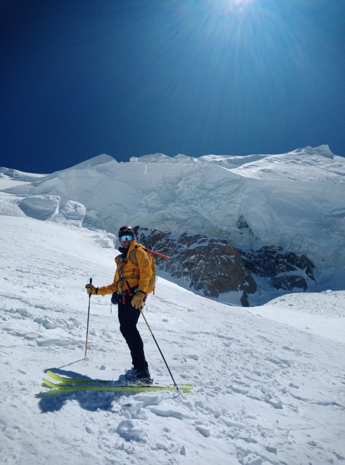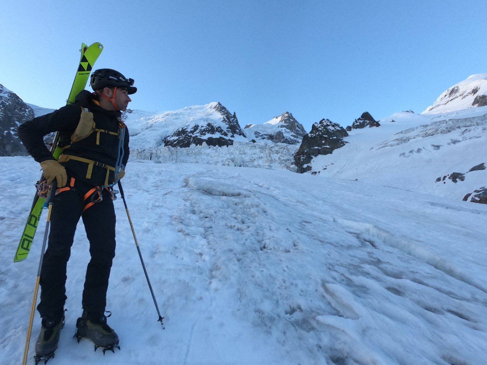 Ensuite névé et glacier pas si raide mais avec un mauvais grip. On hésite entre pieds et skis, et finalement c'est pieds. Mais ça m'épuise étrangement et à 3100m je commence à être attaqué.