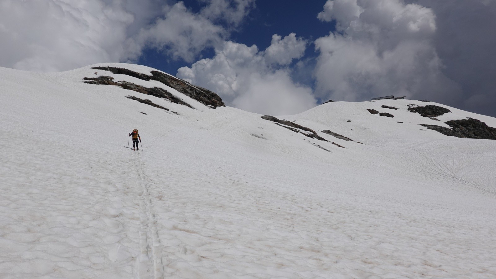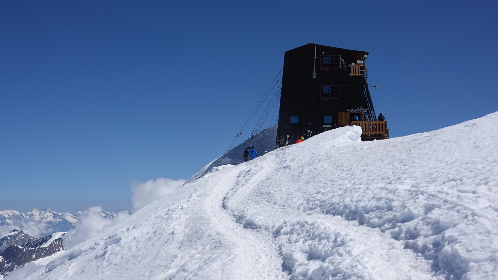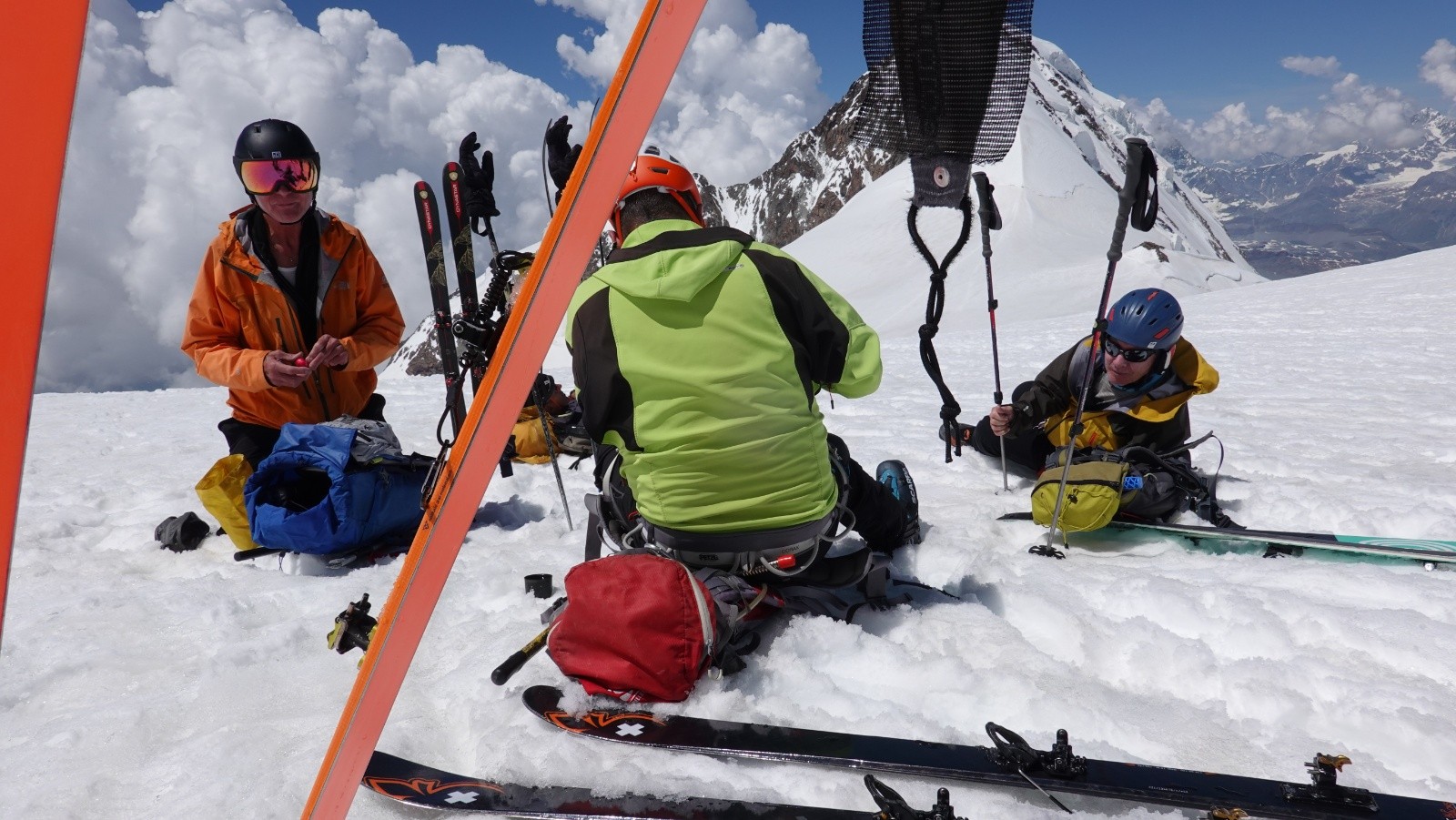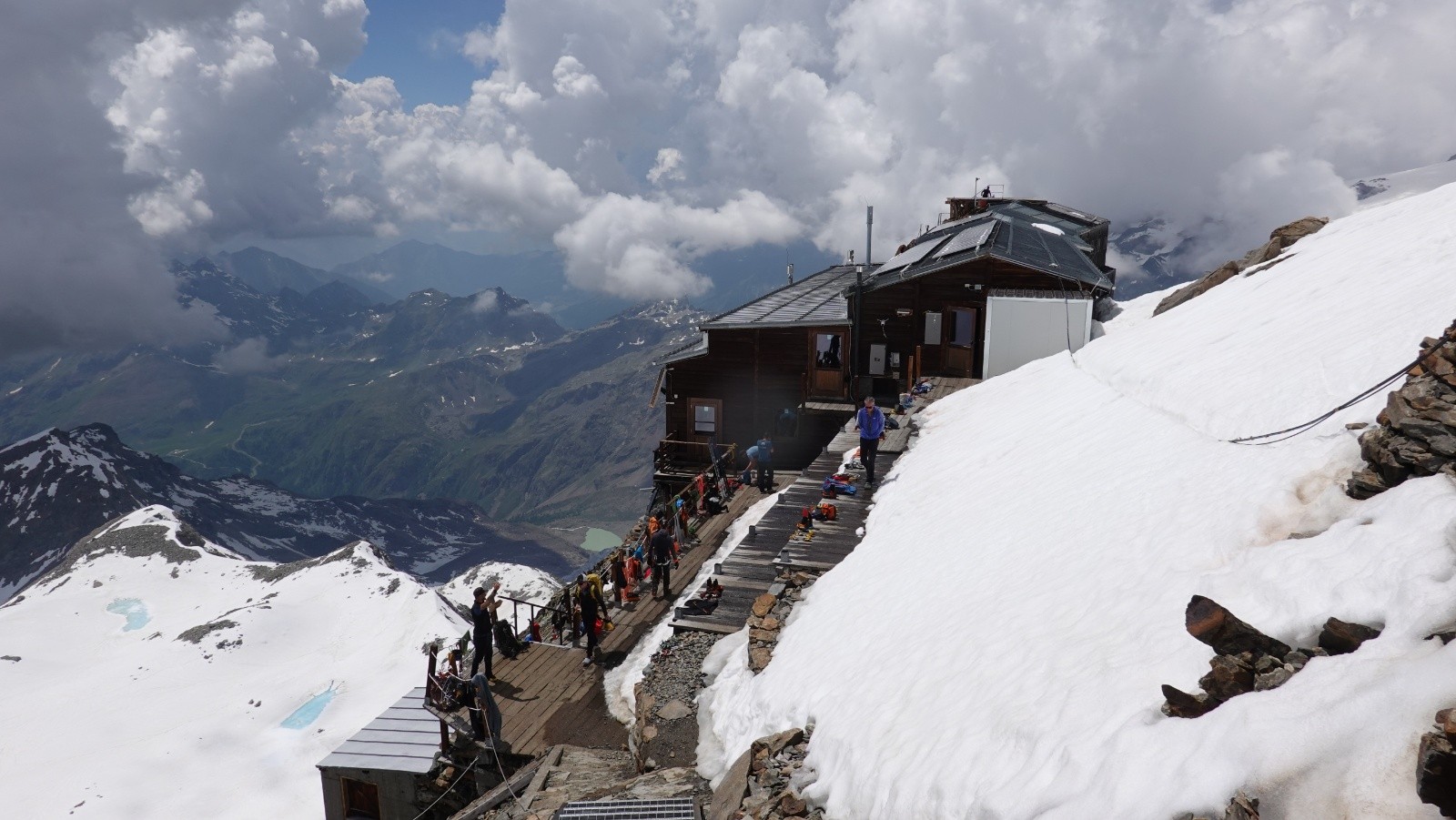 DĂ©part Ă ski de la Pointe Indren Ă 10h40 avec un trĂšs beau temps dĂ©jĂ chaud. Nous suivons l'itinĂ©raire classique qui passe intĂ©gralement Ă ski depuis la Punta Indren grĂące au bon enneigement cette annĂ©e. Lâaltitude et la chaleur sans vent sous le refuge Mantova se font sentir et nous progressons lentement pour arriver au refuge Gnifetti Ă 12h50 avec un accueil toujours trĂšs chaleureux de la part dâErika, la responsable du refuge et ce malgrĂ© la foule dâalpiniste qui commence Ă arriver. Nous nous installons tranquillement avant le rush de la fin dâaprĂšs-midi et prenons le temps dâune pause dĂ©jeuner. Nous avions prĂ©vu initialement de monter vers la Piramide Vincent dans lâoptique dâamĂ©liorer notre acclimatation mais une douce torpeur nous envahit et finalement nous passerons lâaprĂšs-midi Ă nous reposer. De toutes façons, en dĂ©but dâaprĂšs-midi avec cet isotherme Ă©levĂ©, le manteau neigeux est trop mou pour envisager du bon ski. Refuge quasi complet ce soir comme bien souvent durant la saison estivale mais toujours un repas copieux.