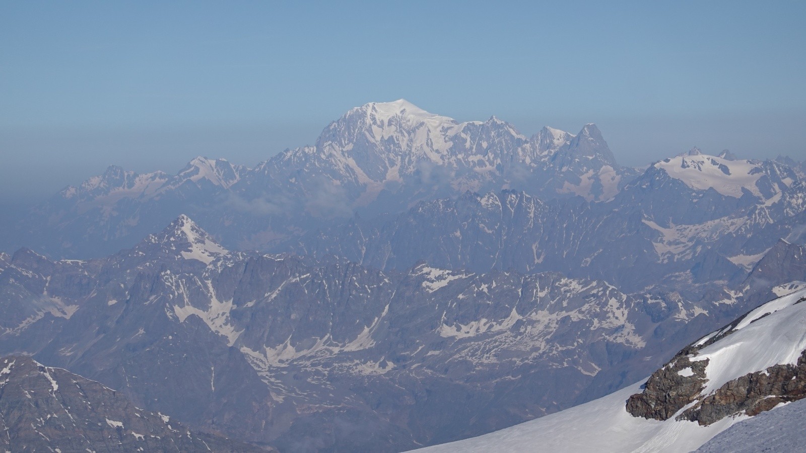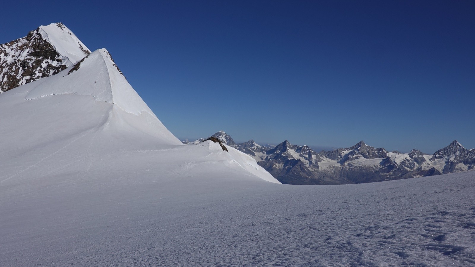 Panorama sur les différentes pointes du Monte-Rosa avec à gauche la Dufour puis la Punta Zumtein, la Punta Gnifetti et Parrot