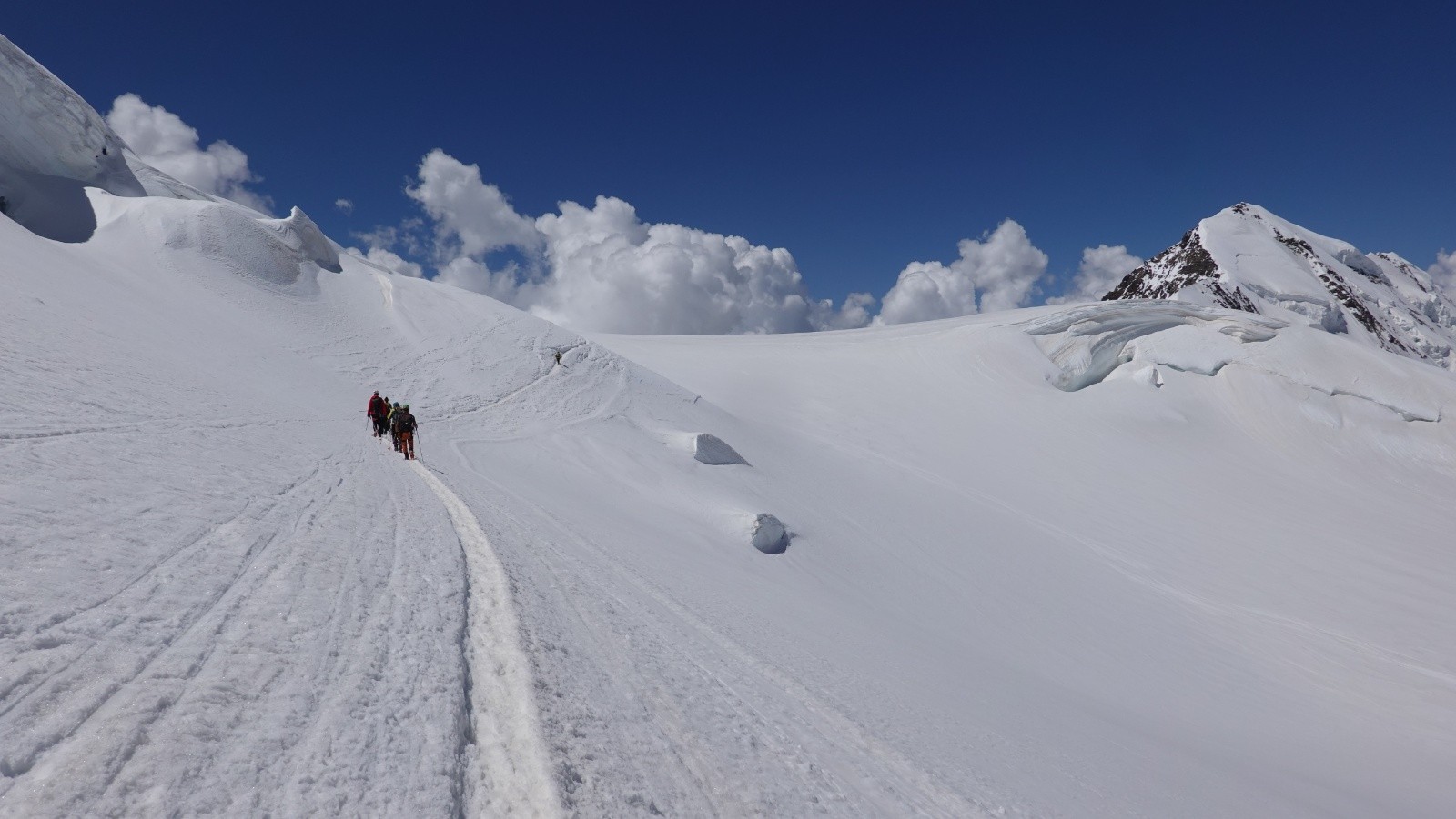 Enneigement du glacier pour monter vers les pointes du Monte-Rosa et la Piramide Vincent