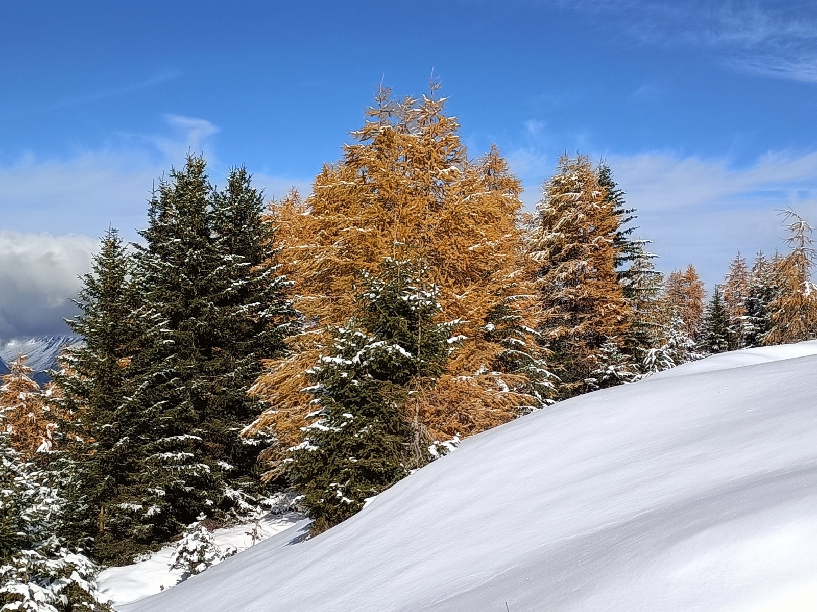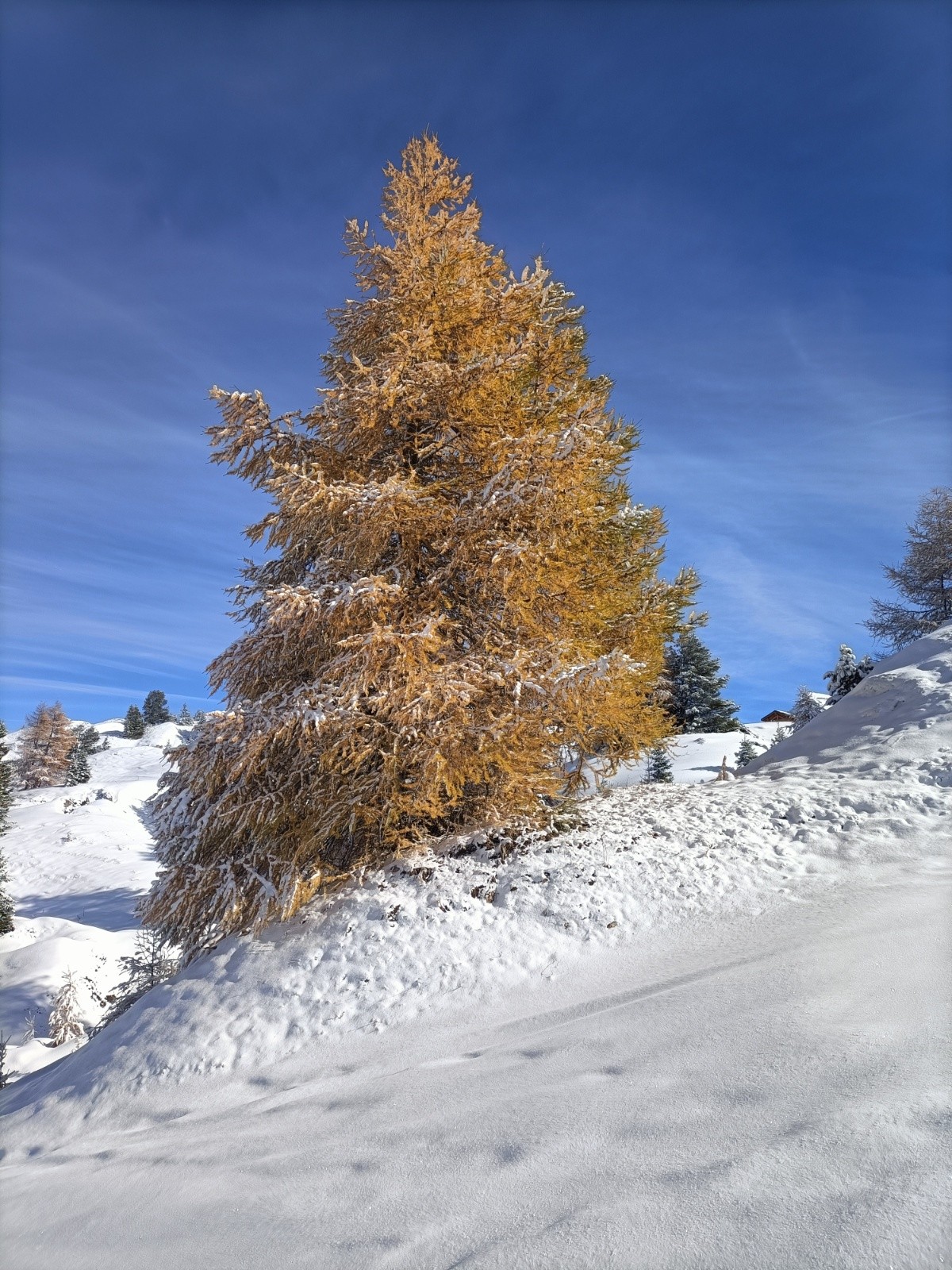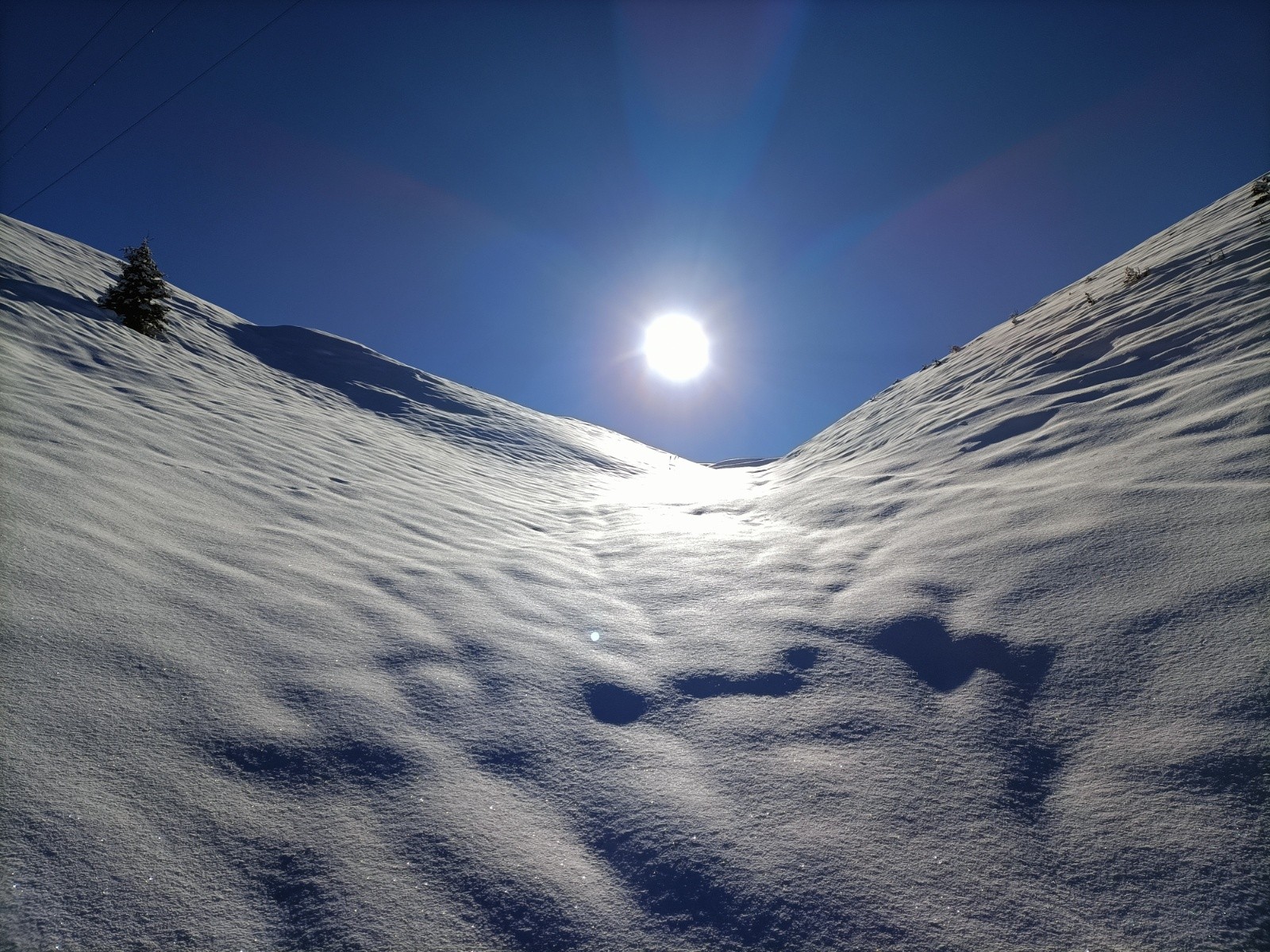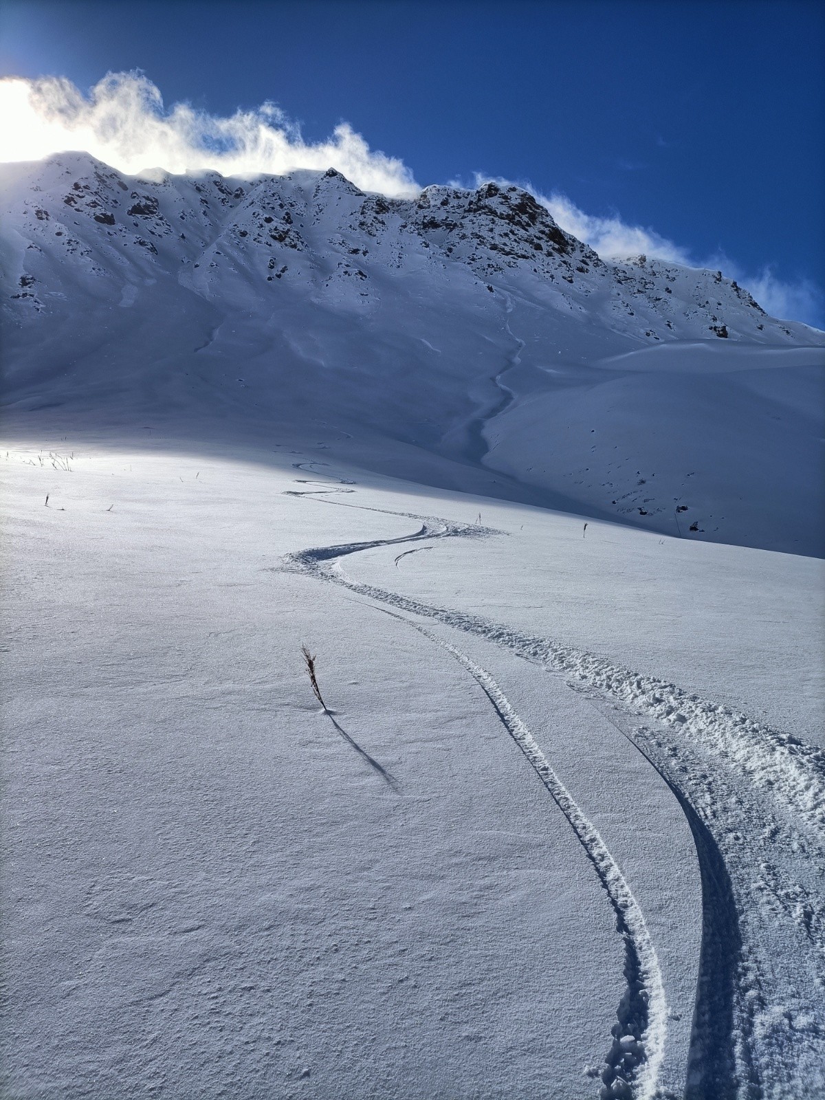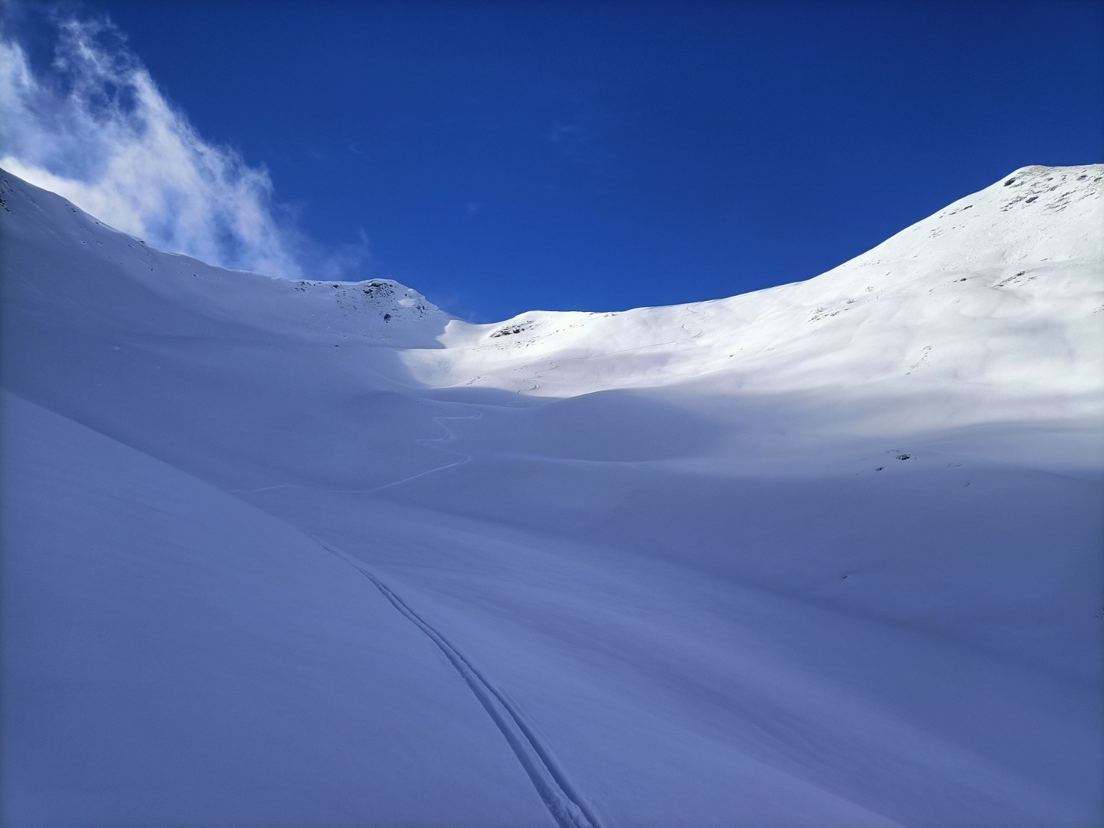 La meilleure neige est en orientation NW. Les crêtes sont soufflées et légèrement gelées