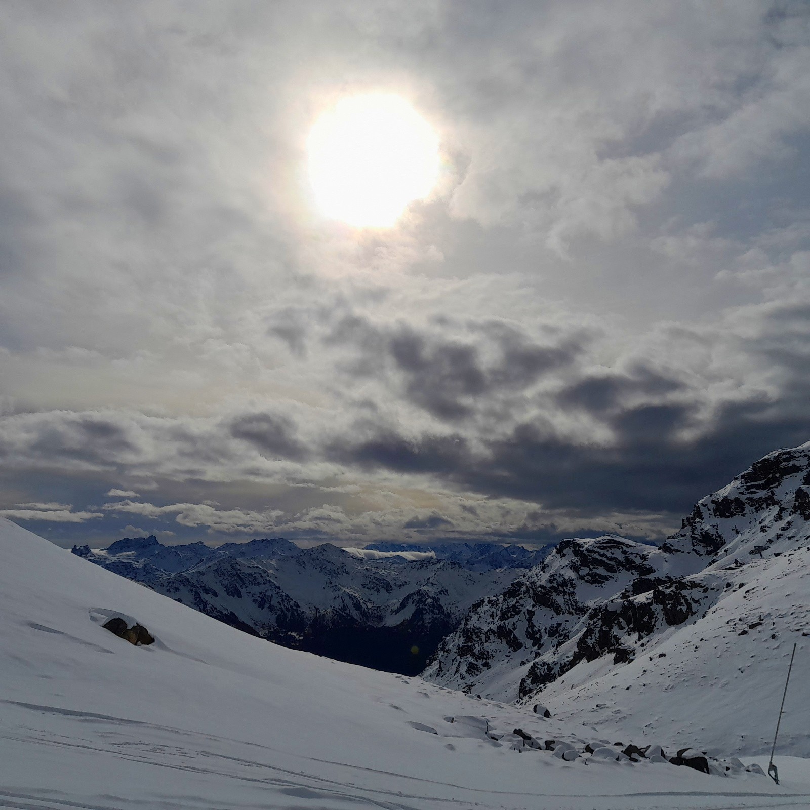 Conditions pour le ski : Bof, le domaine avait été légèrement chenillé vers Plan Bouchet, mais des traces de rando étaient déjà présentes pour monter au Col de Rosael, basculé versant Tarenataise, neige lourde, rechaussé puis botté vers la Cime Caron, deuxième descente avec des conditions dignes d'avril, neige lourde, mais ça descend...