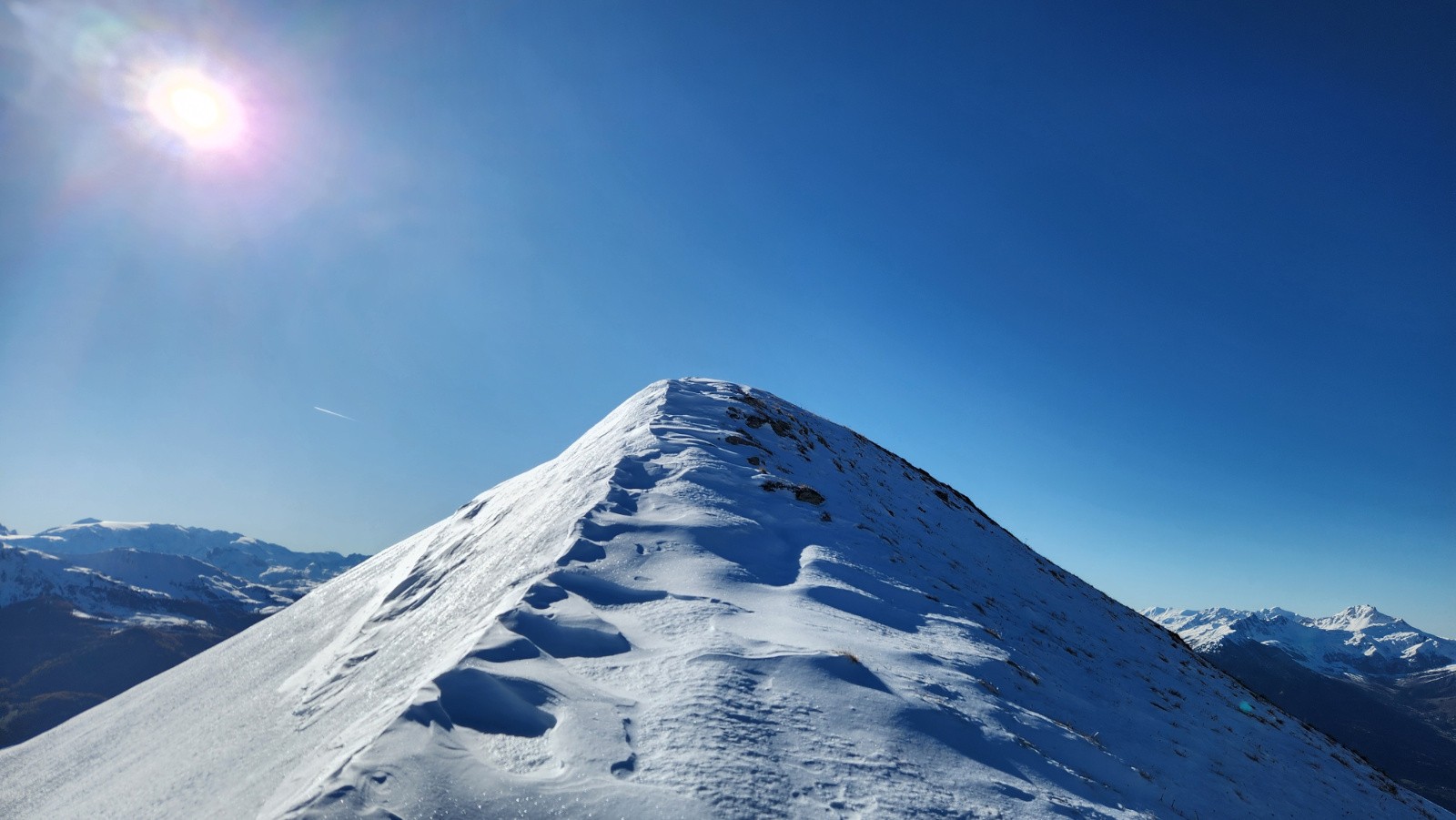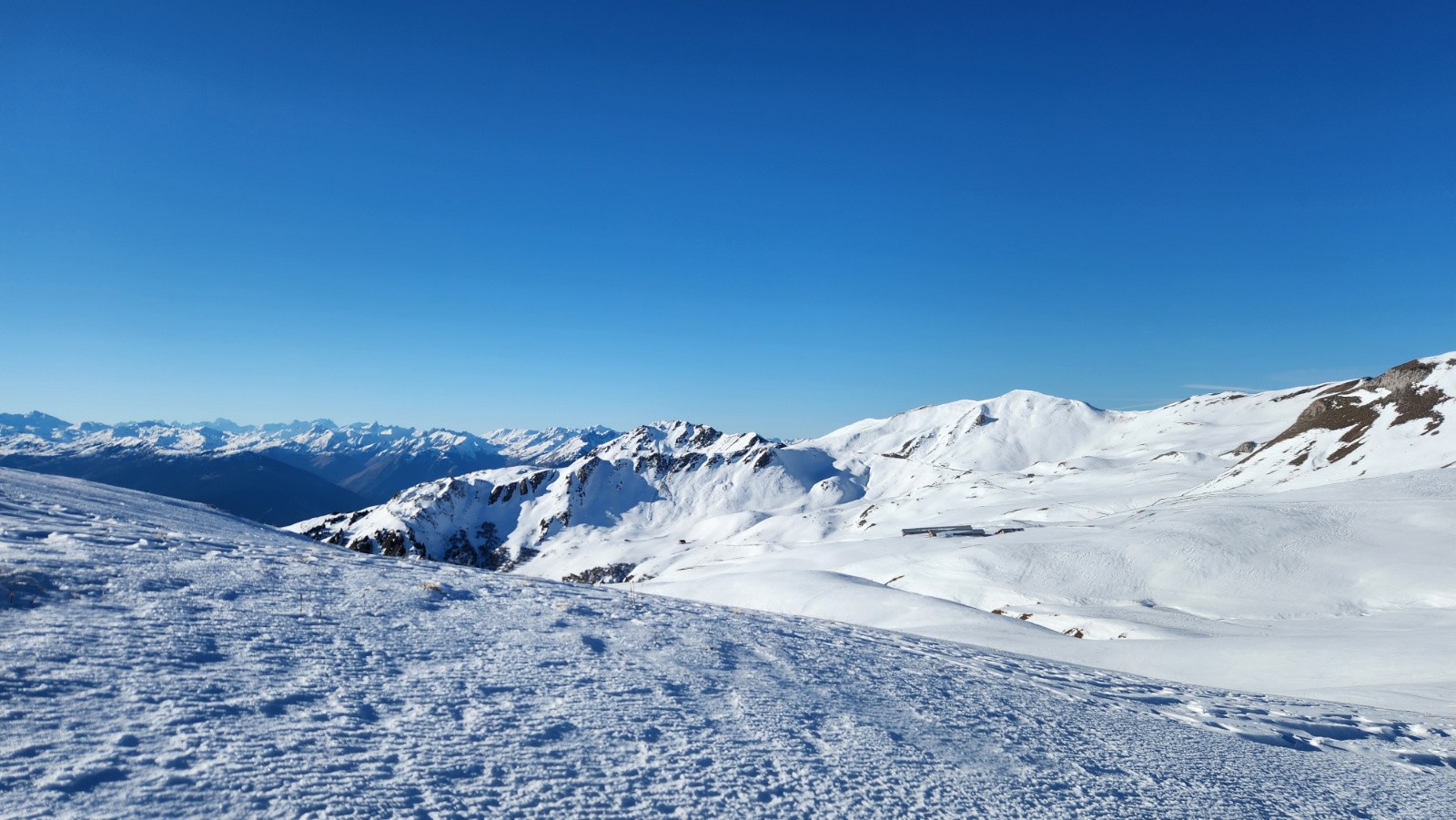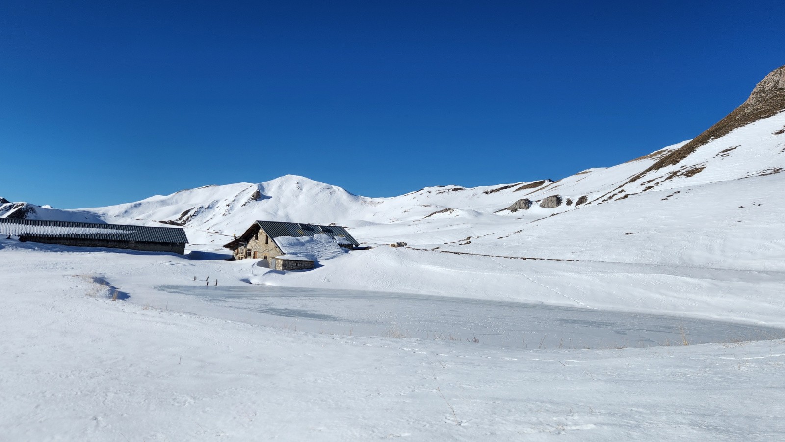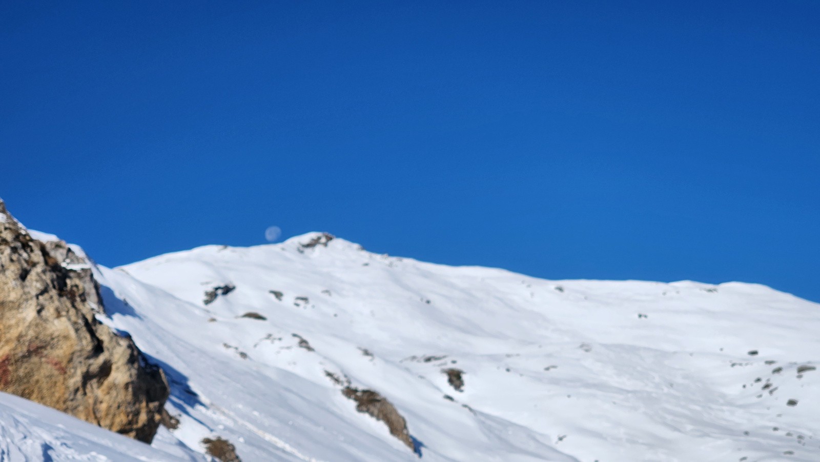 Conditions pour le ski : Neige dure le matin au soleil, puis moquette en plein Sud/SudEst. Dans les vallonnement plus à l'ombre quelques restes de poudre tassée/soufflé et quelques plaques dures quand c'est plus raide.