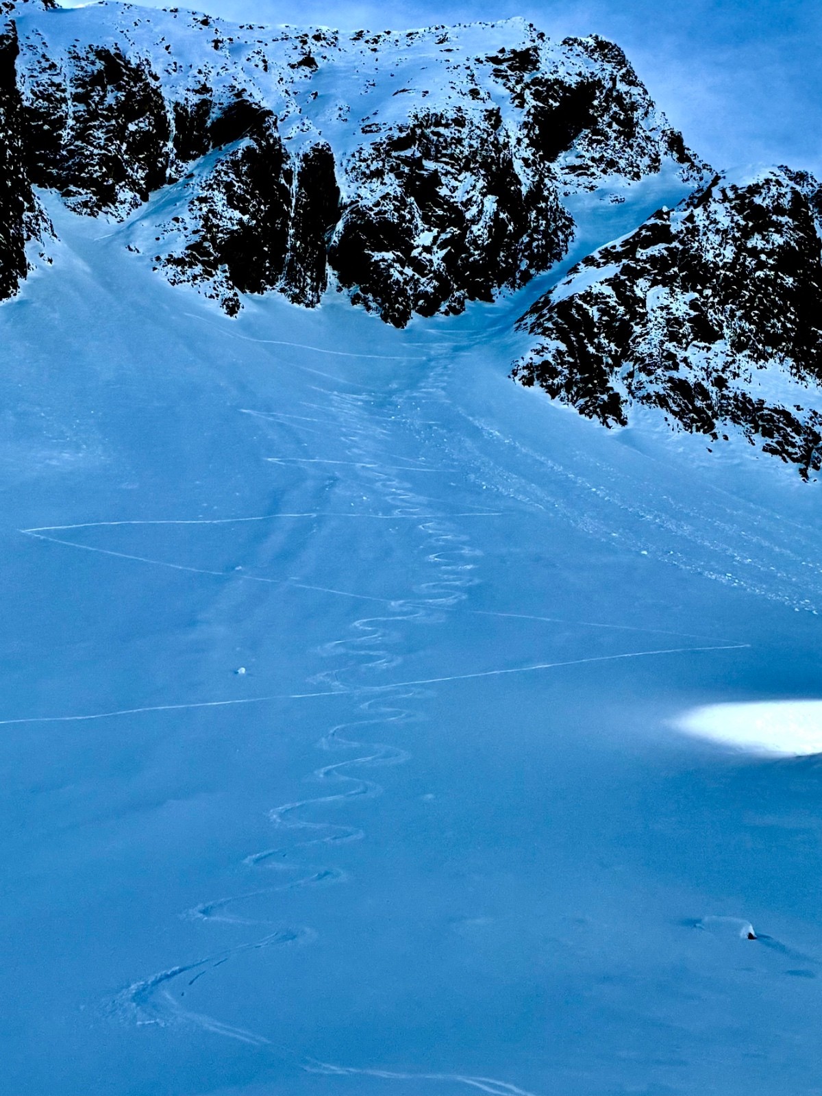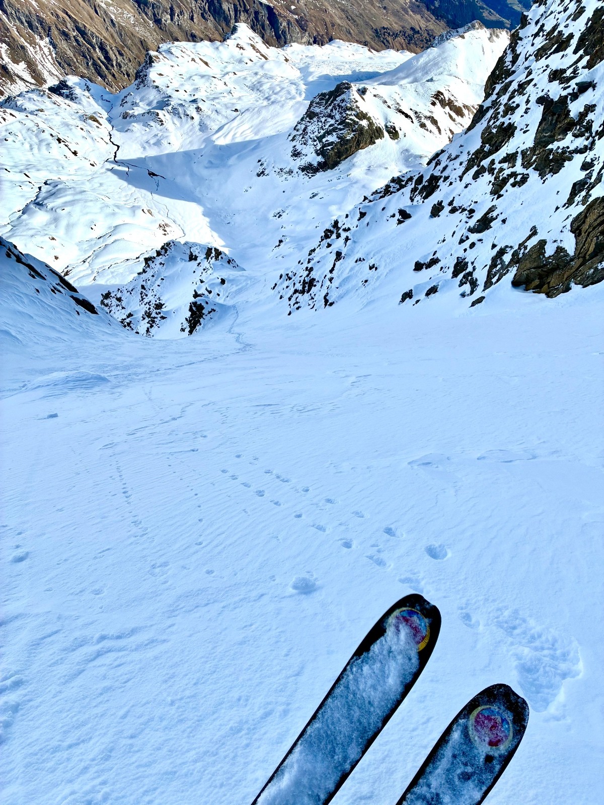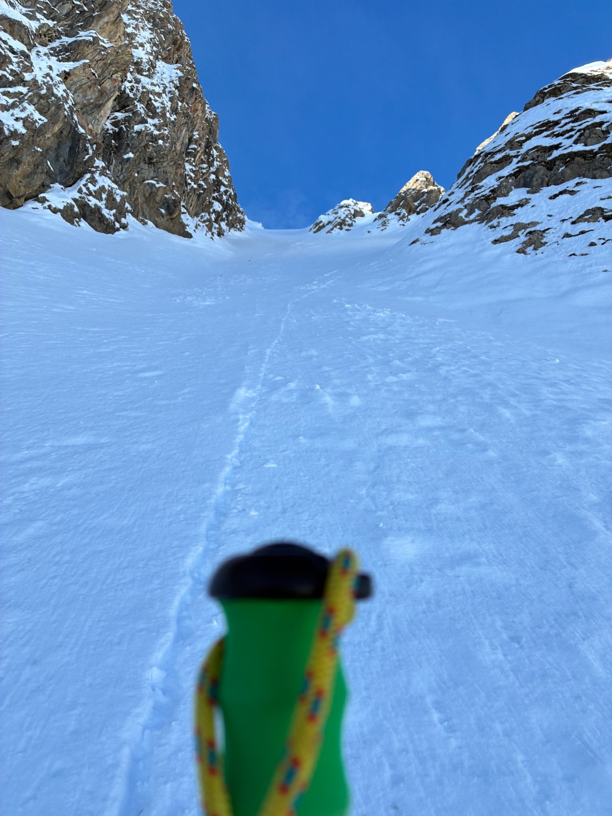 Horaires : un depart avec peu de portage ,une bonne trace de ..scooter des neiges.. jusque au petit chalet 🫣..puis couloir en très bonnes conditions ,petite poudre tout du long sur un fond dure bien skiant 🤟😎le pied 🦶.