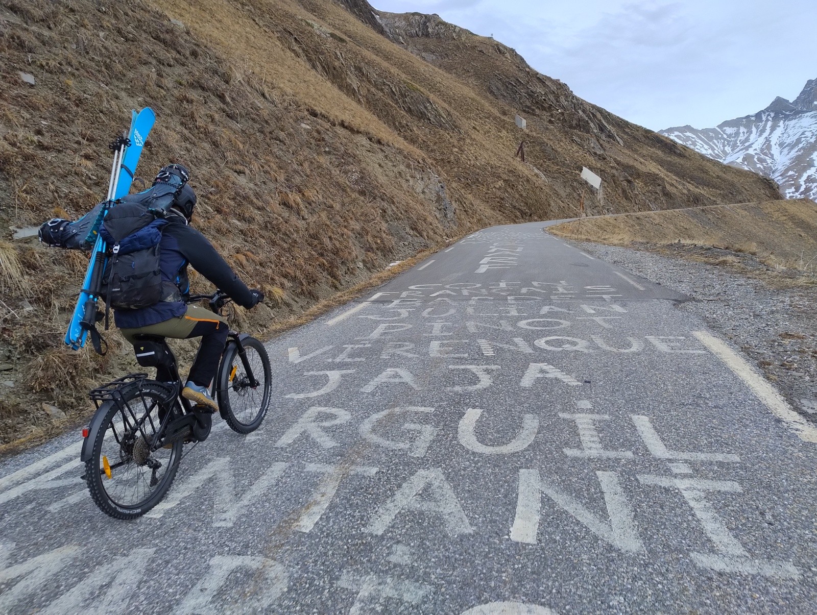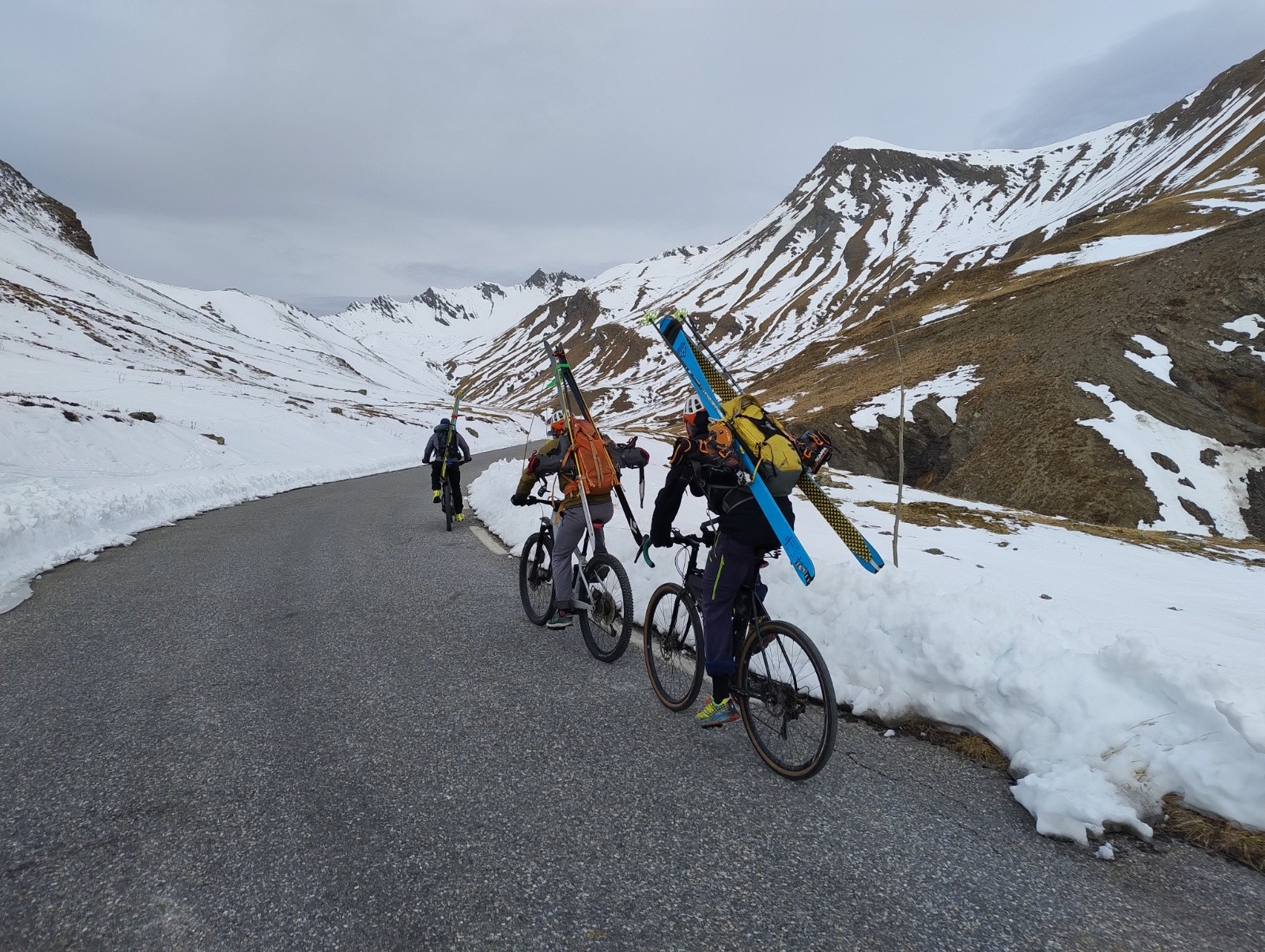 Après avoir déposé nos vélos, nous montons sur une neige croûtée dans les pentes sud-est, mais dès qu'on évolue sur du plat ou sur une contrepente d'une autre orientation, la neige est tout de suite plus légère (vieille poudreuse). Le vent qui se renforce avec l'altitude favorise du transport de neige régulier par saltation, à partir du col et sur les pentes nord du Pic Blanc du Galibier (formation de petites plaques derrière les crêtes et sommets).