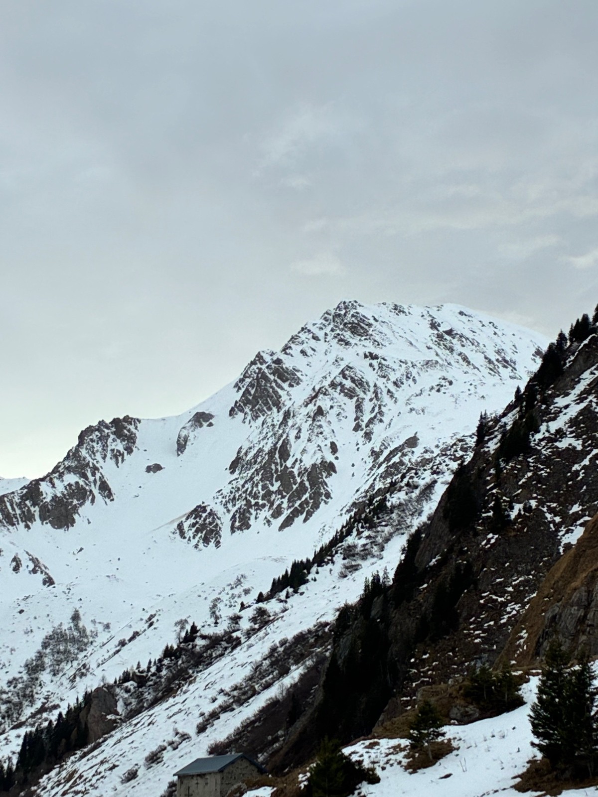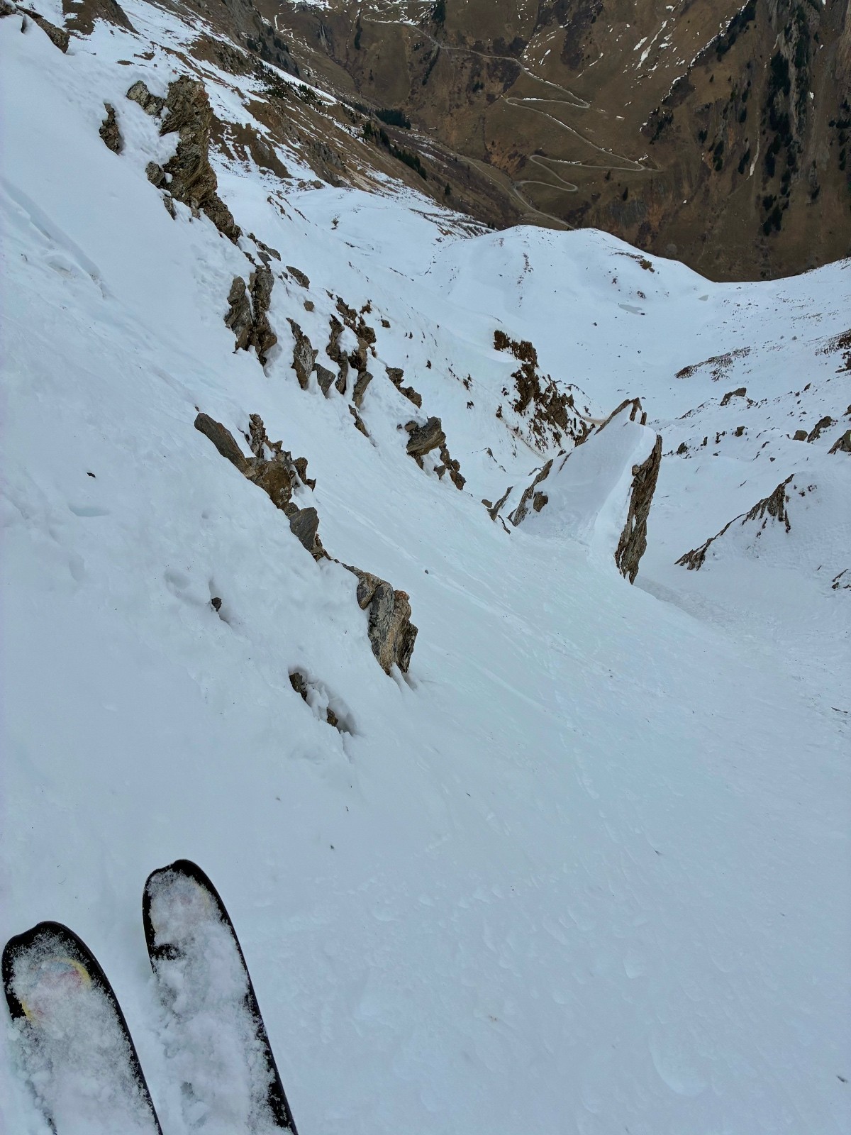 Itinéraire suivi : départ plan pichu ,route sèche .pas de regel ,bottage en règle du départ jusque au sommet ,l enfer ,rien n y a fait ,ni le farte ni le réchauffage .montee sous la face nord et sommet ,neige humide puis soufflée par le fohen .couloir en bonnes conditions pour la période ,neige bien molle ,touchette au départ dans l entonnoirs raide par manque de remplissage ,skis cailloux auraient été mieux 😅un peu de semelle est restée sur les bords .