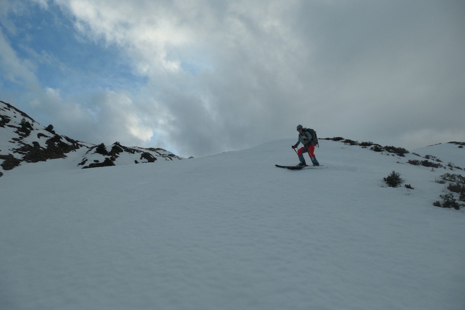 Dernier peautage pour remonter au collu permettant de basculer sur Plan Pichu. Le bas est un peu lourd mais reste skiant.