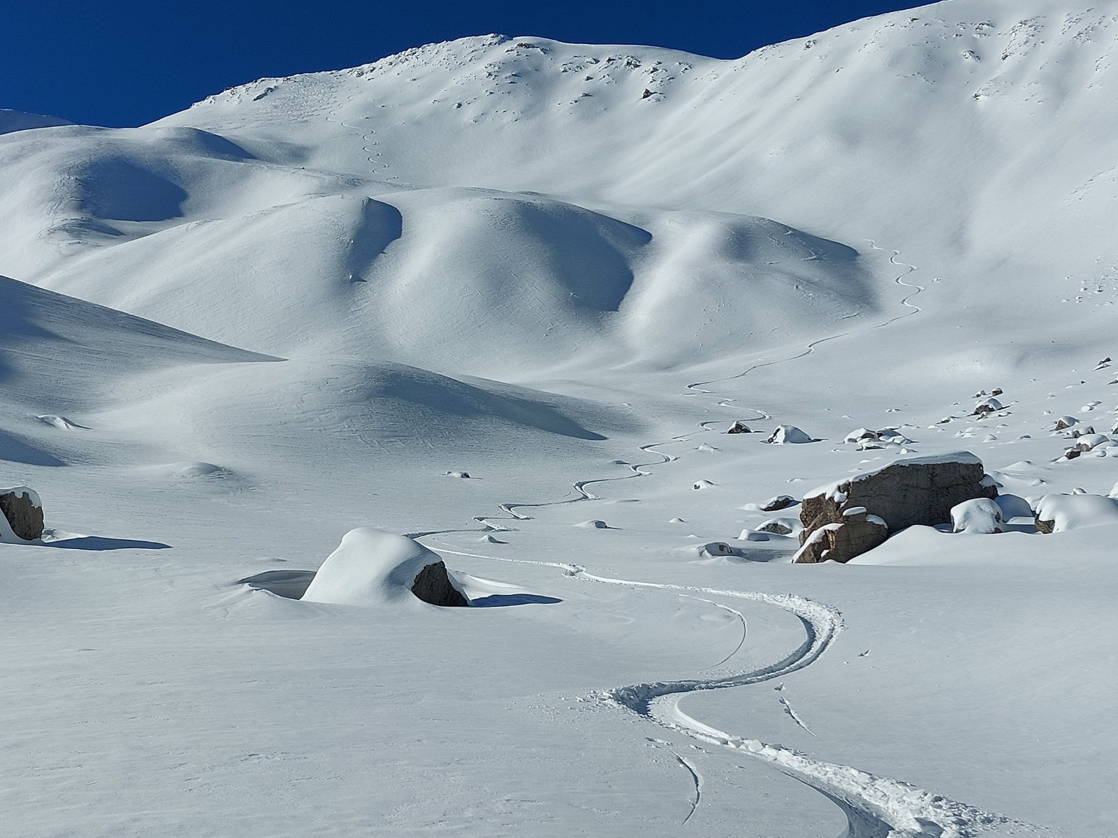 En sortant un peu des sentiers battus ont fait du bon ski surtout au dessus de 2500m et le portage est vraiment minime (ski cailloux conseillés tout de même)